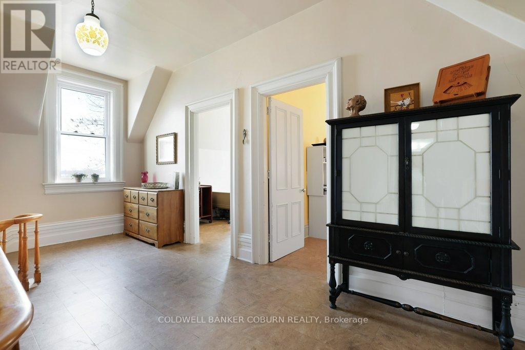 THE CENTENNIAL COTTAGE at 81 Lakeshore Drive, Morrisburg is a rare Victorian-era brick residence completed in 1875 and offered for sale for the first time in 4 decades. Upon entering, your eyes are immediately drawn through elegant sight lines to the majestic St. Lawrence River. The centre hall showcases a magnificent, curved staircase rising to the second floor. Strategically placed windows flood the home with natural light and allow captivating river views. Rich in Victorian character, the home features generously proportioned rooms, impressive baseboards, and soaring ceilings accented with distinctive crown mouldings. The primary room ceiling heights on the main floor measure approximately 10.6 feet and 9.25 feet on the second level. Above each exterior window is a decorous cast iron relief of a young Queen Victoria, adding architectural charm and historical significance. The former maid's quarters on the on the east side have been thoughtfully converted into an attached garage. Two staircases provide access to the basement, which offers excellent ceiling height and large windows overlooking the river. The property extends to the water's edge and is not subject to an OPG licence. Ideally located within walking or cycling distance to shopping, banks, restaurants, parks, swimming beach, boat launch & dock, medical & detail clinics, golf, curling, arena, library and the renowned Upper Canada Playhouse, this home combines heritage elegance with everyday convenience. A virtual tour, additional interior photographs, aerial drone imagery, and detailed floor plans are available. Upgrades include 37 windows replaced between 2016-2019, garage door replace in 2018, two man doors replaced in 2018-2019, retaining wall and shoreline restoration completed in 2019, new gas furnace installed in 2021, roof shingles & eavestroughs replaced in 2022, and sewer lateral replaced. Average monthly utility costs are approximately $254 for gas, $74 for hydro, and $97 for water and sewer. (id:64974)