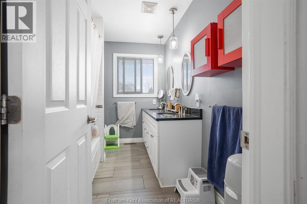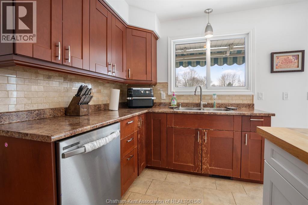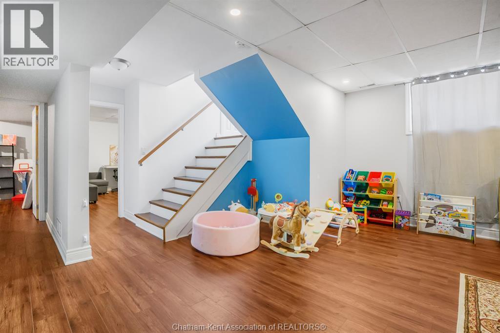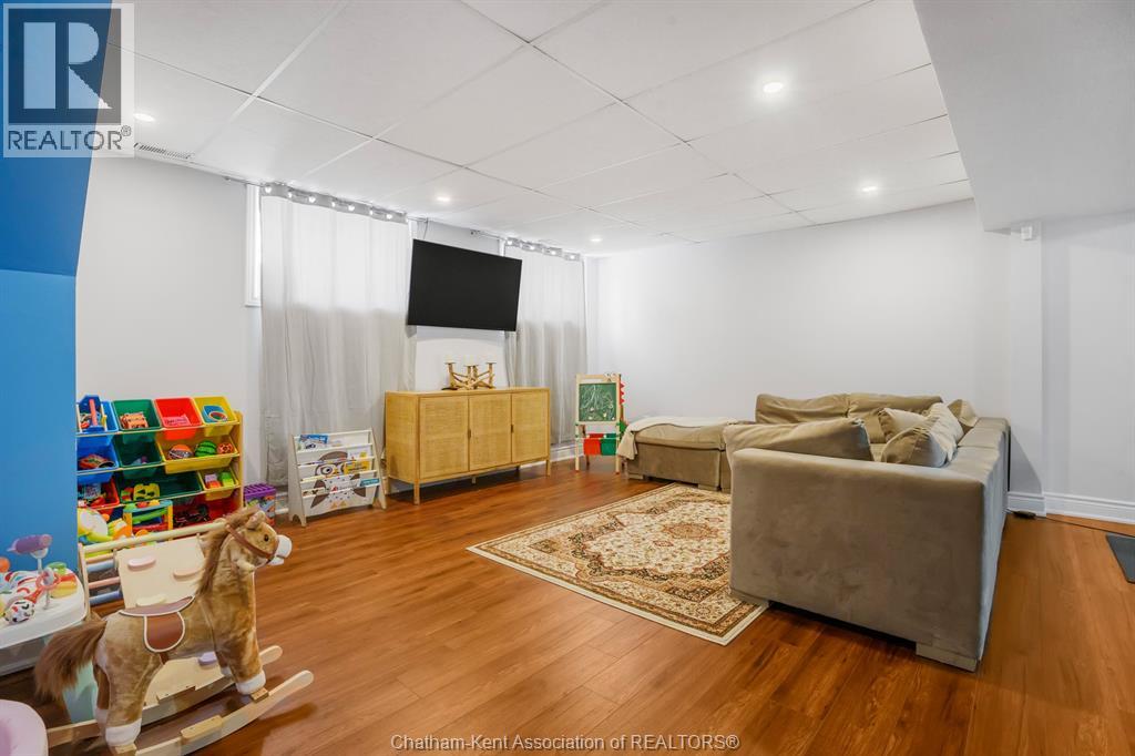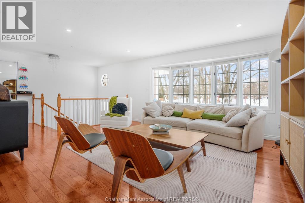 This beautiful home shows better than the photos! 4 bedroom, 2 bathroom fabulously appointed raised ranch home on Chatham's desired Northside close to all amenities! The private backyard boasts a heated 24 ft above ground pool with newer heater and chlorinator (2025), plus amble green space for your kids and pets to play! The upper level of the home features a large living area, dining room, kitchen, 2 bedrooms and a 4 pc bathroom with heated flooring! The lower level offers a spacious living space, separate 3 pcs bathroom, laundry room and 2 more large bedrooms. Plus, you’ll love the convenience of being right across the road from Ellis Park, offering green space and recreational opportunities just steps away. Two large backyard sheds. New owned hot water on demand unit! This home is just waiting for you to unpack!! Pls no showings before 2pm (id:64974)