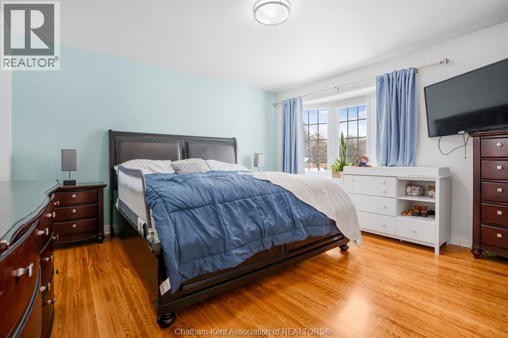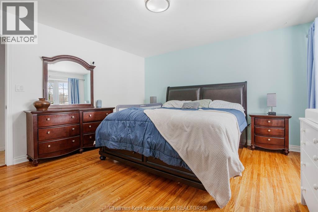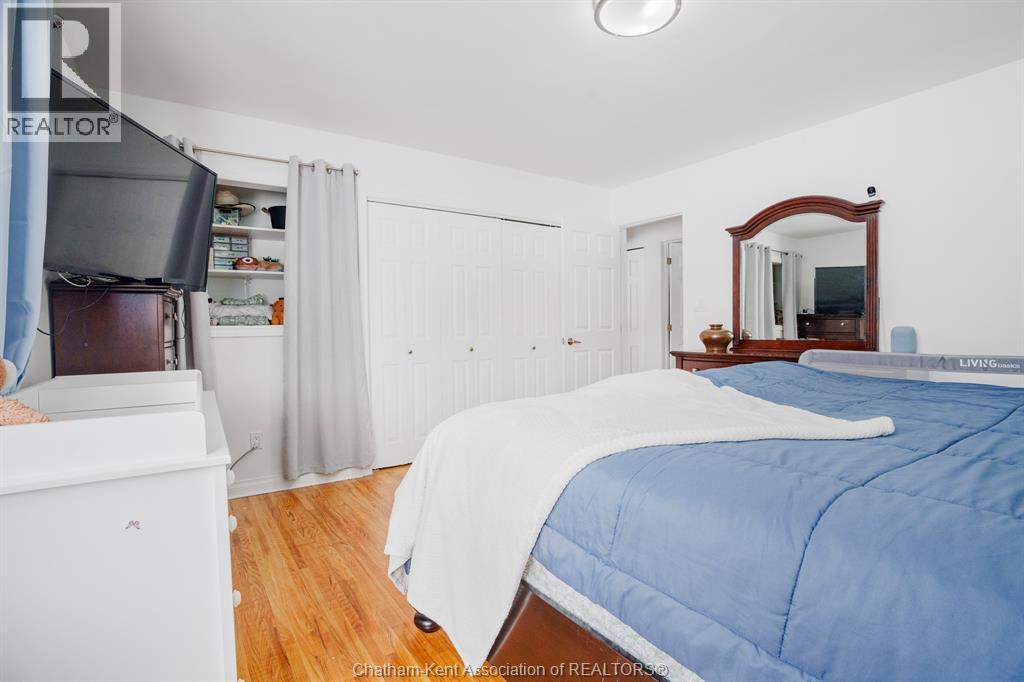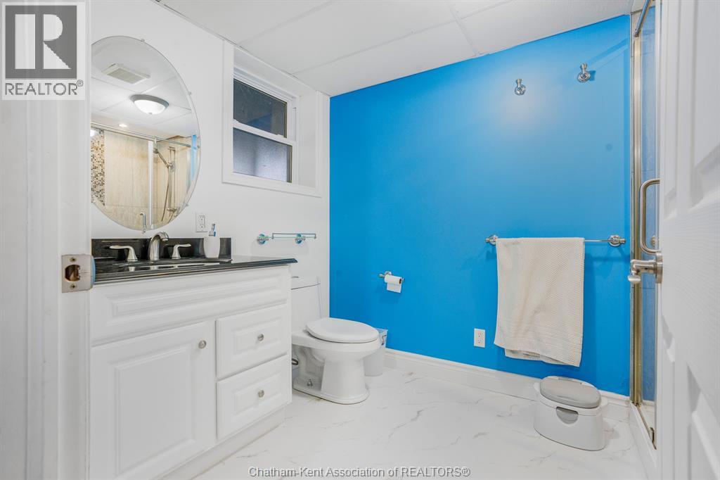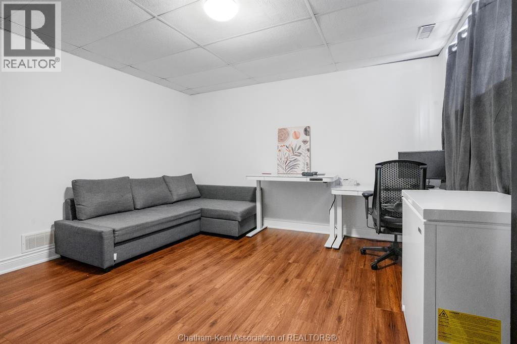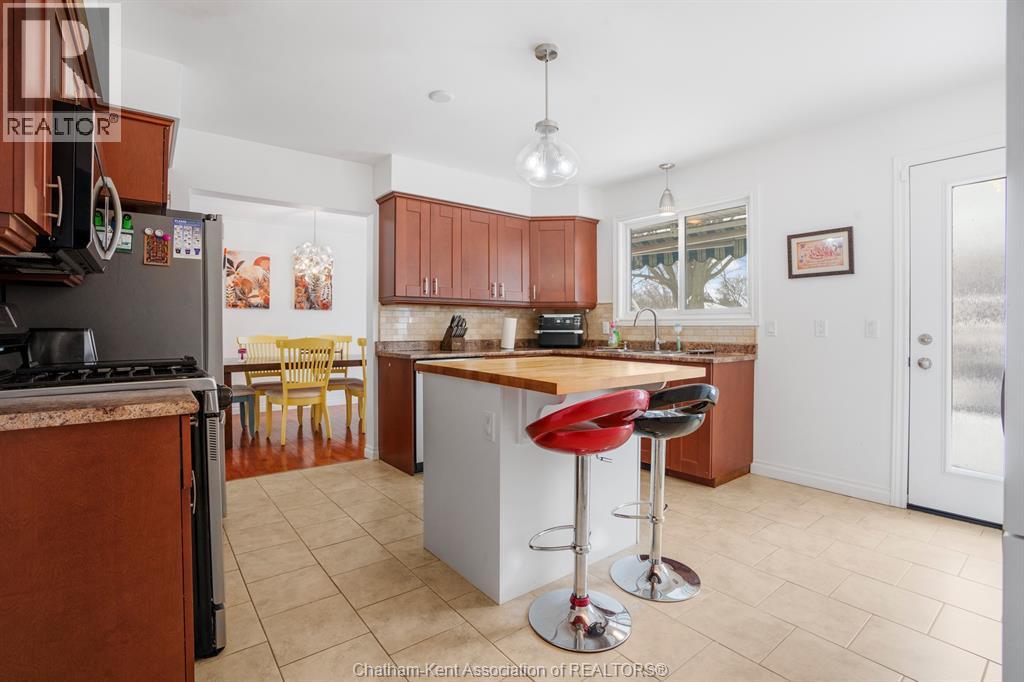 This beautiful home shows better than the photos! 4 bedroom, 2 bathroom fabulously appointed raised ranch home on Chatham's desired Northside close to all amenities! The private backyard boasts a heated 24 ft above ground pool with newer heater and chlorinator (2025), plus amble green space for your kids and pets to play! The upper level of the home features a large living area, dining room, kitchen, 2 bedrooms and a 4 pc bathroom with heated flooring! The lower level offers a spacious living space, separate 3 pcs bathroom, laundry room and 2 more large bedrooms. Plus, you’ll love the convenience of being right across the road from Ellis Park, offering green space and recreational opportunities just steps away. Two large backyard sheds. New owned hot water on demand unit! This home is just waiting for you to unpack!! Pls no showings before 2pm (id:64974)
