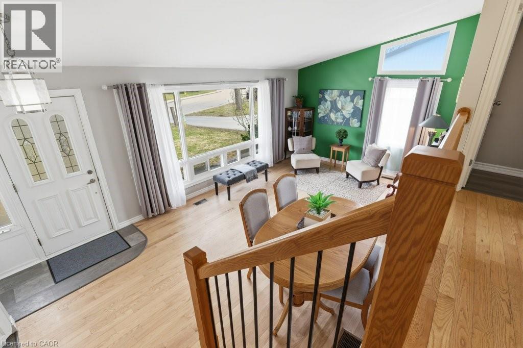 This is the one! This stunning mid-century brick backsplit is the turnkey home you have been waiting for! From the moment you step inside, you'll be captivated by the soaring vaulted ceilings and sun-drenched open-concept layout, perfect for modern living and spending time together. The main floor is the heart of the home, with a beautiful living room, a large updated kitchen and a dinette. The gorgeous hardwood floors and stylish accents give this space a fresh and contemporary feel. Upstairs, you’ll discover 3 bright bedrooms, and an updated 4pc bath. Downstairs, you’ll love the cozy family room with gas fireplace, another 4pc bath, laundry room, and plenty of storage. Outside, the deep, fully fenced pie-shaped yard offers a safe haven for kids and pets to play, while the large driveway and shed provide all the practical space you need. Many recent updates in the past five years including the roof, furnace, A/C, flooring, and more! In today's market, move-in-ready gems like this disappear in a heartbeat. Whether you're starting your journey or looking for that perfect upgrade, the time to act is now. This house isn't just a listing; it's your next chapter. Schedule your showing today before someone else calls this Woodstock beauty home! (id:64974)