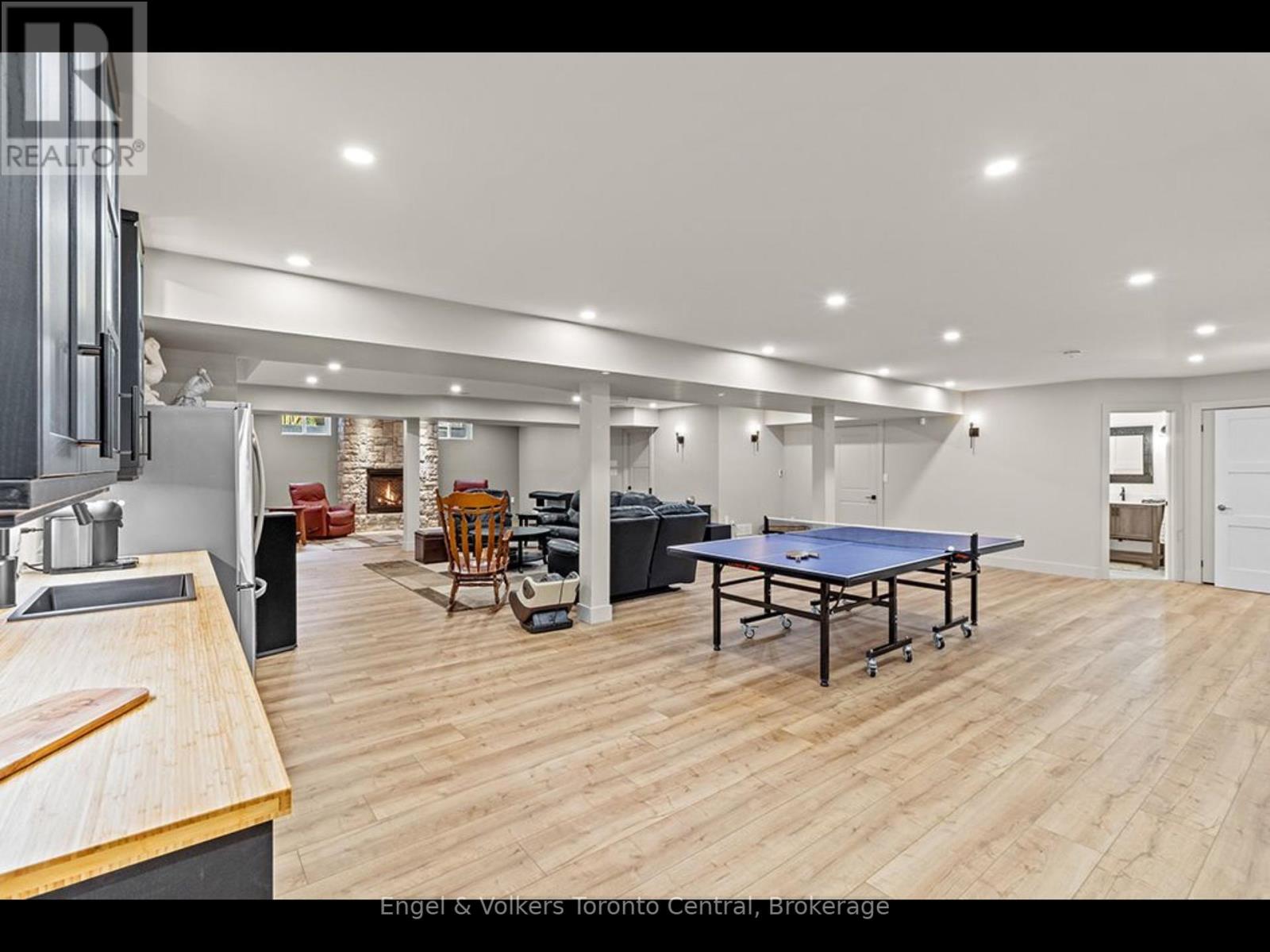 Custom-Built Retreat in Woodland Beach, Tiny Township. Welcome to your dream home in the heart of Woodland Beach! Nestled on a beautifully treed one-acre lot, this thoughtfully designed 4-bedroom bungalow (with potential for a 5th bedroom or home office) was custom built in 2018 and offers the perfect blend of comfort, style, and functionality. Step inside to rich hardwood floors, two cozy gas fireplaces, and a bright, cheerful kitchen ideal for family meals and entertaining. The triple-car garage and newly paved driveway include a concrete pad designed for your motorcoach, camper, or RV, a rare bonus for adventurous spirits. The expansive back deck sets the stage for summertime BBQs and relaxing under the stars, while the finished lower level with in-floor heat offers space for every kind of gathering whether its a game of billiards or ping pong, a wine tasting from the cantina, or movie nights in front of the cinema-style projection screen and fireplace. Best of all, you're just a short stroll to the beach via a township-maintained waterfront access. Whether its a permanent home or weekend escape, this property delivers a lifestyle of comfort, privacy, and recreation, all just steps from the shores of Georgian Bay. (id:64974)