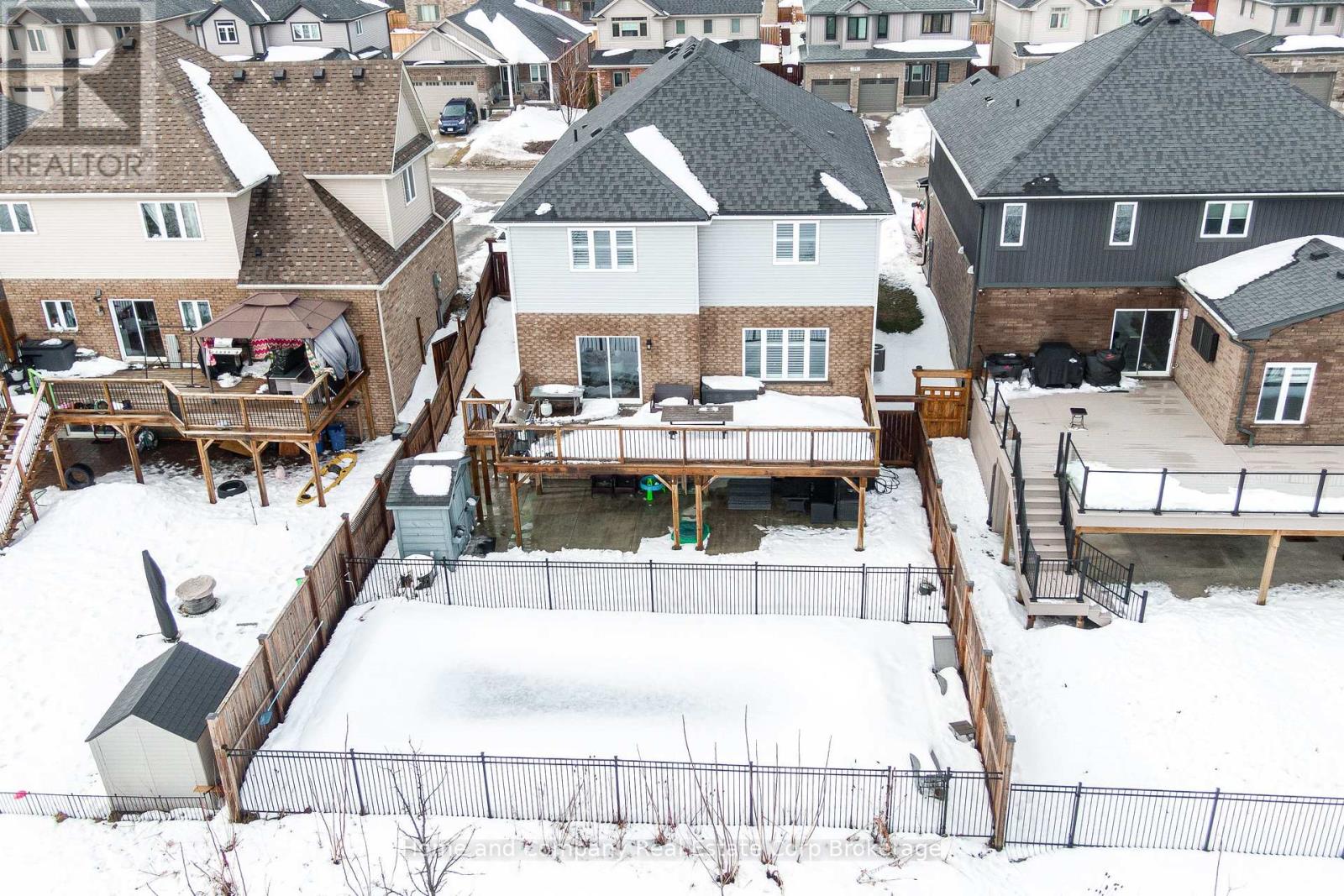 Welcome to this exceptional and spacious two-story home in one of Stratford's most desirable family communities! From the moment you step into the grand foyer, you're greeted by natural light and an impressive open-concept design filled with upgrades, flow, and functionality. The stunning kitchen features an oversized island, quartz countertops, reverse osmosis drinking water system, and abundant cabinetry. The adjoining dining area overlooks the backyard with incredible open views and provides direct access to the two-level deck. The expansive living room showcases high ceilings and a statement fireplace built into a custom wall of cabinetry and shelving, creating the perfect space for both entertaining and everyday family life. A main floor laundry room and powder room add convenience. Upstairs offers four generously sized bedrooms with ample closet space, including a serene primary retreat with two walk-in closets and a spa-inspired ensuite. The fully finished walk-out basement adds significant additional living space, including a large recreation area, a flexible space ideal for a home office or gym, and an oversized storage room with potential to convert into a fifth bedroom if desired. Step outside to enjoy the private backyard featuring an updated 16 x 32 heated saltwater pool (complete with an Aqua Logic control system), patio area, and privacy ideal for relaxing or hosting family and friends. Complete with a two-car garage, this home delivers the perfect blend of space, layout, and opportunity for you to call this move in ready home yours! (id:64974)