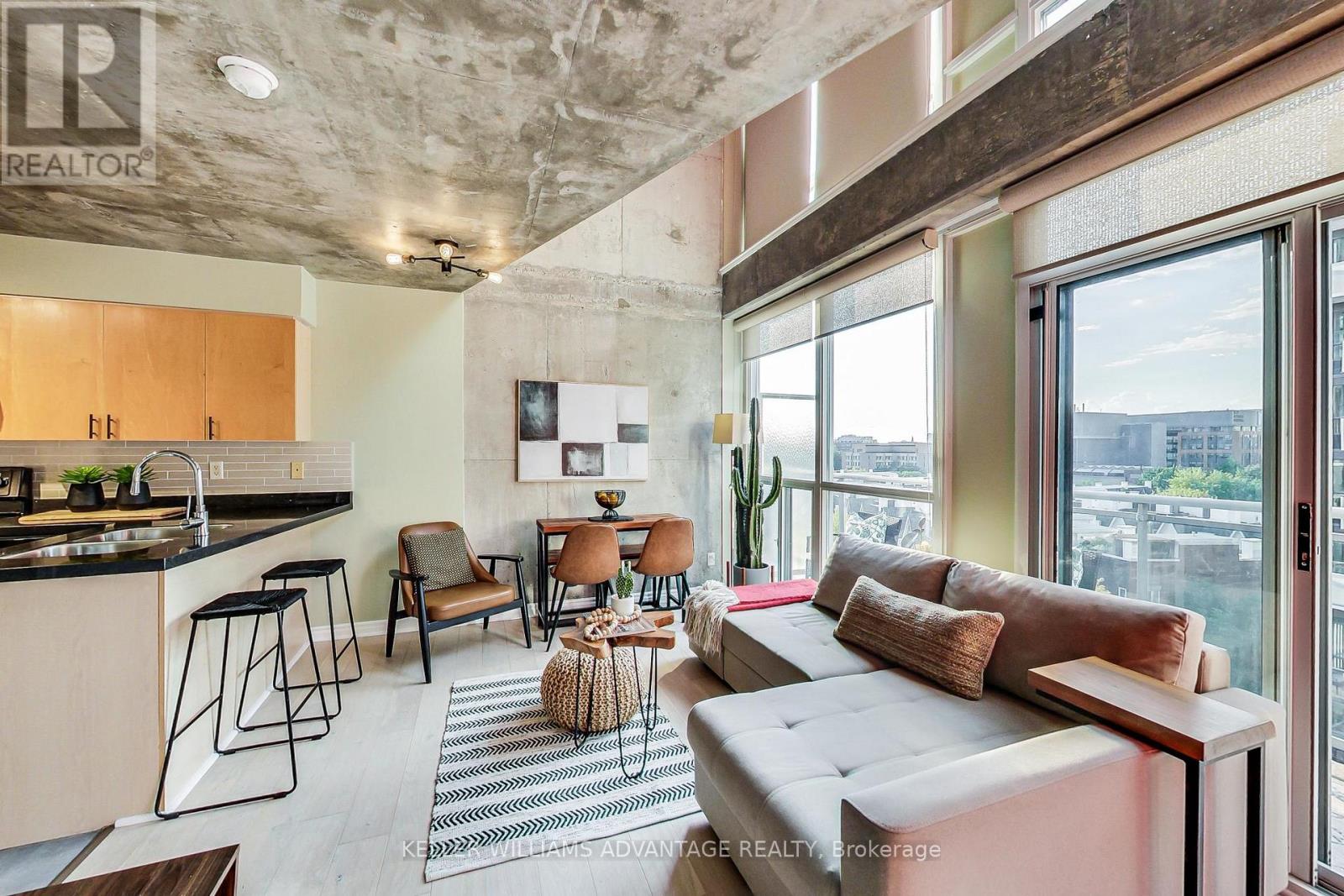 Welcome to The Electra Lofts! This 750 sq ft (includes balcony), open concept 2-storey loft with 1 bedroom and open den that overlooks living and dining area with walkout balcony. Floor to ceiling windows with modern kitchen and granite bar. Walk-in pantry, 2 bathrooms, ensuite laundry, exclusive locker and parking. Great location and great neighbourhood. Steps to the financial district, TTC and easy access to highways. Includes parking and locker and all utitilties. Tenants pay for cable, internet and phone. (id:64974)