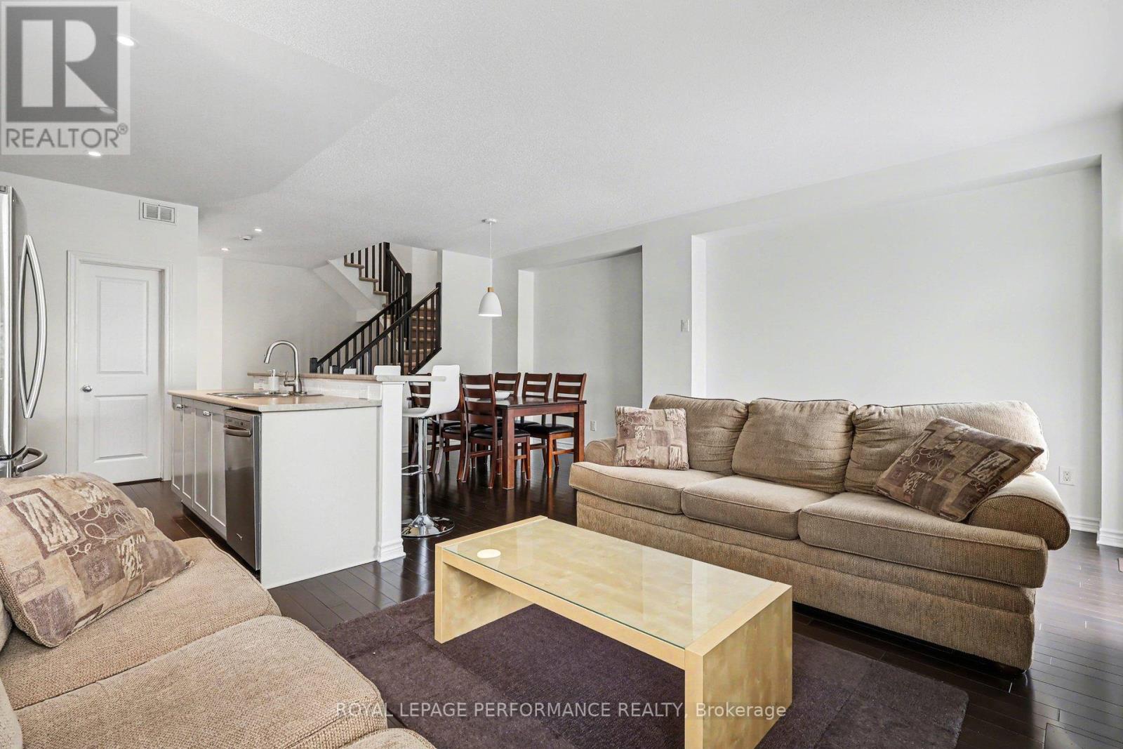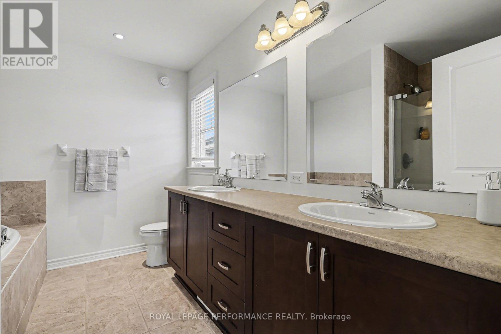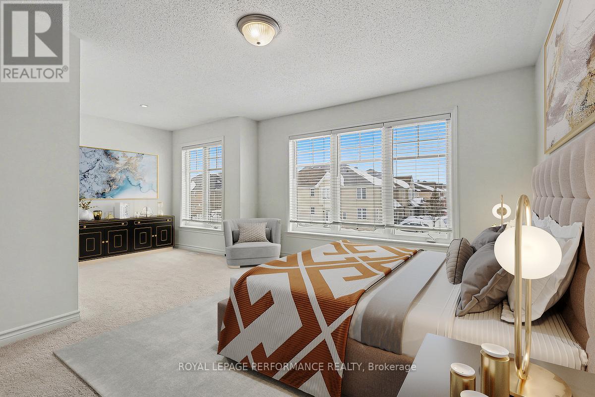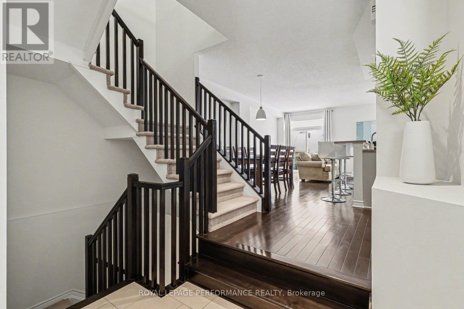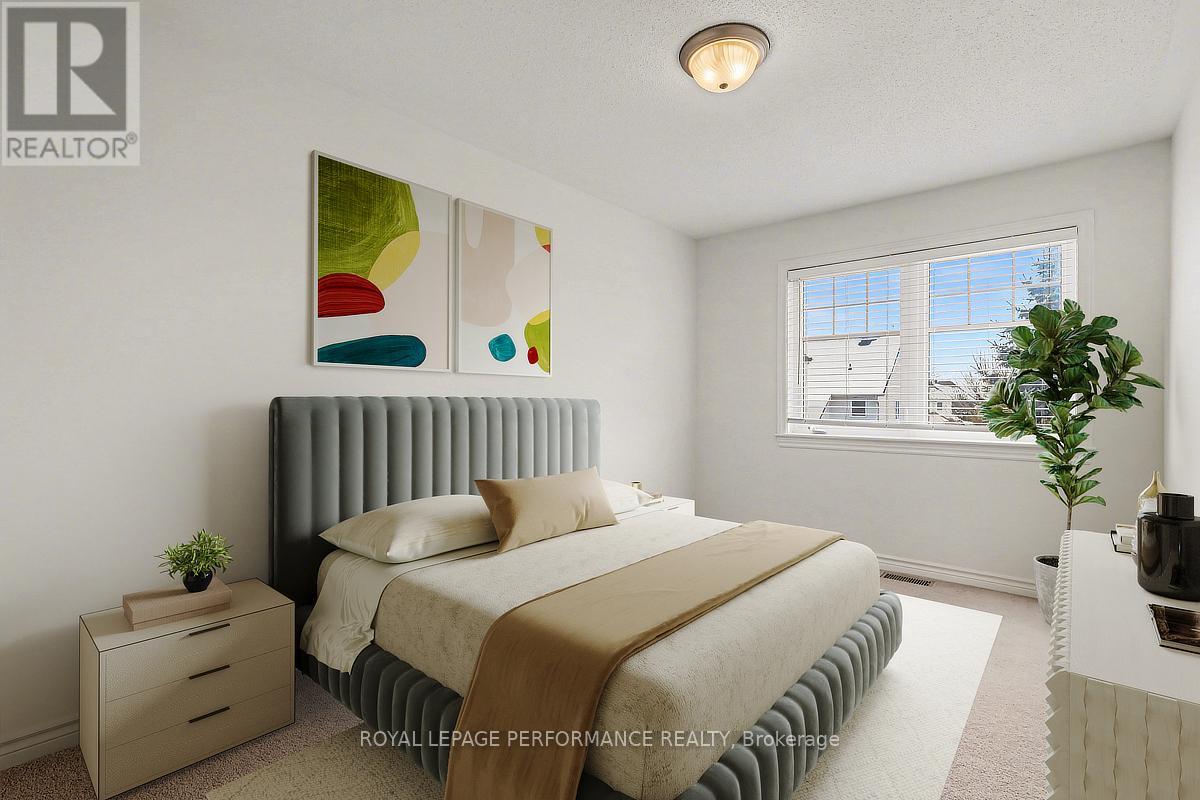 Welcome to this Impressive END UNIT Tamarack Huntington, offering 2,165 sq ft of refined living space and a stunning blend of comfort, style, and thoughtful upgrades. Meticulously maintained, this home sits on a beautifully enhanced lot with a PRIVATE DRIVEWAY, an extended front walkway and new asphalt driveway, setting a sophisticated first impression. Step into a bright, open-concept main level featuring 9-ft ceilings, ceramic and rich maple HARDWOOD flooring and expansive south-facing windows that flood the space with natural light. The inviting living room is anchored by a natural gas fireplace, with patio doors leading to a custom 2-tier DECK and fully fenced backyard, backing onto single-family homes for added privacy. The heart of the home is the gorgeous updated kitchen, showcasing Muskoka custom-crafted cabinetry, new modern hardware, a stylish backsplash, brand-new faucet, premium appliances and a spacious walk-in pantry, ideal for organization and style. Updated lighting throughout, including premium pot lights and pendant fixtures, ensures every space feels warm, modern, and elevated. Upstairs, the oversized primary suite is a true sanctuary with large windows, an expansive walk-in closet, and a luxurious 5-piece ensuite featuring double sinks, a glass-enclosed shower and a relaxing Roman soaker tub. The second level also includes a versatile LOFT/DEN or home office! (could be converted into a 4th bedroom) Two generously sized additional bedrooms, a bright main bathroom, and the convenience of SECOND FLOOR LAUNDRY!. A calm, cohesive earth-tone palette flows beautifully throughout. Toward the lower level, the finished basement offers a spacious family room ideal for movie nights, a play space, or a home gym, along with ample storage for seasonal items and household needs. Energy-efficient, beautifully kept, and perfectly located within walking distance to parks and close proximity to amenities! Must see! (id:64974)