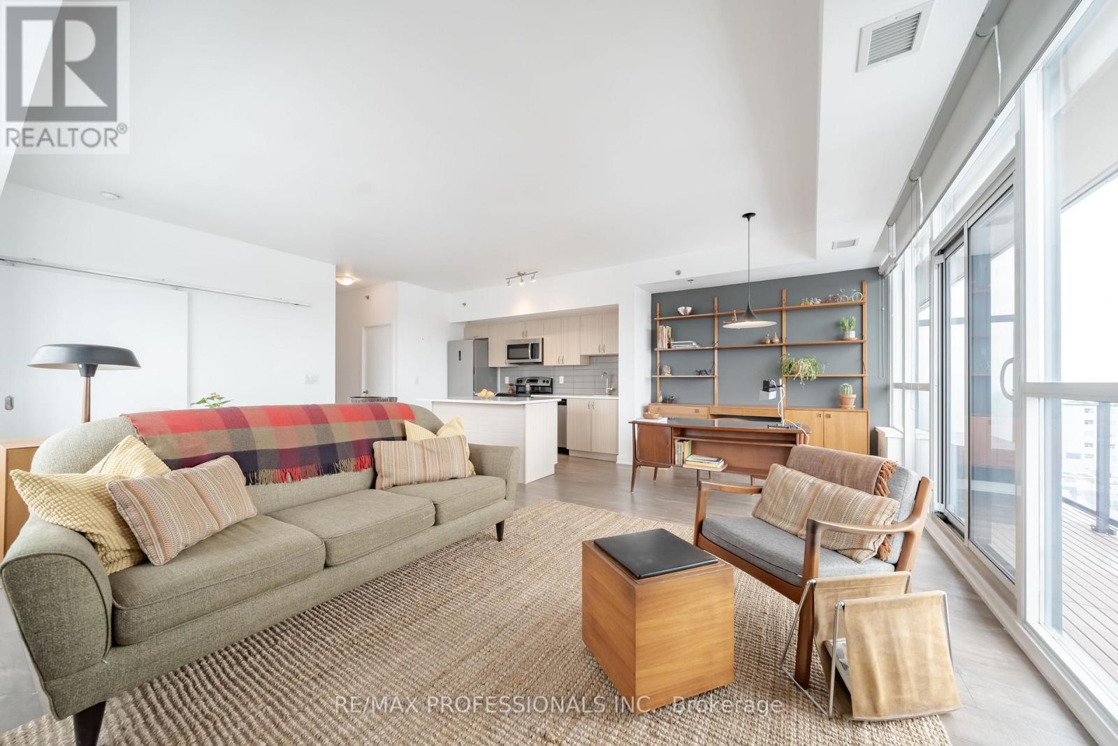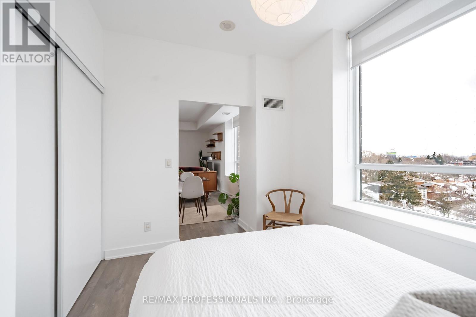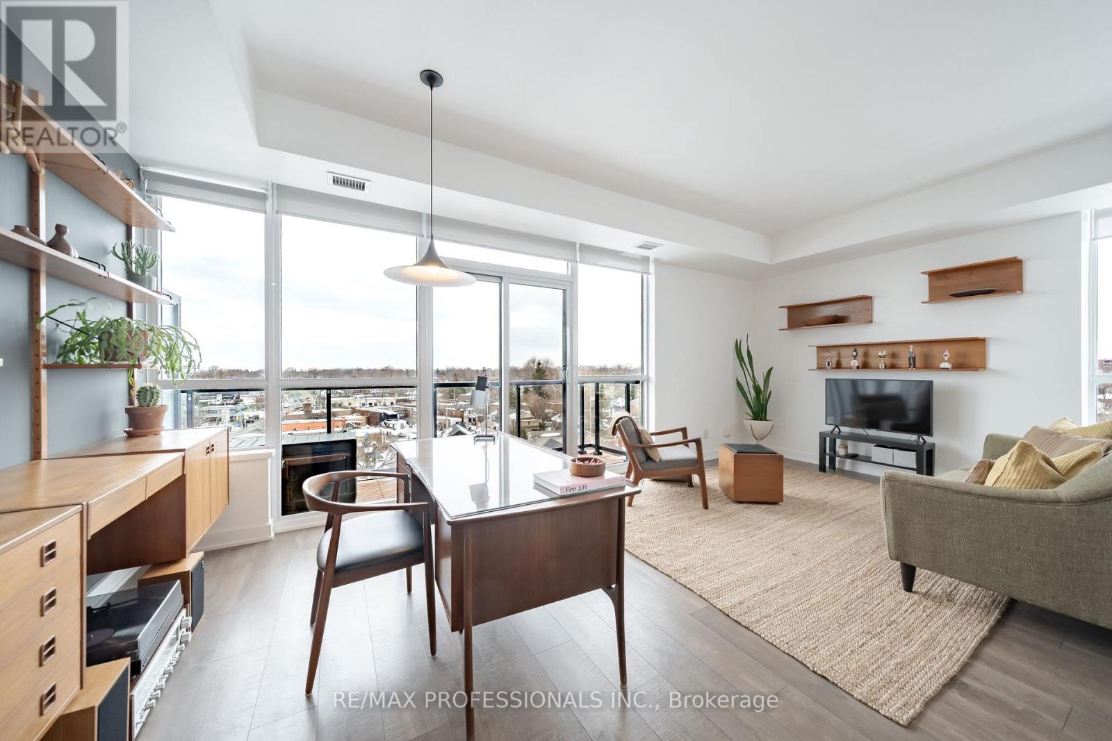 Stunning and unique! Large, airy and bright! This 1 bedroom, corner unit is 744 square feet (+balcony!) and features a completely open concept living space with stunning views. Working from home never felt this comfortable. An artist's haven! This unit is really nothing like the rest (*one of only 2 units in the building*). Upgrades throughout including luxury laminate flooring, large kitchen with quartz counters and oversize island, large windows with custom blinds, large balcony and includes owned parking and locker. This unit is west and north facing - with private exposure. Enjoy stunning sunsets and amazing views of the lake, the Lake Shore and the neighbourhood. Nestled right on the Lake Shore, but conveniently away from the chaos, discover the charm and character of Old Mimico. Built in 2015, the desirable quiet, low-rise boutique style building is a pleasure to call home. Building great amenities include rooftop terrace, gym, party room, concierge and visitor parking. Steps from the lake, Superior Park, transit, shops, restaurants, bars-every amenity imaginable with convenient grocery across the street. TTC at your door step and a short walk to Mimico GO Station. Easy Access to the Gardiner Expressway/ QEW. Explore miles of waterfront walking and cycling trails and much more! (id:64974)