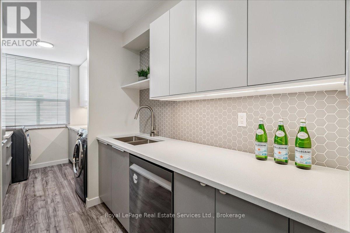 Stunning 3 bedroom, 2 bathroom corner unit exceptionally upgraded throughout in the desirable Clarkson Village steps from shops, restaurants and the GO train. Open concept floor plan features a spacious living and dining room combination, walk-out to a large and private balcony where you can enjoy your morning coffee. Kitchen with designer cabinetry, quartz countertops, backsplash and laundry room adjacent to the kitchen offers abundant storage/cabinetry. As you walk down the hallway towards the bedrooms, you will find a large walk-in closet for all your storage needs. Primary Bedroom with a walk-in closet and 3-piece ensuite, laminate flooring, upgraded lighting, wainscoting, freshly painted in neutral tones. Excellent amenities include a gym, bike storage, games room, library, tennis court, outdoor pool, playground, parcel room, on-site management and more. Move in and enjoy this impressive home. (id:64974)