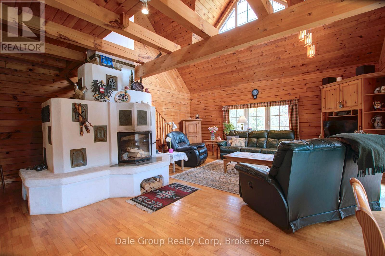 Escape to tranquility without sacrificing convenience in this beautifully crafted 3-4 bedroom, 3 bath log home nestled on 3.36 acres of serene, mature treed property. Perfectly situated just minutes from Goderich Ontario, this property offers the best of both worlds: peaceful privacy and easy access to local amenities. Built in 1996, this warm and inviting home features a spacious open-concept layout with rustic character throughout. Enjoy year-round comfort with efficient in-floor radiant gas heat, ductless heating/cooling units upstairs, and the cozy ambiance of a wood-burning European Kachelofen. The partially finished basement adds versatile living space perfect for a family room, home office, or gym area. Enjoy morning coffee or evening sunsets on the deck overlooking your very own pond with water feature and wildlife, a picturesque centerpiece to the lush landscape. A double car garage provides room for vehicles, and an outdoor shed / workshop with ample space for tools, outdoor gear, or use for a home based business. Whether you are looking for a year-round residence or a secluded retreat, this unique log home offers character, comfort, and privacy in a prime location. This is a rare opportunity. Don't miss out on this first time offered property. (id:64974)