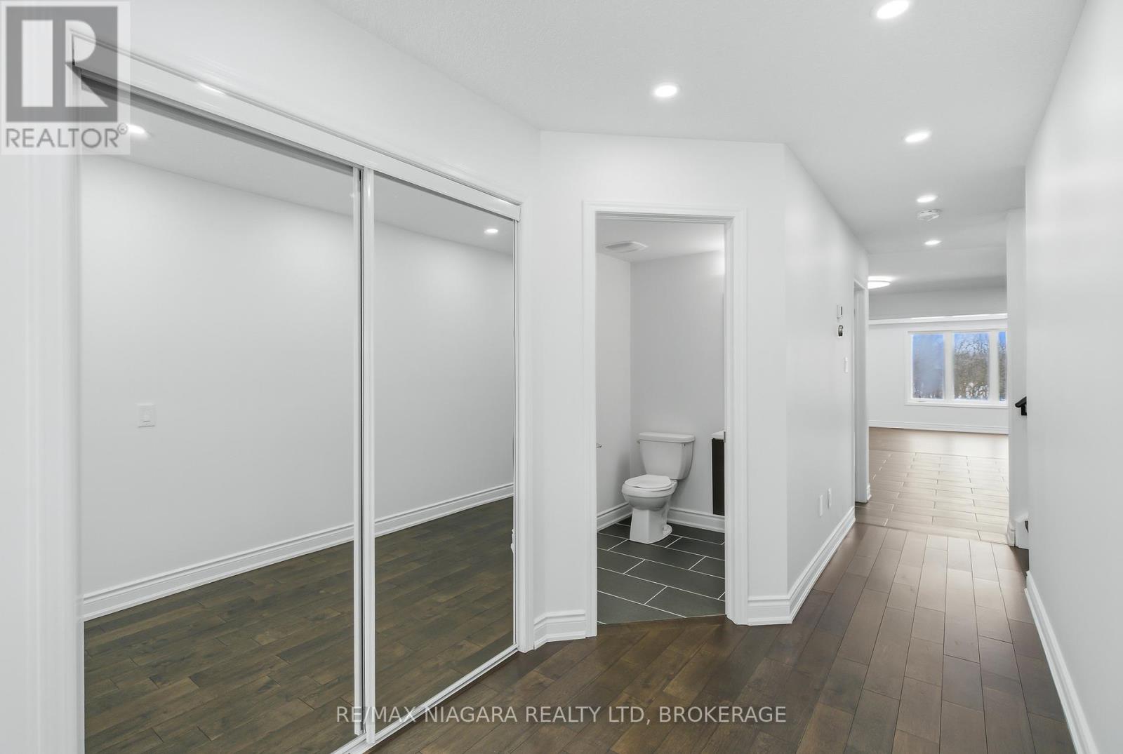 Exceptional opportunity to own a detached, nearly new luxury home in Niagara Falls-offering space, privacy, and value at an attractive price.This gorgeous, move-in ready 2-storey home, just 8 yrs young, offers over 2,400sq.ft. of finished living space, features extensive builder upgrades & recent renovations throughout.The sought-after Calypso model is ideal for modern family living.The 2nd level features 4spacious bedrms, including a primary suite retreat with a private hallway, 2 walk-in closets, and a spa-inspired 5-pc ensuite w/soaker tub.A large family room on this level offers double French doors opening to a covered balcony-perfect for relaxing or entertaining.The main floor welcomes you w/a large foyer & powder rm, flowing into a bright open-concept kitchen w/all new stainless steel appliances & a spacious great rm. A functional planning centre sits next to the main-floor laundry, w/walkout access to a private deck overlooking a treed backyard w/no rear neighbours.The walk-out basement offers exceptional future potential w/9ft (2.40m) ceilings, 3 oversized windows, a 3-pc bathrm rough-in, & is already fully framed & insulated-ready for drywall. With the ability to create up to 3 additional bedrms & a separate entrance, it's ideal for an in-law suite, multigenerational living, or investment potential.Builder upgrades include: premium lot backing onto a treed area, walk-out basement, oversized basement windows, 200 AMP electrical service, inside garage entry.Recent renovations: 12mm engineered hardwood flooring (6mm wear layer), 51LED pot lights, new staircase and pickets, upgraded 6" baseboards with shoe moulding, freshly painted throughout.Perfectly located minutes from Costco, shopping centres, restaurants, brewery, groceries, schools, McBain Community Centre, QEW access, and a short drive to the new hospital.A rare opportunity to purchase an almost-new, impeccably maintained, fully upgraded home in a prime location-truly move-in ready, not to be missed. (id:64974)
