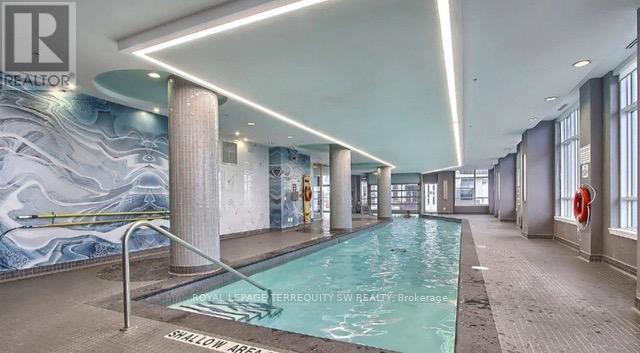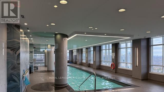 right, open-concept one-bedroom where the layout does all the heavy lifting. Featuring dark Laminate floors that run through the main living area, anchoring a space that feels warm, grounded, and larger than its 528 square feet suggest. Floor-to-ceiling windows face out with an open view, pulling in natural light from every angle - the kind that makes you want to linger over a morning coffee. The kitchen is the centerpiece. Granite countertops, a full stainless steel appliance package (fridge, stove, dishwasher, built-in microwave), rich dark-toned cabinetry with generous upper storage, and a breakfast bar that seats two. It's designed for real cooking and easy entertaining - all open to the living/dining room so you're never out of the conversation. The bedroom comfortably fits a queen, has its own window for natural light, and connects directly to a clean, well-appointed 4-piece bath. The building delivers resort-level amenities: indoor and outdoor pool, full gym, yoga studio, rooftop terrace, party room, and a lounge that sets the tone the moment you walk in. Step outside and Yonge Street puts transit, dining, groceries, and retail all within walking distance. One underground parking space included. A smart buy - for first-timers and investors alike (id:64974)