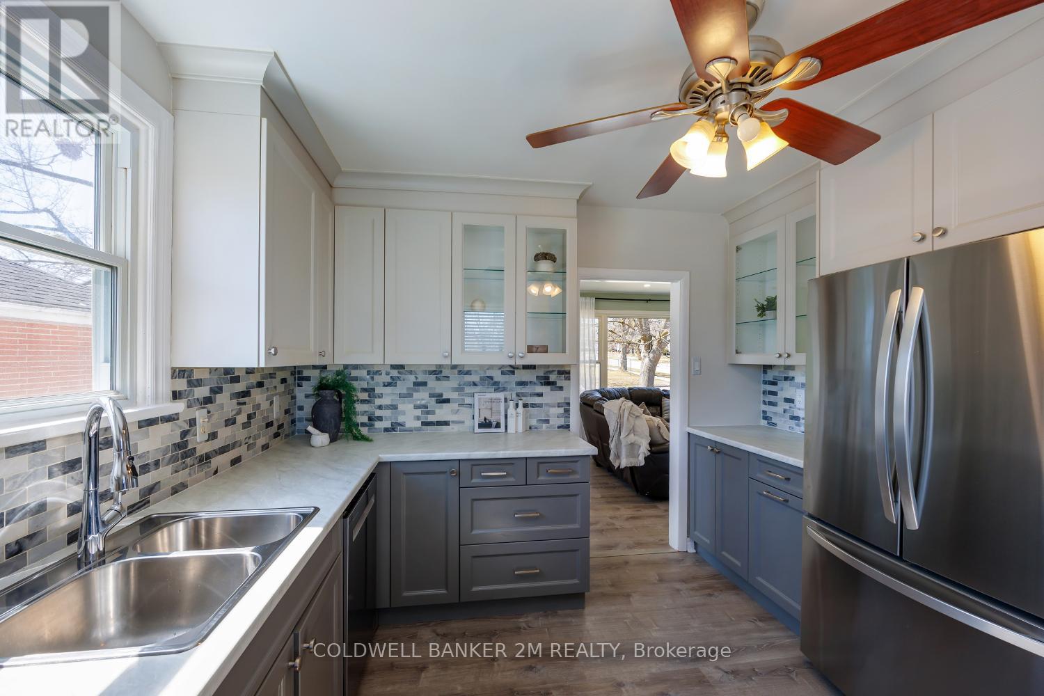 Welcome to 814 Downie Street located in a desired family friendly Peterborough neighborhood. This home offers many updates including a beautifully renovated kitchen newer stainless appliances, glass accents to upper cabinets. New vinyl flooring throughout the main level, newer bay window in the living room allows natural light to flood indoors. Three bedrooms and full 4pc bathroom. The basement allows for additional living space or in law potential, finished rec room combined with a kitchenette area, bedroom, and full 4pc bathroom, separate side entrance. Relax at the end of the day in the hot tub while entertaining on the deck. Privately fenced yard. Wide driveway provides extra parking paved in 2021. This home is perfect for first time home buyer or retirees looking to downsize. (id:64974)