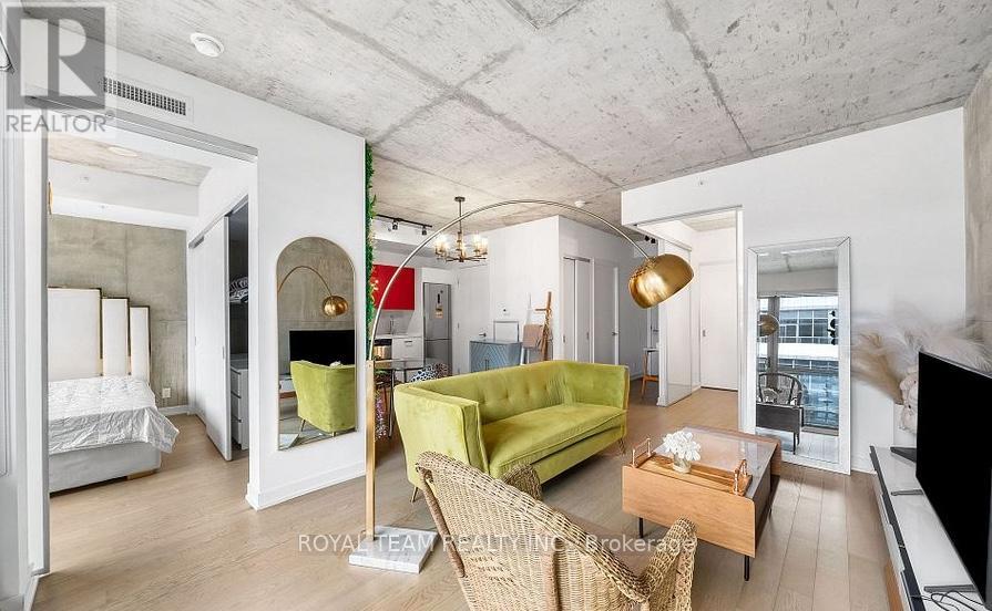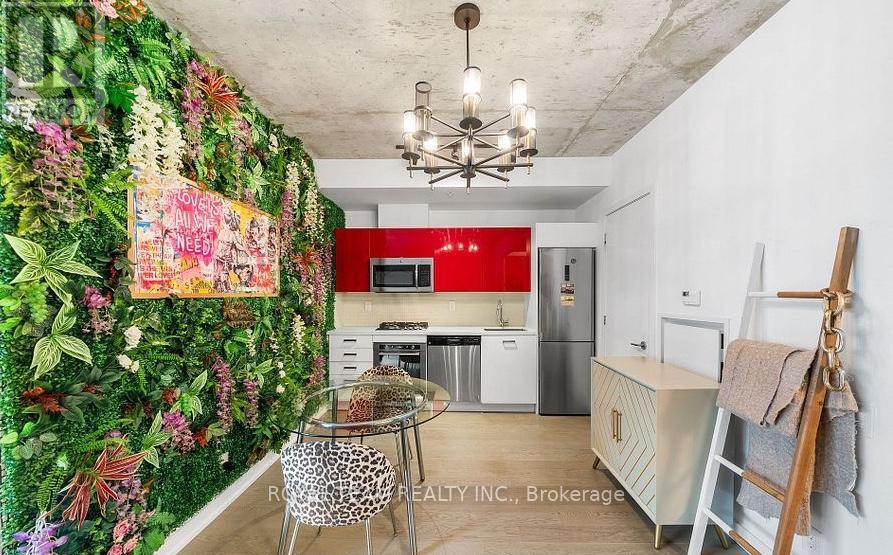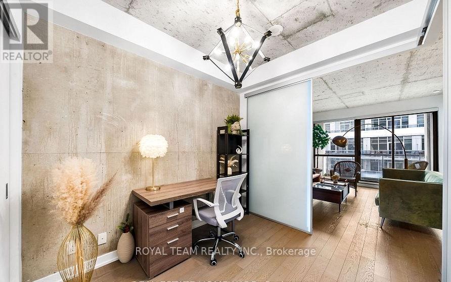 3-6-9- month rent is available! Welcome to fully furnished ( furniture is optional) eclectic soft-loft in the heart of Toronto's sought-after Fashion District.This thoughtfully designed two-bedroom suite is located just steps from St. Andrew's Park and within easy reach of Waterworks Food Hall and the ACE Hotel. The neighborhood offers a vibrant mix of dining, cafés, boutiques, and nightlife - all within walking distance.The layout is highly efficient, maximizing every square foot with no wasted space. Floor-to-ceiling windows flood the interior with natural light, while 9-foot exposed concrete ceilings and feature walls create a modern, loft-inspired aesthetic.The European-style kitchen is both stylish and functional, featuring a gas cooktop, quality built-in appliances, and refined finishes. Hardwood flooring runs seamlessly throughout the unit. The spa-inspired bathroom includes a deep soaker tub and a filtered shower system for added comfort.Enjoy the convenience of a natural gas hookup on the balcony, allowing for a private in-suite BBQ.Located in a secure building and surrounded by the very best of downtown living, this suite offers comfort, style, and convenience in one of Toronto's most dynamic neighborhoods. Located in a secure building and surrounded by the very best of downtown living, this suite offers comfort, style, and convenience in one of Toronto's most dynamic neighborhoods. (id:64974)