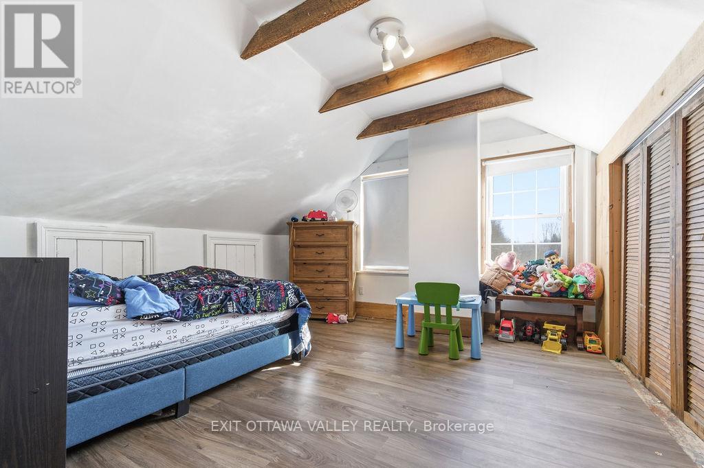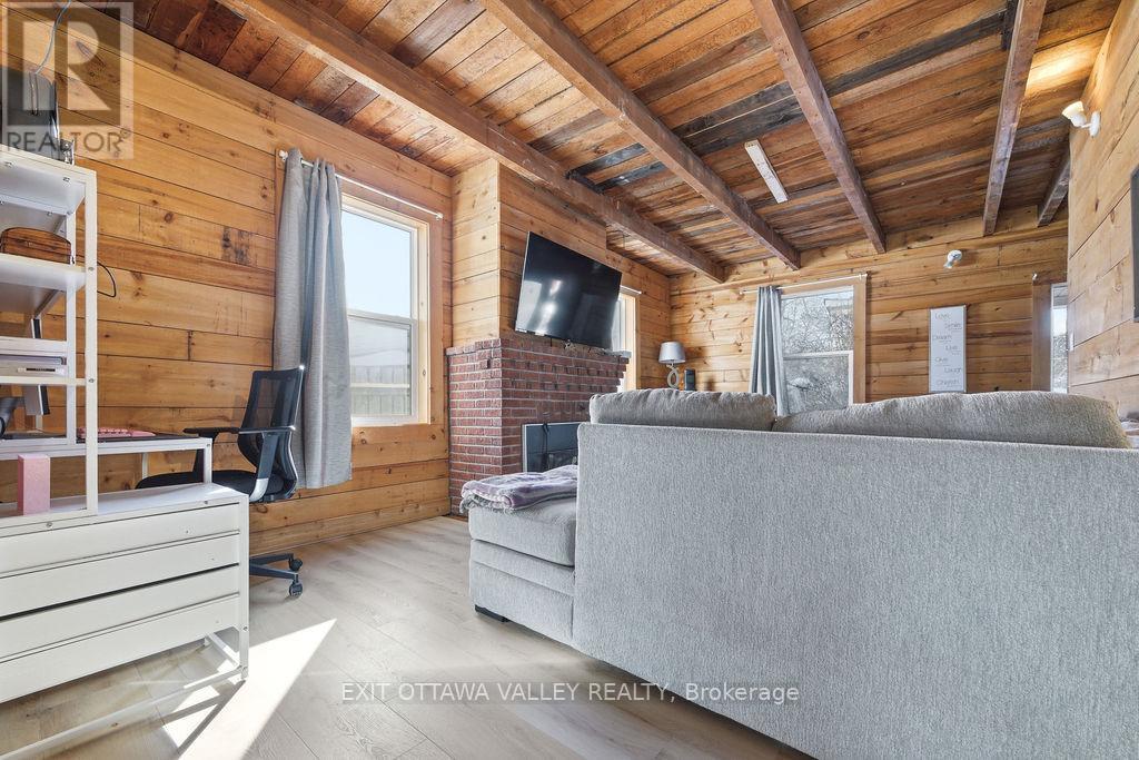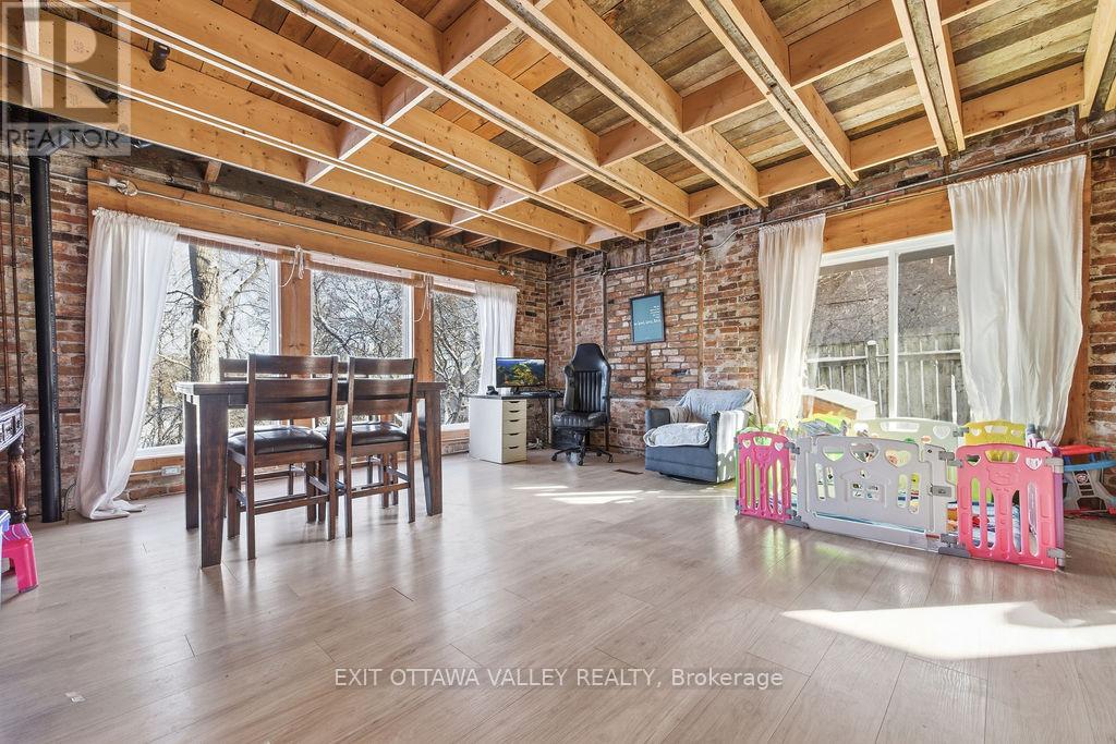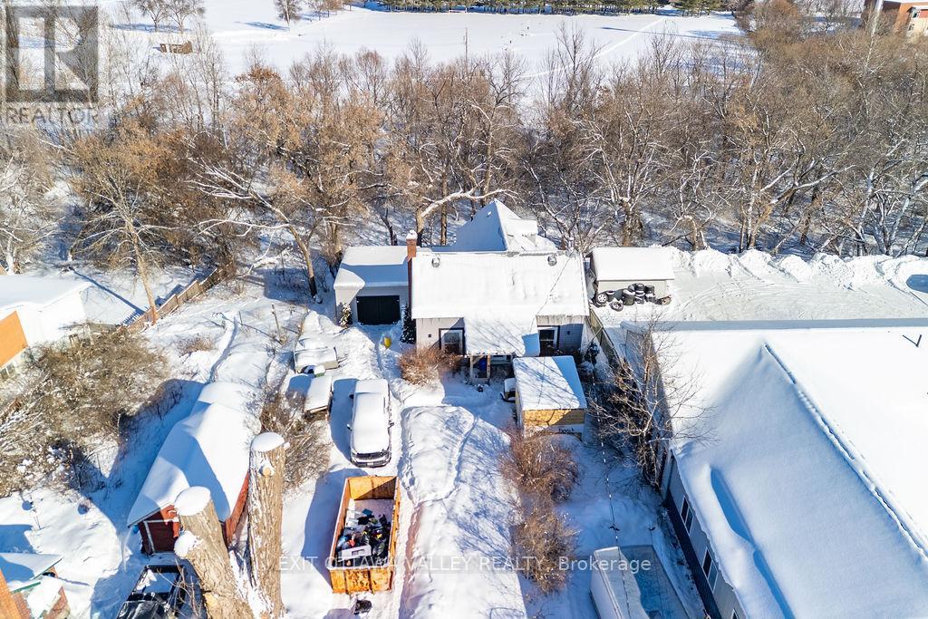 Rare opportunity in the heart of downtown Pembroke. This spacious 4 bedroom, 1.5 bathroom home offers an exceptional combination of central location and private, treed acreage on a 2.5 acre lot! Enjoy walking paths leading directly from your backyard to Riverside Park, all while being steps from downtown shops, restaurants, and services. The back deck overlooks mature trees and natural surroundings, creating a peaceful, private setting that feels more like a country property than a city home. Inside the home features exposed brick and beam details, adding warmth and character throughout. With attached garage and generous layout this home offers plenty of space for family living. (id:64974)