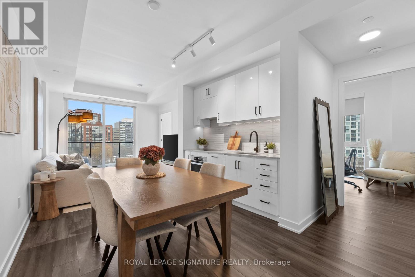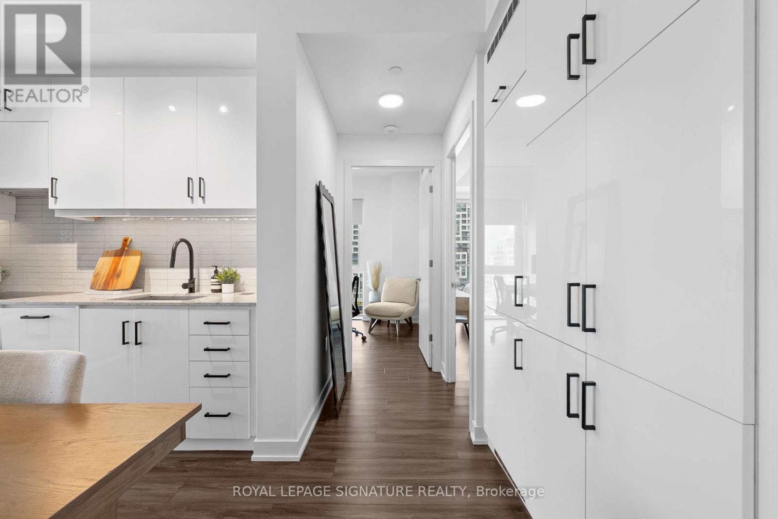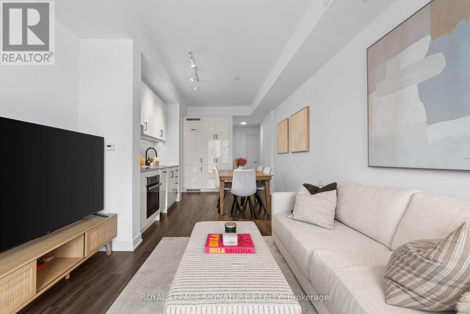 Welcome to King West - where your Uber Eats arrives faster than your group chat replies. Set on the quiet side of the building, this bright and stylish 875 sq ft suite offers a smart, flexible layout with 3 bedrooms (or 2 bed + den), 2 full bathrooms, and an open-concept design with modern finishes throughout, equally suited for quiet nights in or pre-drinks before hitting the neighbourhood. Enjoy skyline views including the CN Tower, plus a show-stopping 268 sq ft wrap-around balcony, perfect for morning coffee, sunrise hangs, and hosting friends all summer long. Pride of ownership shines: one owner, never rented, and meticulously cared for.And the cherry on top? Parking + locker included because convenience is the real luxury. Steps to TTC, world-class dining, shopping, nightlife, and everything that makes King West iconic. (id:64974)