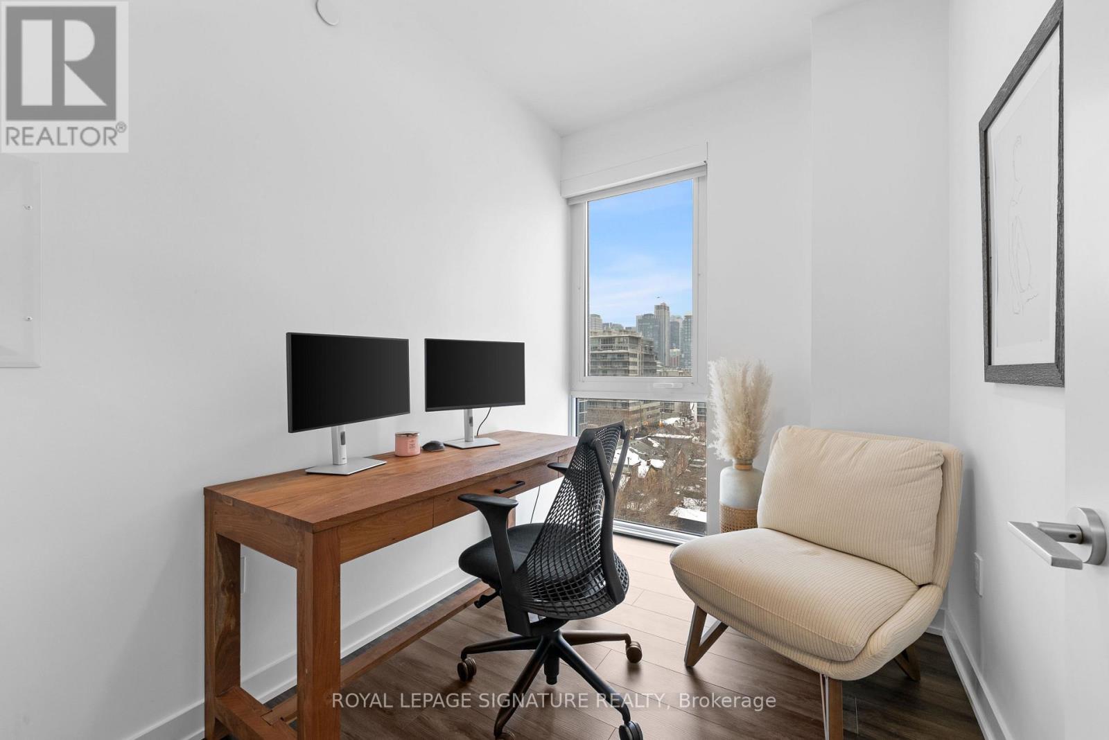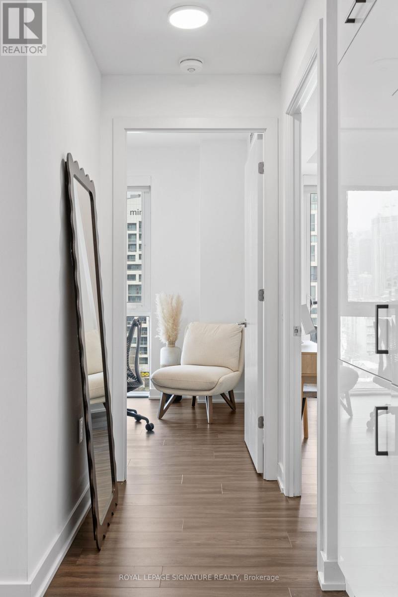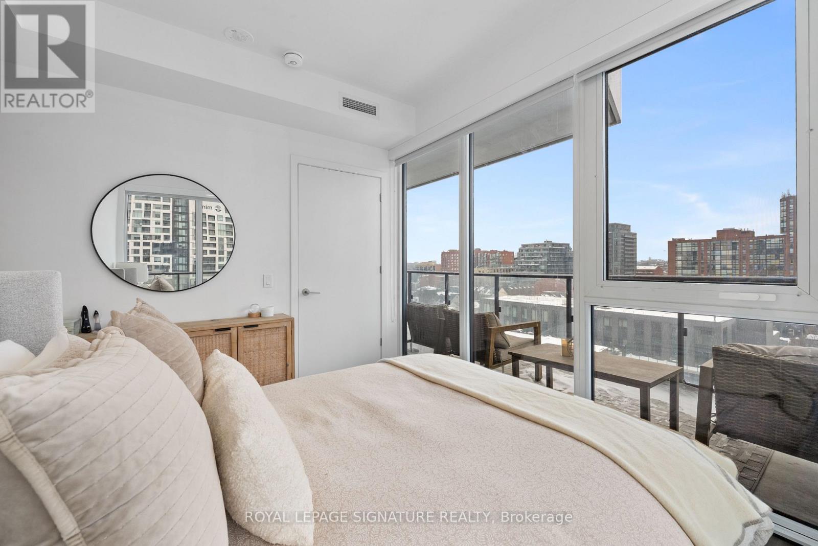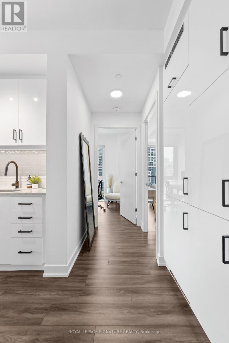 Welcome to King West - where your Uber Eats arrives faster than your group chat replies. Set on the quiet side of the building, this bright and stylish 875 sq ft suite offers a smart, flexible layout with 3 bedrooms (or 2 bed + den), 2 full bathrooms, and an open-concept design with modern finishes throughout, equally suited for quiet nights in or pre-drinks before hitting the neighbourhood. Enjoy skyline views including the CN Tower, plus a show-stopping 268 sq ft wrap-around balcony, perfect for morning coffee, sunrise hangs, and hosting friends all summer long. Pride of ownership shines: one owner, never rented, and meticulously cared for.And the cherry on top? Parking + locker included because convenience is the real luxury. Steps to TTC, world-class dining, shopping, nightlife, and everything that makes King West iconic. (id:64974)