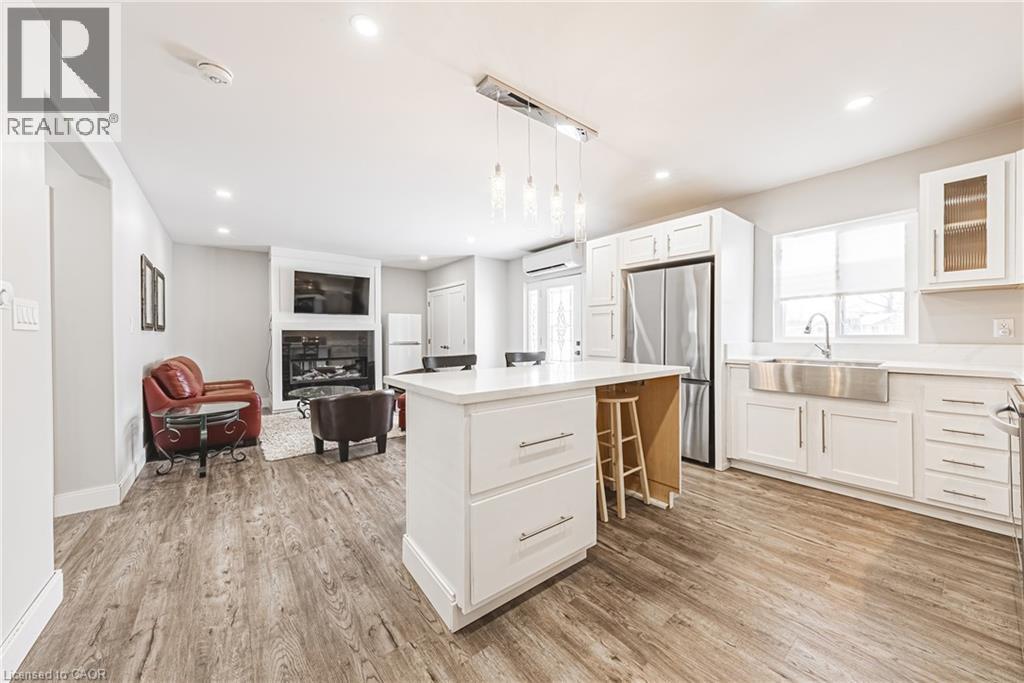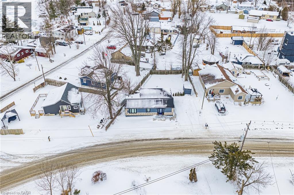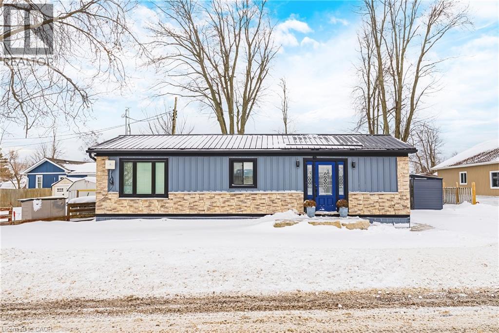Recently renovated bungalow on picturesque 80' x 101' lot. Super high end finishes inside and out! Exterior finish boasts new stone skirting, complimented with modern vinyl. Stamped concrete porch and walk way make this home stand out and give it great curb appeal. Ample front yard parking for two cars. accessible through rear door ideal for entertaining and enjoying private outdoor time. The open concept interior layout will be sure to impress with 1030 sq ft of distinguished living space highlighted by custom kitchen cabinetry featuring quartz countertops, island with breakfast bar, dining area, spacious living room with gas fireplace, gorgeous luxury vinyl plank flooring throughout, 4 pc bathroom complete with laundry, & 3 large main floor bedrooms. New stainless steel appliances included with washer and dryer. Highlights include modern decor, upgraded insulation, leaf fitter eavestroughs, HRV system, new plumbing, wiring, flooring, fixtures, & more! Conveniently located minutes to beach, Hoover's marina, & amenities. Ideal for a 4 season cottage retreat, the discerning first time buyer, or those looking to downsize in style. Close to popular Port Dover & Relaxing commute to 403, QEW, & GTA. Affordably priced Call today for your private viewing & your opportunity to Experience and Enjoy all that Peacock Point living has to offer! Just move in & Enjoy - Will not disappoint! (id:64974)