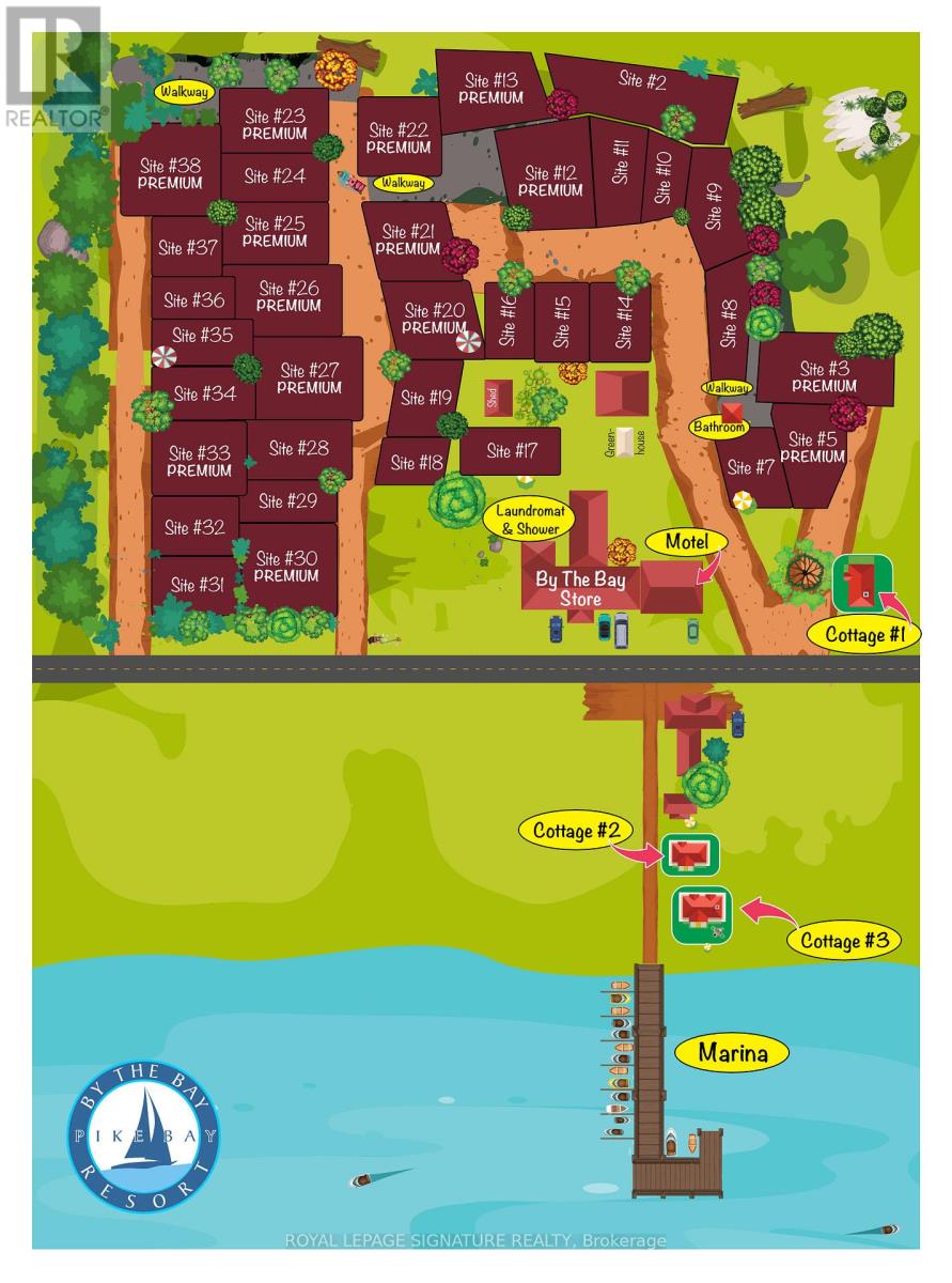 Full LCBO (Beer, Wine & Spirits) + 3 Rental Cottages + 35 sites RV Park + 4 room Motel + Marina + Boat Launch + Boat Dock + Convenience Store + Take Out Restaurant + 3 bed 2 bath House. Experience the pinnacle of entrepreneurship with By the Bay Resort, a powerhouse of diversified income streams perfectly packaged into one stunning waterfront property. This isn't just a resort, it's a high-performing "all-in-one" commercial engine that blends a high demand retail hub with a premiere recreational destination. At the heart of the operation is the highly coveted LCBO and Beer Store outlet, providing a recession-resistant anchor that draws consistent traffic from both the local community and the seasonal tourist base. This retail dominance is complemented by a bustling convenience store, ensuring the resort remains the primary "one-stop shop" for every traveler and resident in the area. The recreational lifestyle component is equally robust, offering a comprehensive maritime and hospitality infrastructure. The property features a marina equipped with a private boat launch and extensive boat docks, positioning it as the go-to gateway for lake exploration. Accommodations are designed for maximum occupancy and variety, boasting a charming collection of cottages and a sprawling 35-site RV park. Whether it's daily retail sales, seasonal docking fees, or long term vacation rentals, this property offers a rare "best of all worlds" synergy where every square foot generates value. For the visionary investor seeking a turnkey lifestyle business with built-in stability and massive upside, By the Bay Resort is the ultimate catch. VTB option available for qualified buyers at the seller's absolute discretion. The listing price and details include the additional parcel of 818 Pike Bay Rd. (id:64974)