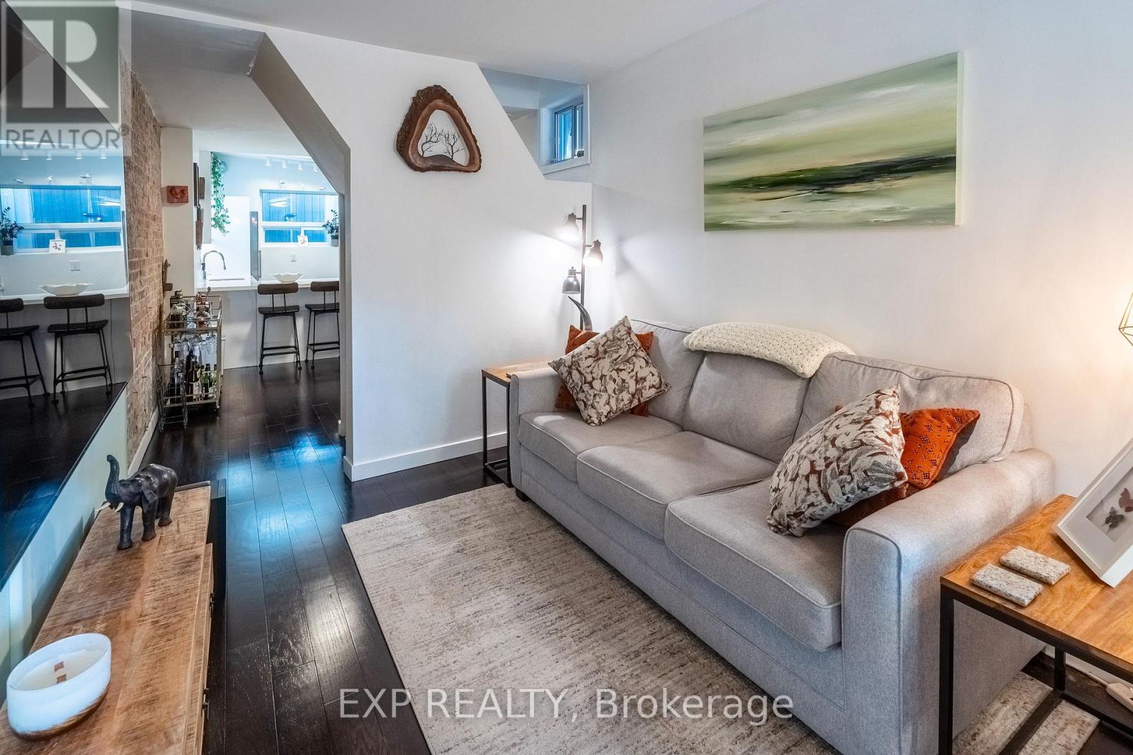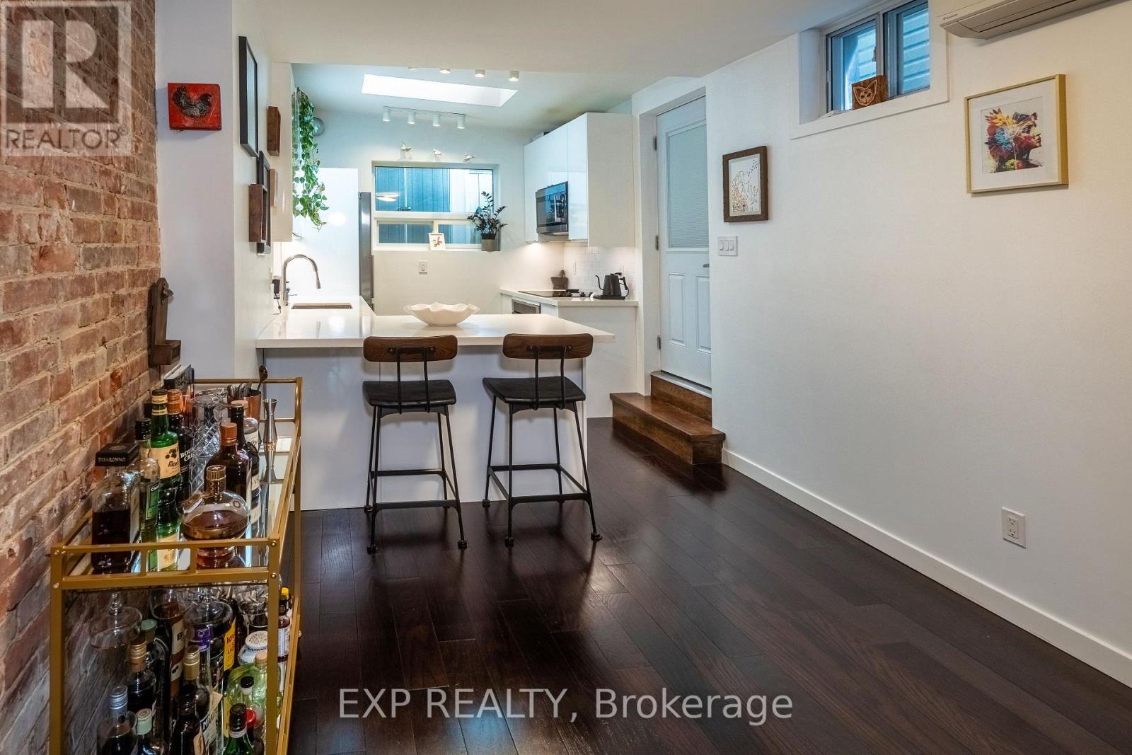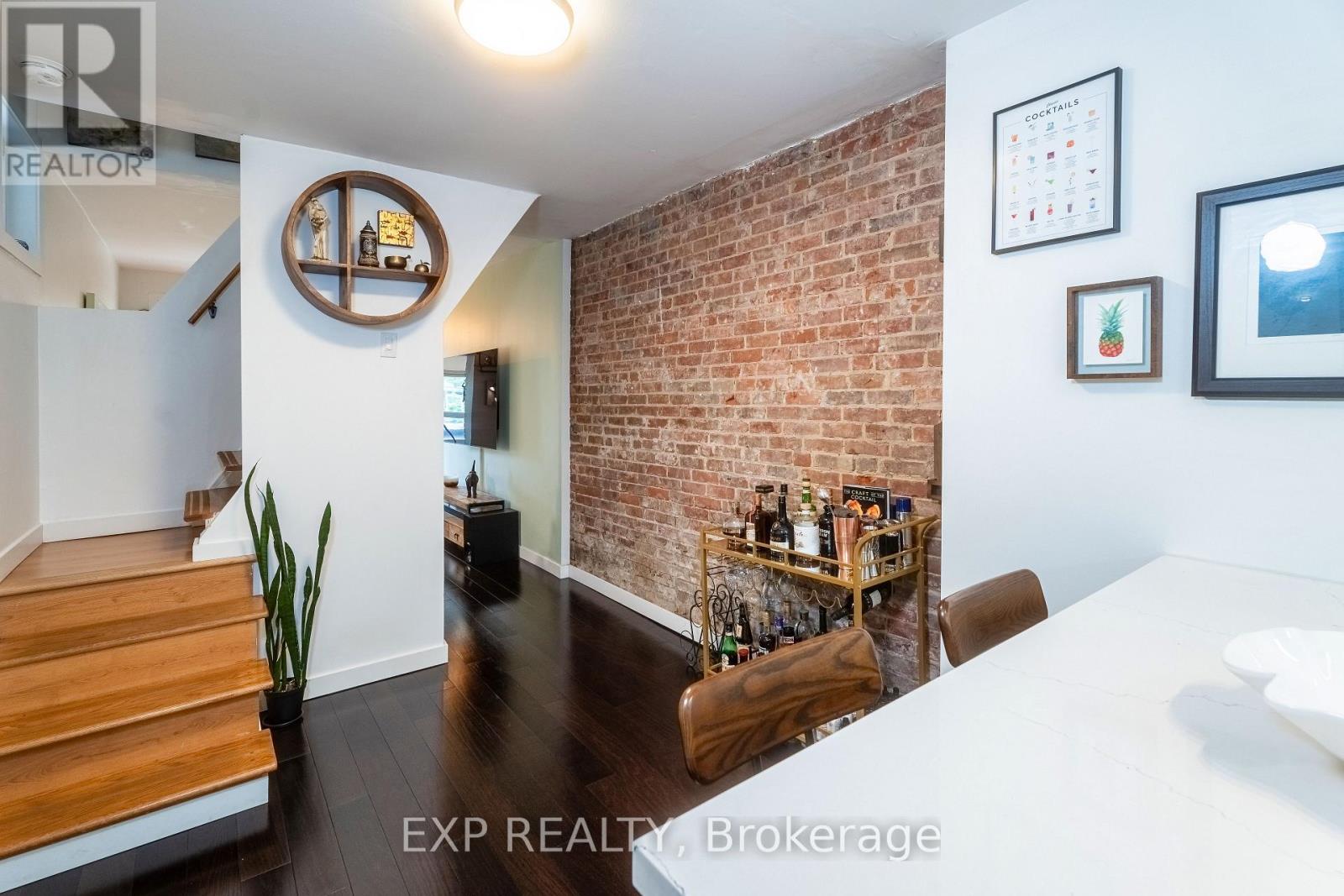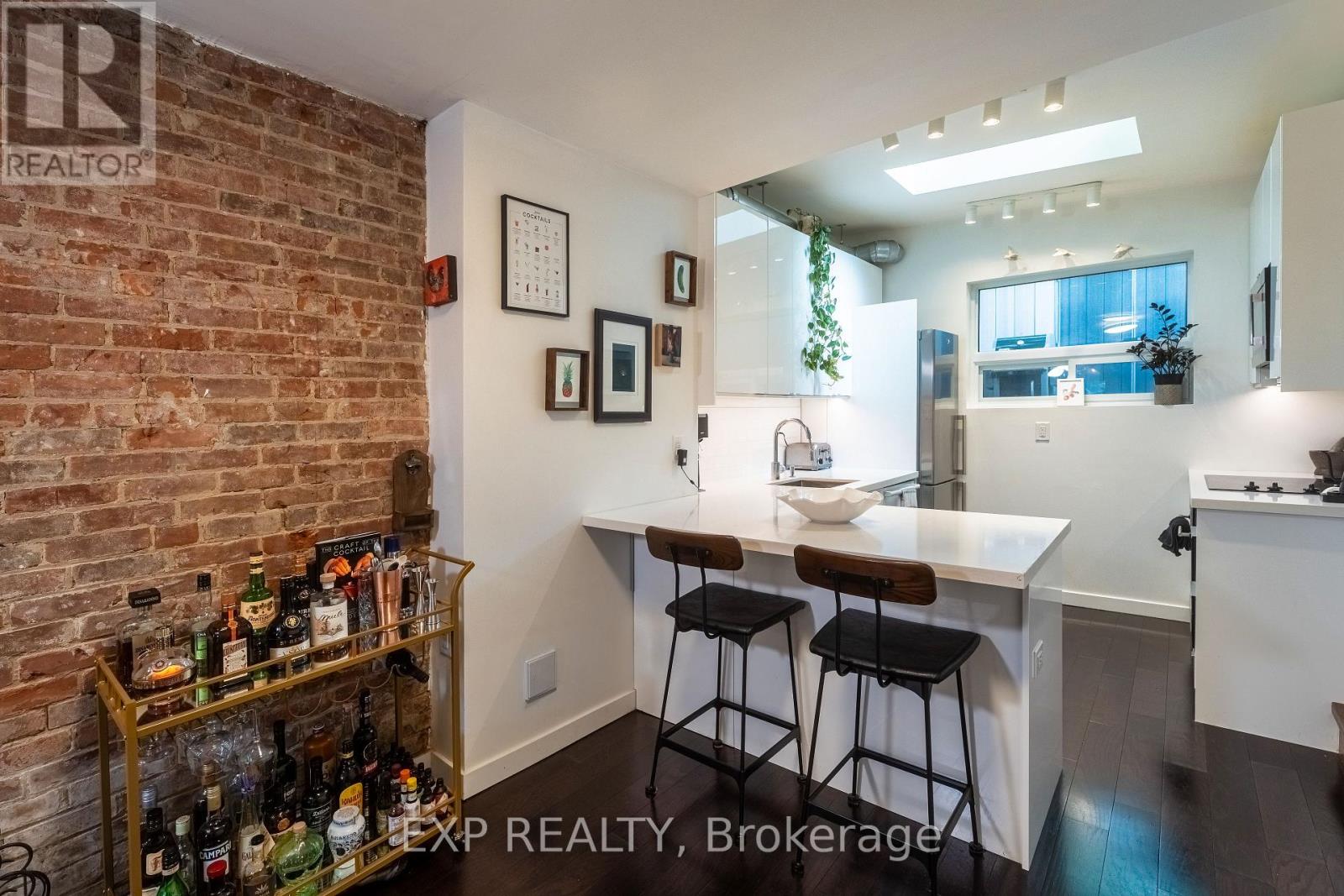 Why settle for a condo when you can own a freehold home in one of Toronto's most vibrant east end neighbourhoods? Welcome to 819 Craven Rd, a stylish, renovated semi-detached home that offers all the benefits of a 2-bedroom condo without the monthly maintenance fees or shared walls above or below. Inside, you'll find warm hardwood floors throughout, a light-filled front Sun Room with heated flooring, and a beautifully upgraded kitchen with quartz countertops, stainless steel appliances, and a breakfast bar. The open-concept living and dining area is anchored by a striking exposed brick feature wall - adding warmth, texture, and a touch of urban charm that sets this home apart. Upstairs features two bright bedrooms, including a primary with a walk-out balcony and large closet. The spa-like 4-piece bathroom includes heated floors for extra comfort. Outside, relax or entertain on your private backyard patio; your own slice of outdoor space in the city. Located steps to transit, parks, shops, and restaurants, this home is perfect for anyone looking at a condo but would rather own a free-hold property, first-time buyers, downsizers, or anyone looking for that hard-to-find blend of style, character, and full homeownership in Toronto. (id:64974)