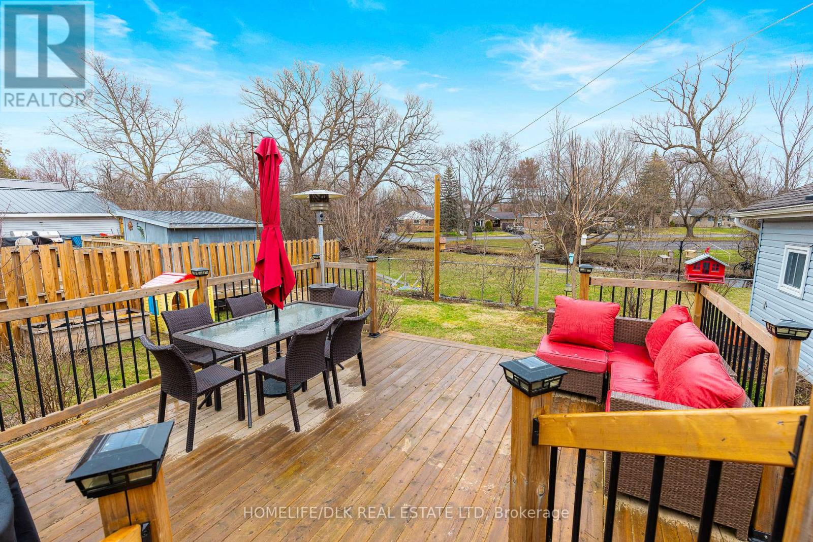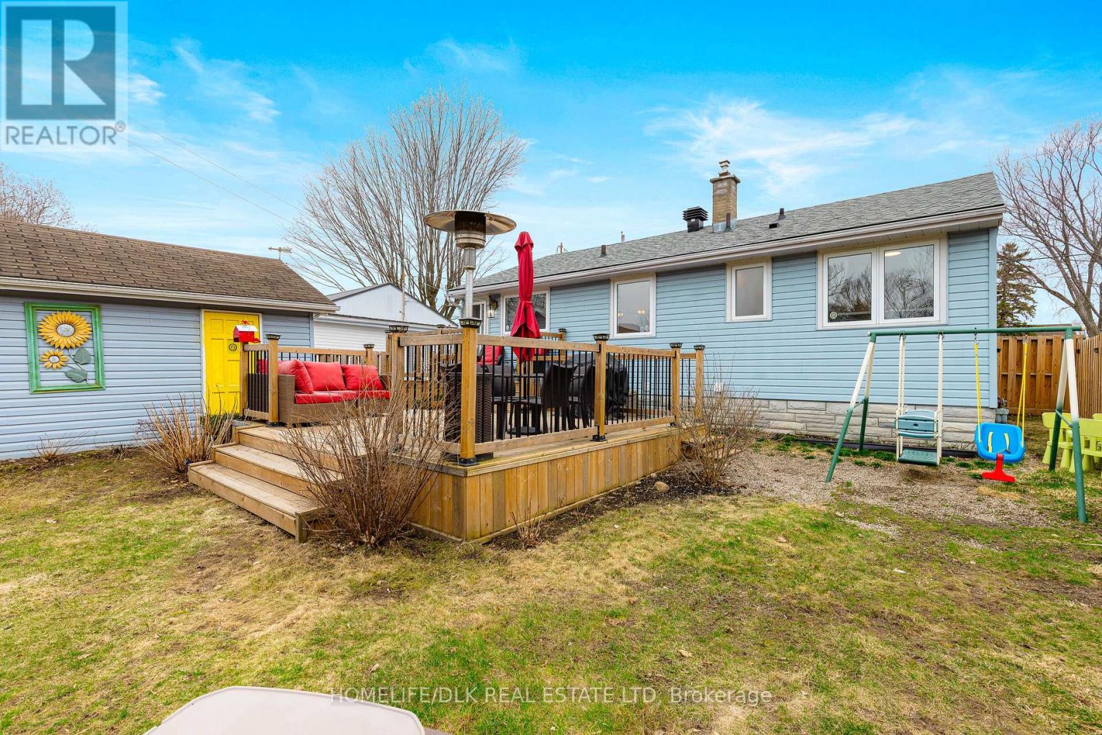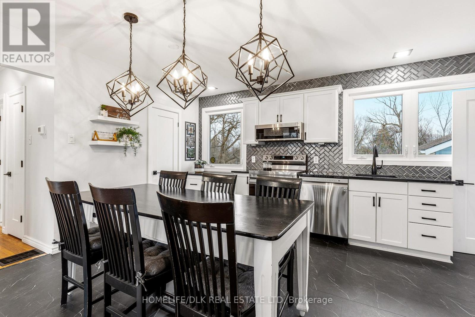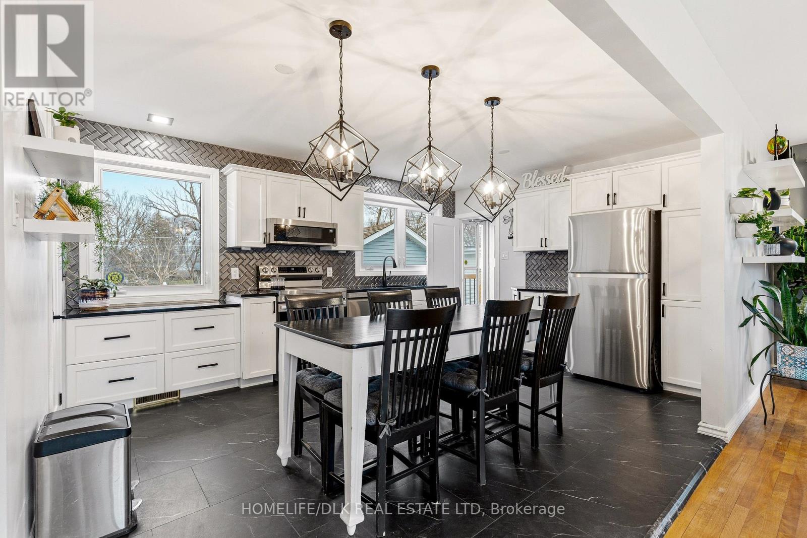 Welcome to this well maintained bungalow in a convenient central location in the vibrant riverfront city of Brockville. Known as the "City of the Thousand Islands," Brockville offers a wonderful quality of life with historic charm, scenic waterfront parks, recreational trails, excellent schools, shopping, restaurants and easy access to Highway 401 for commuters. This popular bungalow style home offers over 1,600sf of space across two levels and is ideally positioned backing onto a greenbelt area with walking path along Butler's Creek, providing a peaceful natural setting with no rear neighbours. The fully fenced rear yard is exceptionally private and features a new deck, hillside gardens and a convenient access gate leading directly to Brookview Park. A detached garage and paved driveway add practical everyday convenience. The modernized main level showcases a bright open concept layout centered around a sleek white kitchen with focal centre seating plan, pantry, new appliances and stylish fixtures and finishes. New flooring flows through the kitchen while beautifully complementing the hardwood flooring throughout the spacious living and dining rooms and two comfortable bedrooms. The finished lower level offers incredible flexibility for today's lifestyle needs. Ideal for a work from home space, studio, gym, daycare or multi generational living, this level includes a kitchenette, updated flooring in the spacious recreation room, third bedroom, three piece bath with glass shower enclosure and laundry area with washer and dryer included-and a handy storage room offers potential for future re-purposing. Additional features include architectural shingles, 100 amp breaker panel, Keeprite high efficiency gas furnace (5 years) and Bryant central air. A versatile property combining tasteful decor, comfort, privacy and convenience on a low traffic cul-de-sac in desirable central neighbourhood-this one will check a lot of boxes for a variety of lifestyles! (id:64974)