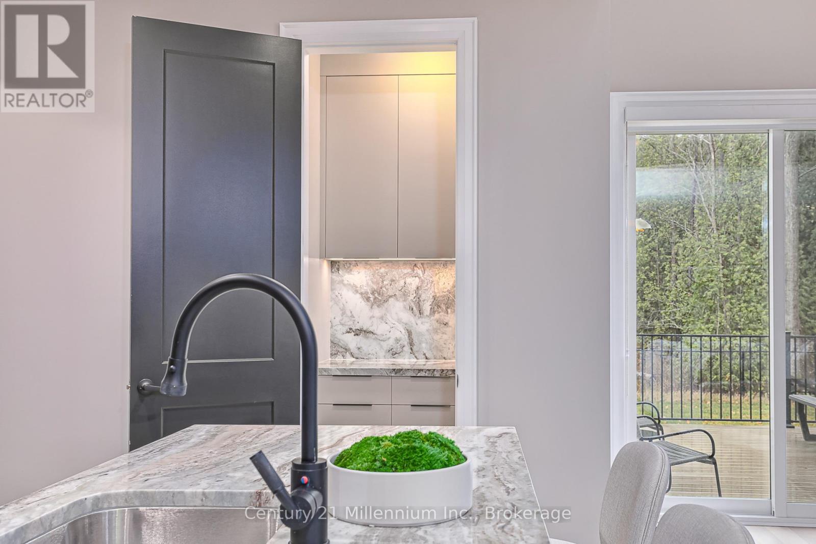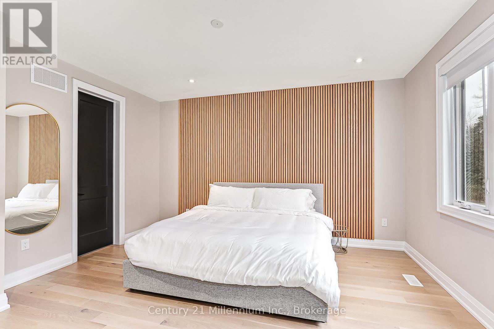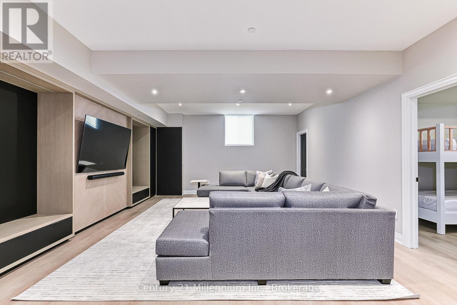 Available for annual lease in the Bayside community, this exceptional 5-bedroom home offers refined finishes and spectacular privacy. This stunning property features elegant white oak hardwood flooring leading into a spacious great room, highlighted by a striking marble and wood-paneled fireplace. The gourmet kitchen is a chef's dream, boasting high-end stone countertops, a 36" gas range, a butler's pantry, and panel appliances. The dining room is perfect for entertaining, comfortably seating eight for unforgettable meals with family and friends. The main-floor primary suite offers tranquil forest views, a king bed, and an ensuite bath with a soaker tub, double sinks, and a glass shower. An additional main-floor bedroom with a queen bed and full bath provides ideal accommodations for guests. A mudroom with custom cabinetry leads to a double garage equipped with an EV charger, ensuring seamless access after a day of adventure. The thoughtfully designed upper-level loft includes a cozy seating area with a TV, a bedroom with twin trundle beds, and another full bath. Lower-level recreation room features an oversized sofa, a large television, and a custom kitchenette with speed oven, perfect for relaxing evenings. Kids will love the bunk room with four bespoke built-in bunks, while an additional queen bedroom and full bath is ideal for guests. Enjoy a private back deck, complete with a BBQ, overlooking serene forests and providing direct access to the Georgian Trail. This unique rental perfectly located between Blue Mountain and Thornbury promises an unparalleled experience, making it the perfect retreat to enjoy golf, biking, skiing, swimming and exploring. (id:64974)