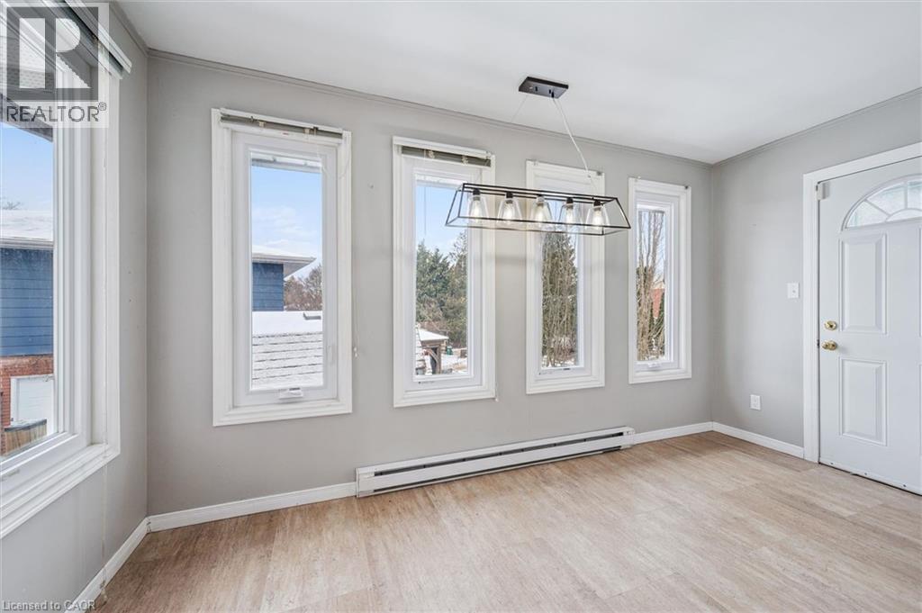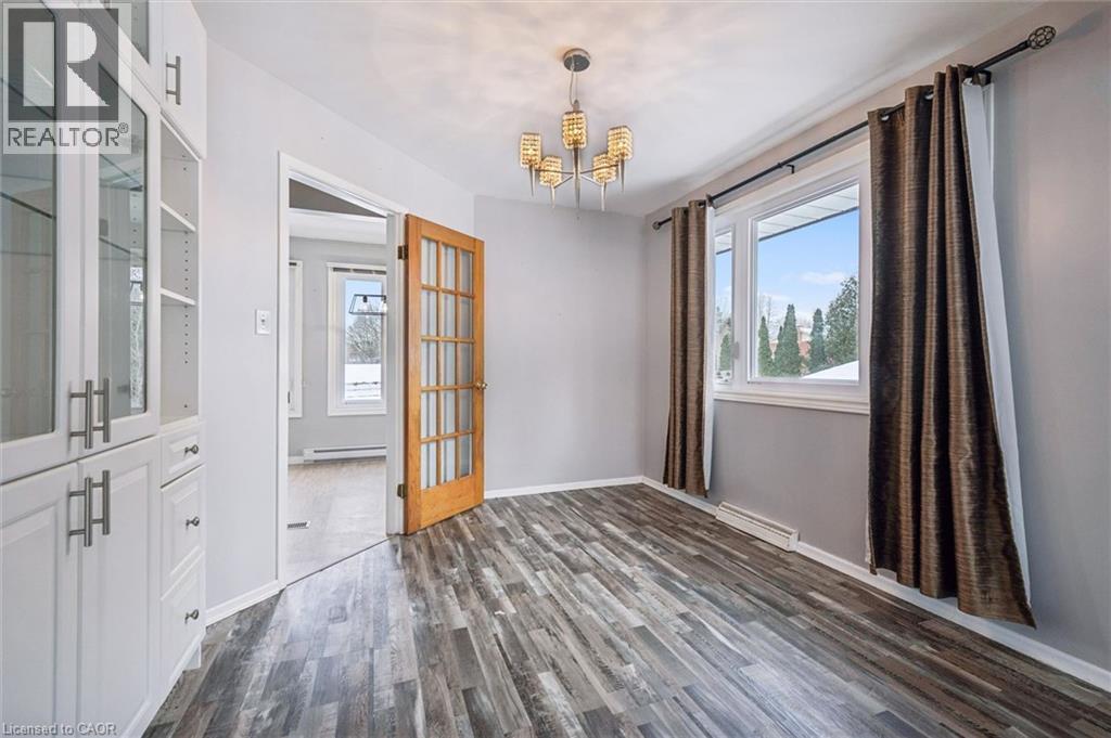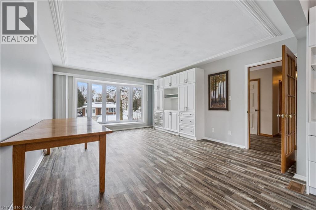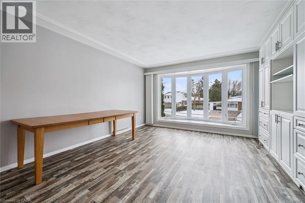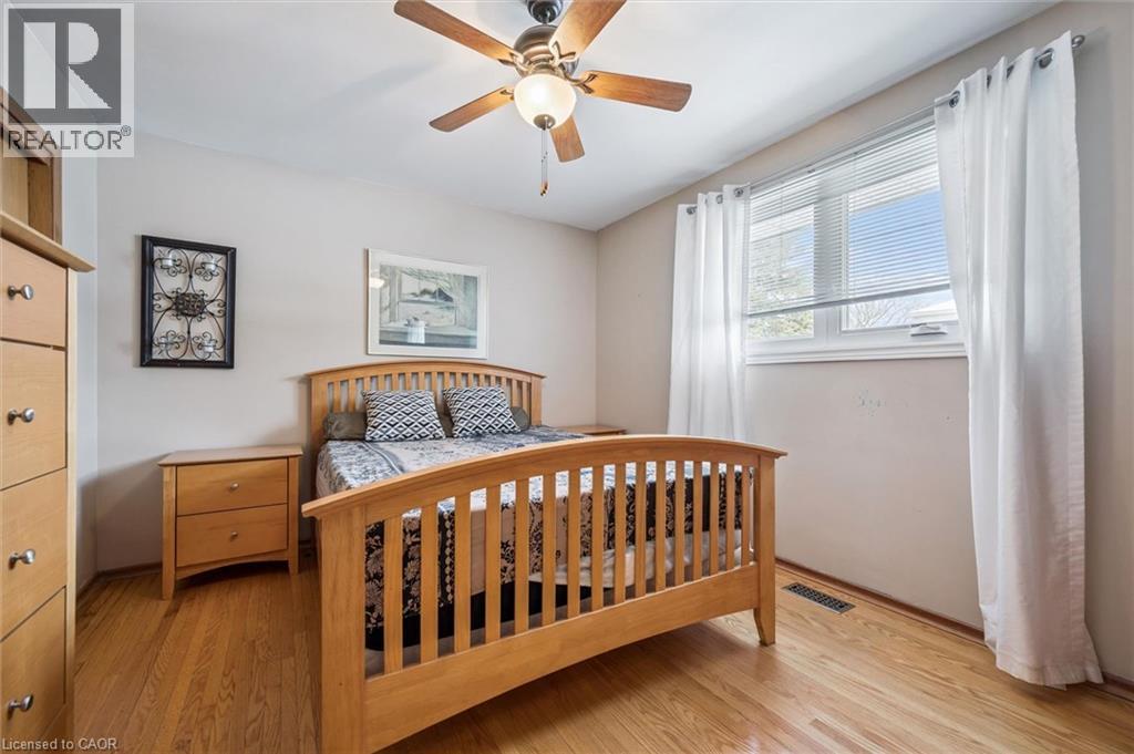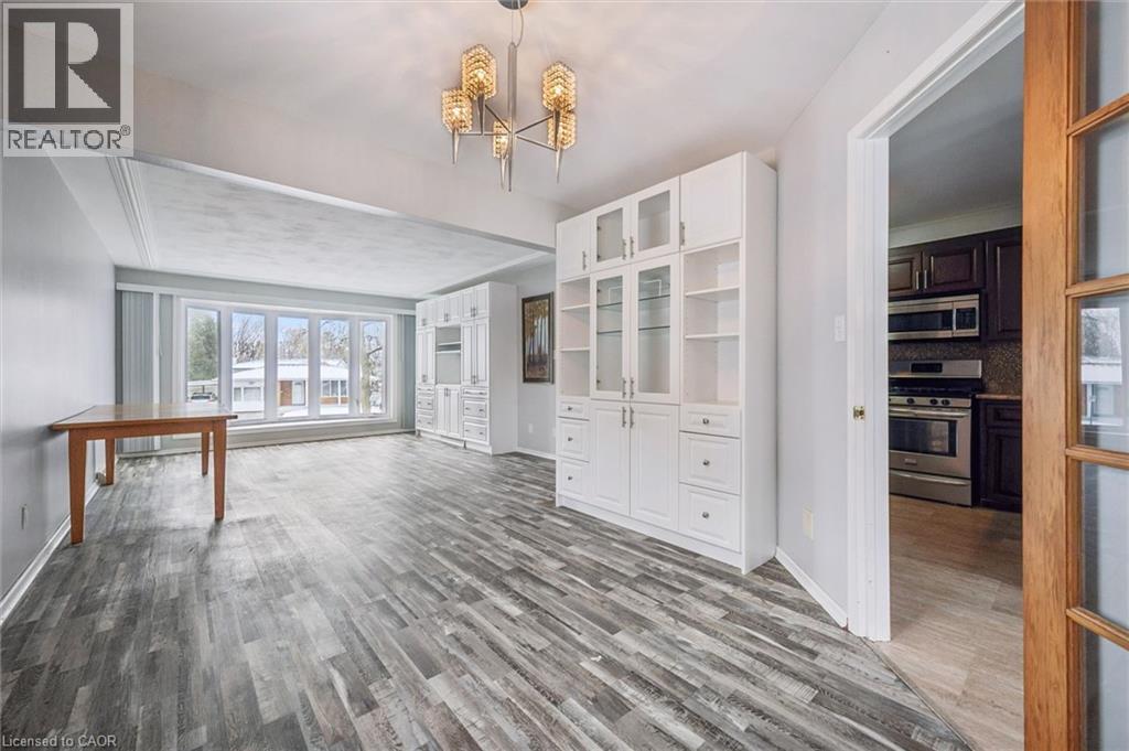 Check everything off your list! This adorable raised bungalow is located on a quiet tree lined street in friendly Heritage Park! Welcome inside the spacious foyer with just a few steps up to a classic single storey layout featuring an oversized living and dining room with bright views of the mature streetscape. The kitchen features plenty of timeless shaker cabinetry including a handy pantry and is open to a breakfast area with door access to the backyard. Down the hall are three bright bedrooms, all with cozy hardwood floors and spacious closets. The four piece bathroom has been updated and features a stone top vanity with two storage towers and a tub/shower combo. The lower level is completely finished with a large family room (huge windows) hosting a rustic brick fireplace. An additional bedroom or office, three piece bathroom and laundry room (as well as garage access) can be found on this level. The furnace and A/C were installed in 2019 and the roof in 2018. BONUS: Extra deep garage, parking for four and fully fenced private backyard with deck! A stone's throw from Tecumseh Park, Crestview Elementary, Grand River Collegiate, Stanley Park Mall and the many great amenities of East Kitchener. Tons of curb appeal and an amazing opportunity to climb the property ladder in a mature family neighbourhood! (id:64974)