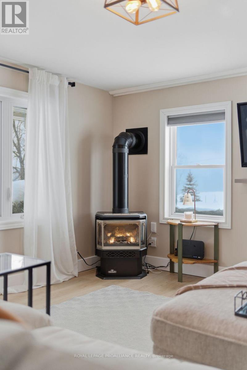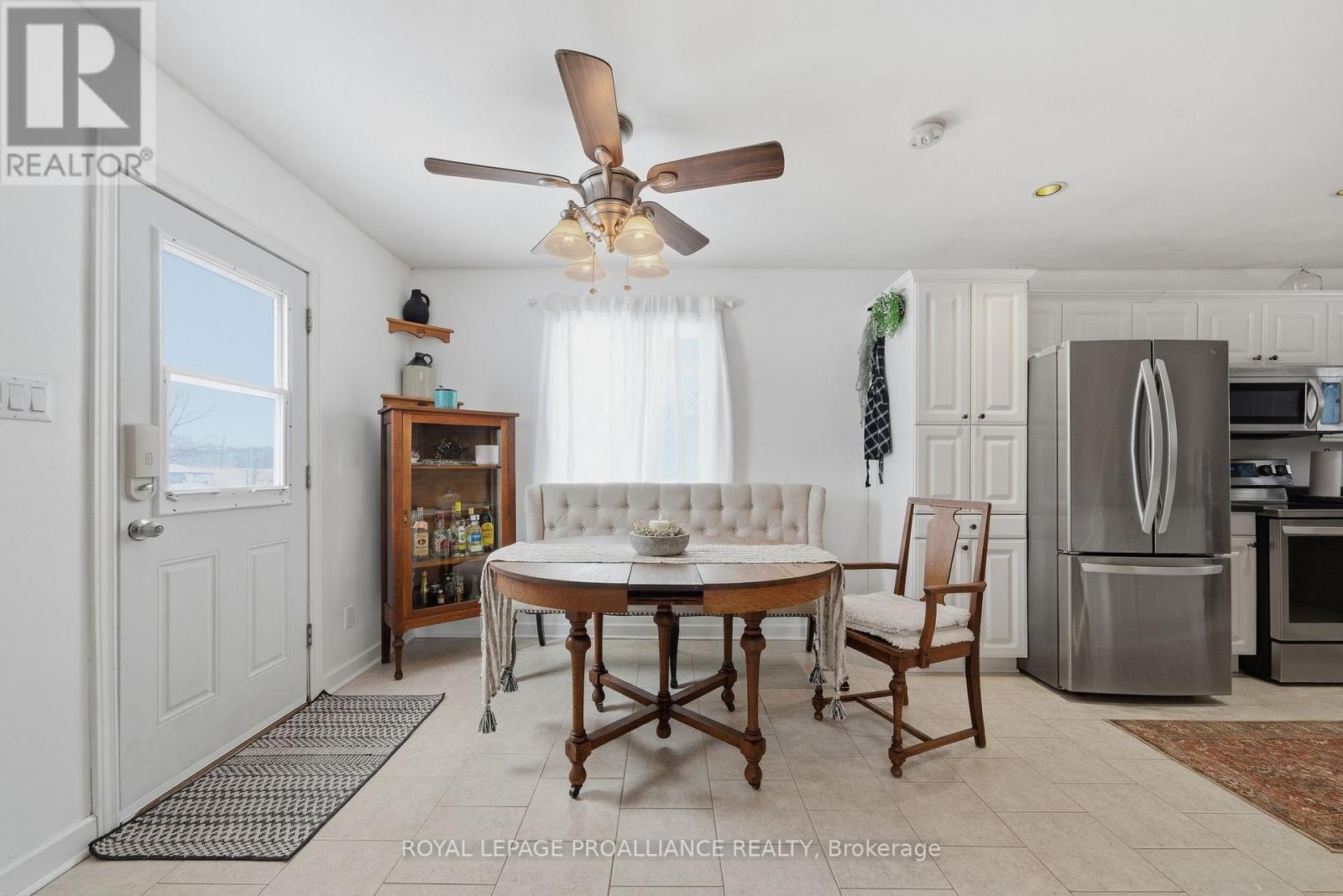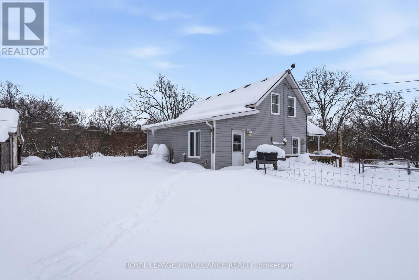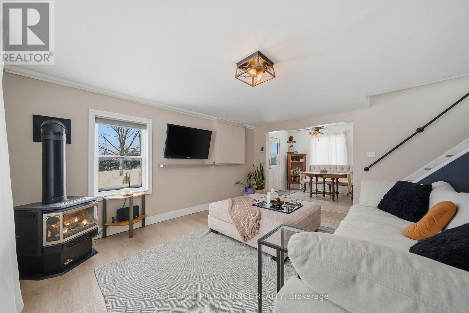 Step back in time while enjoying modern comfort in this absolutely adorable 1-storey country home, ideally located just minutes east of the City of Belleville. Built in 1907, this two-bedroom home is full of character and warmth, tastefully decorated to preserve its classic farm charm while incorporating modern touches. The bright and spacious living room features a cozy propane fireplace, while the inviting eat-in kitchen and convenient main-floor laundry make everyday living both comfortable and functional. Step out from the dining area onto a deck overlooking the just-over-half-acre lot-perfect for enjoying peaceful country views. Relax on the old-style front porch or explore the original garage and shed that truly evoke days gone by. If country living is what you've been searching for in a first-time home, you've found it. (id:64974)