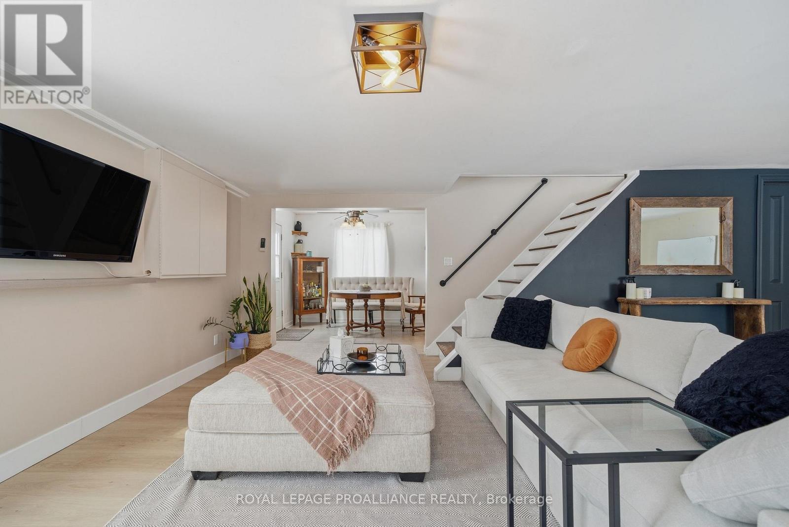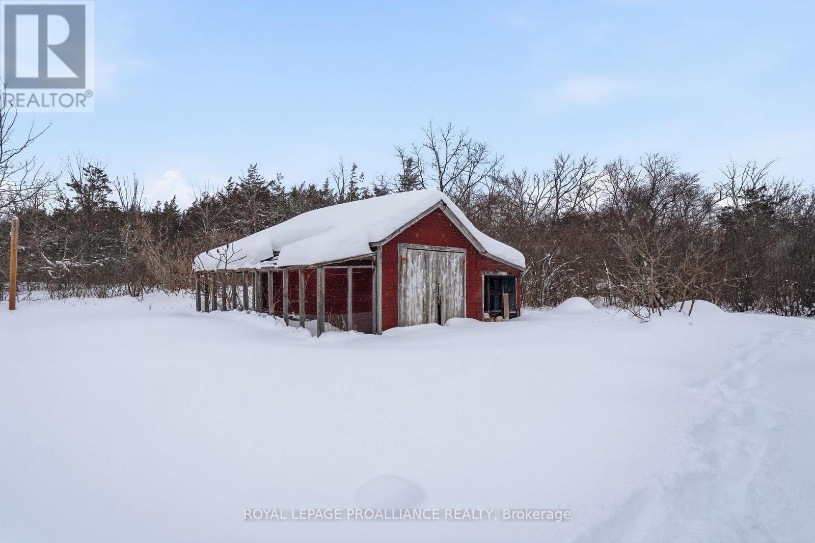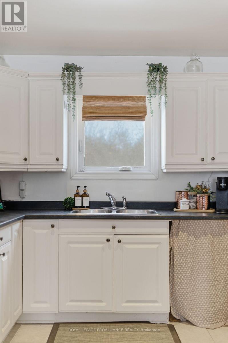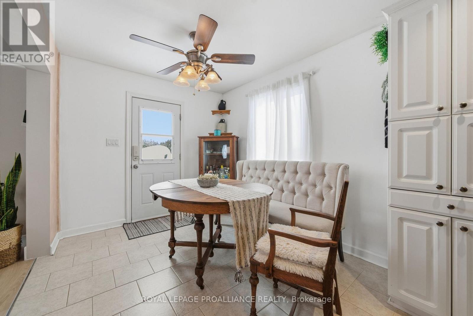 Step back in time while enjoying modern comfort in this absolutely adorable 1-storey country home, ideally located just minutes east of the City of Belleville. Built in 1907, this two-bedroom home is full of character and warmth, tastefully decorated to preserve its classic farm charm while incorporating modern touches. The bright and spacious living room features a cozy propane fireplace, while the inviting eat-in kitchen and convenient main-floor laundry make everyday living both comfortable and functional. Step out from the dining area onto a deck overlooking the just-over-half-acre lot-perfect for enjoying peaceful country views. Relax on the old-style front porch or explore the original garage and shed that truly evoke days gone by. If country living is what you've been searching for in a first-time home, you've found it. (id:64974)