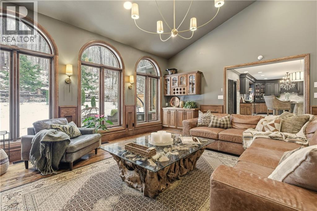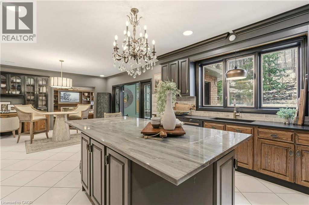 Welcome to an exceptional residence in the coveted Stoney Creek Plateau, where luxury, privacy, and breathtaking natural surroundings come together seamlessly. Offering more than 6,500 square feet of finished living space, this impressive home backs directly onto the Niagara Escarpment, showcasing sweeping views of Lake Ontario and the Toronto skyline. The grand main level welcomes you with an elegant foyer that opens into a stunning family room with soaring vaulted ceilings. The gourmet kitchen and formal dining room create an ideal setting for both everyday living and memorable entertaining. With 4+1 bedrooms, 5 bathrooms, and a serene, private backyard, this home delivers an extraordinary blend of comfort, sophistication, and modern convenience. The fully finished lower level includes a complete suite—perfect for multi-generational living, extended family, or guests seeking their own space. Homes of this calibre are rarely offered. Book your private viewing and experience the lifestyle that awaits at 82 Maple Drive. Let’s get you home. (id:64974)
