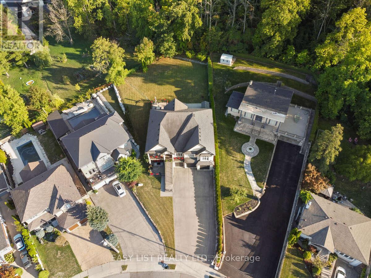 *** Visit the REALTOR website for further information about this Listing *** This custom-built multi-generational luxury home offers the perfect blend of city living and cottage-like tranquility, backing directly onto the escarpment for unparalleled privacy and natural beauty. With a spacious 3-car garage and room for up to 9 additional vehicles in the driveway, its ideal for large families or entertaining guests. The grade-level separate entrance leads to a beautifully finished lower level with in-law suite potential, a private terrace and radiant in-floor heating throughout. Upstairs, the home features coffered ceiling in the primary bedroom, dining room, and a versatile room that can serve as a fourth bedroom or home office. Designed with entertaining in mind, the open-concept luxury kitchen flows seamlessly into the vaulted-ceiling family room, filled with natural light from large windows. The kitchen boasts high-end appliances including a double oven, Dacor gas cooktop, Miele steam oven, garburator, dishwasher and wine cooler. A walk-in pantry with plumbing rough-in offers potential for a second sink. Outside, the premium -sized lot is a blank canvas, ready for your dream oasis to come to life. Located just 45 minutes from both Toronto and Niagara Falls, this exceptional property is close to a new GO Station, shopping, wineries, walking trails, a marina, beach, water park and vibrant waterfront dining. Families will appreciate nearby Catholic, Public, and French Immersion schools, along with two high schools and a college focused on skilled trades and apprenticeships. This home truly combines luxury, location, and lifestyle. (id:64974)