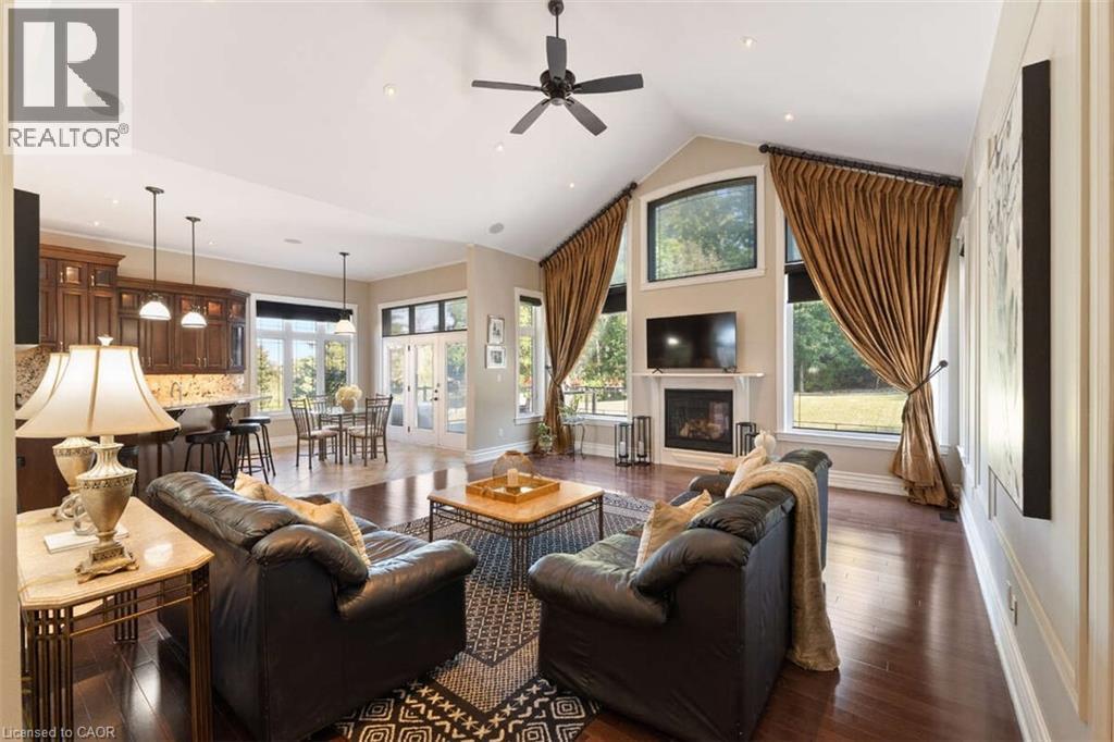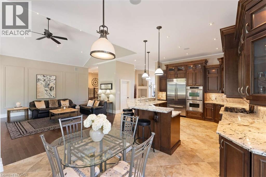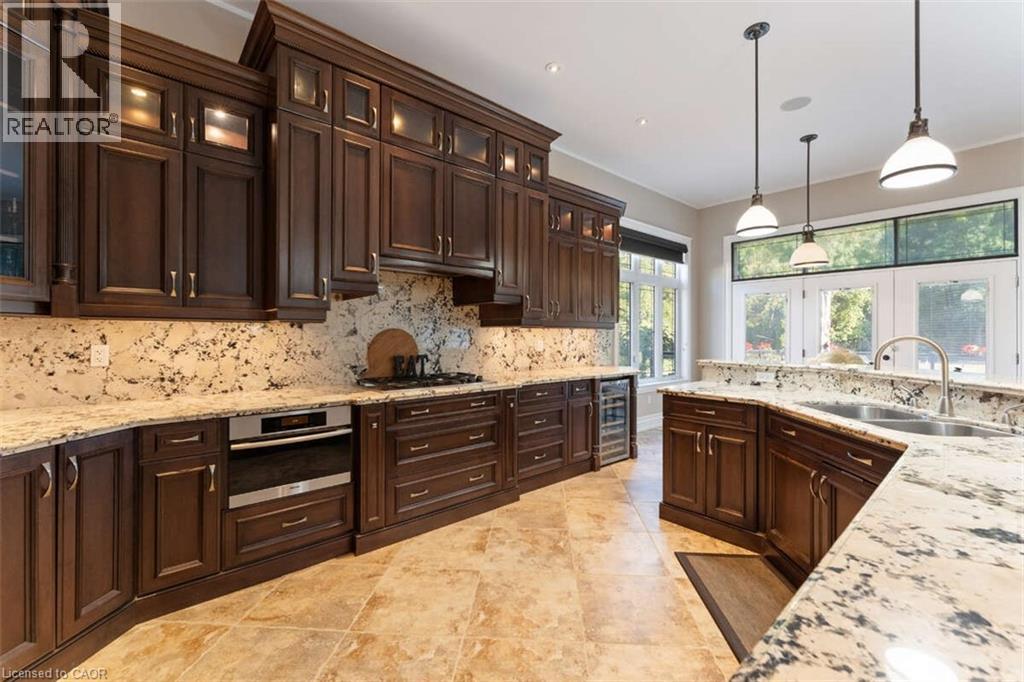 For more info on this property, please click the Brochure button. This custom-built multi-generational luxury home offers the perfect blend of city living and cottage-like tranquility, backing directly onto the escarpment for unparalleled privacy and natural beauty. With a spacious 3-car garage and room for up to 9 additional vehicles in the driveway, its ideal for large families or entertaining guests. The grade-level separate entrance leads to a beautifully finished lower level with in-law suite potential, a private terrace and radiant in-floor heating throughout. Upstairs, the home features coffered ceiling in the primary bedroom, dining room, and a versatile room that can serve as a fourth bedroom or home office. Designed with entertaining in mind, the open-concept luxury kitchen flows seamlessly into the vaulted-ceiling family room, filled with natural light from large windows. The kitchen boasts high-end appliances including a double oven, Dacor gas cooktop, Miele steam oven, garburator, dishwasher and wine cooler. A walk-in pantry with plumbing rough-in offers potential for a second sink. Outside, the premium -sized lot is a blank canvas, ready for your dream oasis to come to life. Located just 45 minutes from both Toronto and Niagara Falls, this exceptional property is close to a new GO Station, shopping, wineries, walking trails, a marina, beach, water park and vibrant waterfront dining. Families will appreciate nearby Catholic, Public, and French Immersion schools, along with two high schools and a college focused on skilled trades and apprenticeships. This home truly combines luxury, location, and lifestyle. (id:64974)