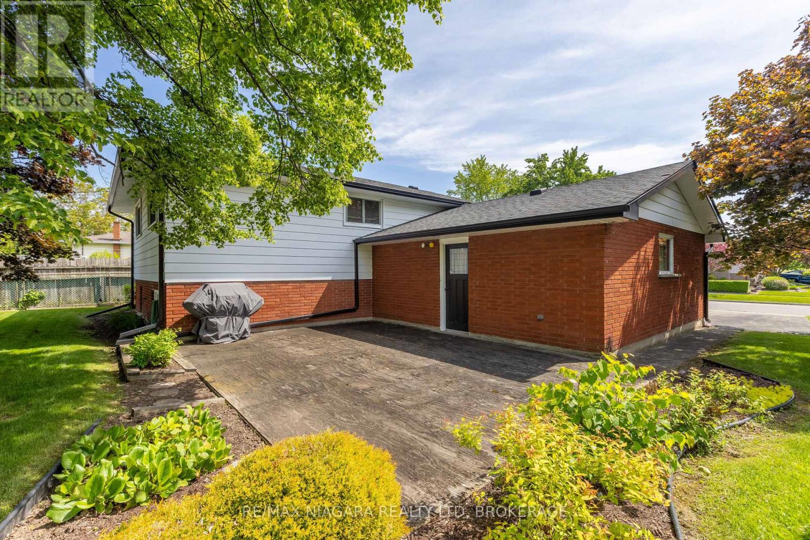 Well-maintained raised bungalow on a large, mature lot in a quiet, family-friendly neighbourhood. This solid 3-bedroom, 2-bath home offers quality craftsmanship and timeless appeal. The main level features gleaming hardwood floors and a spacious eat-in kitchen with solid oak cabinetry.The finished lower level provides additional living space with a large recreation room, cozy gas fireplace, built-in wet bar, and a 3-piece bath-ideal for entertaining or extended family. A separate entrance offers excellent potential for an in-law suite or future rental income. Situated on a peaceful crescent close to schools, parks, shopping, and Niagara College. A place you can truly grow into-whether you're starting out or planning to make it your forever home. (id:64974)