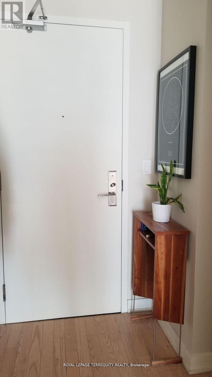 Rent-Controlled Unit. Spacious 2-bedroom, 2 full bathroom condo in the heart of downtown Toronto with parking included. Bright south-facing exposure fills the suite with natural light. Generous open-concept living and dining area with 9' smooth ceilings and real hardwood flooring throughout. Functional and unique layout with excellent bedroom separation. Primary bedroom with a very large walk-in closet provides ample storage. The second bedroom opens to the hallway rather than the kitchen (unlike other units). Please note the second bedroom does not have a window. Located between the vibrant Entertainment and Financial Districts with easy access to top dining, shopping, theatres, and transit. Building amenities include a 24/7 concierge, fully equipped gym, hot tub, outdoor pool, rooftop patio, lounge, and party room. (id:64974)