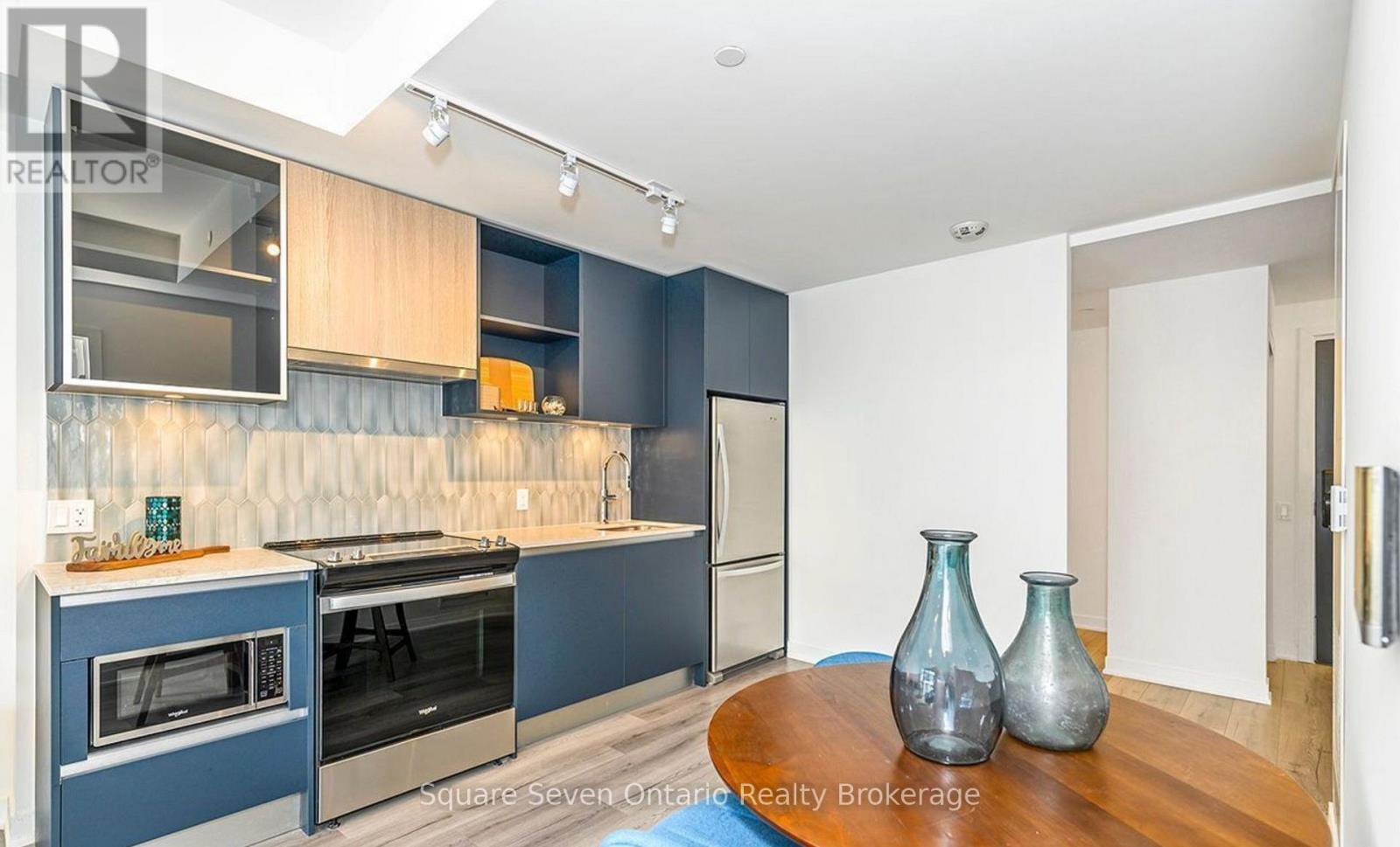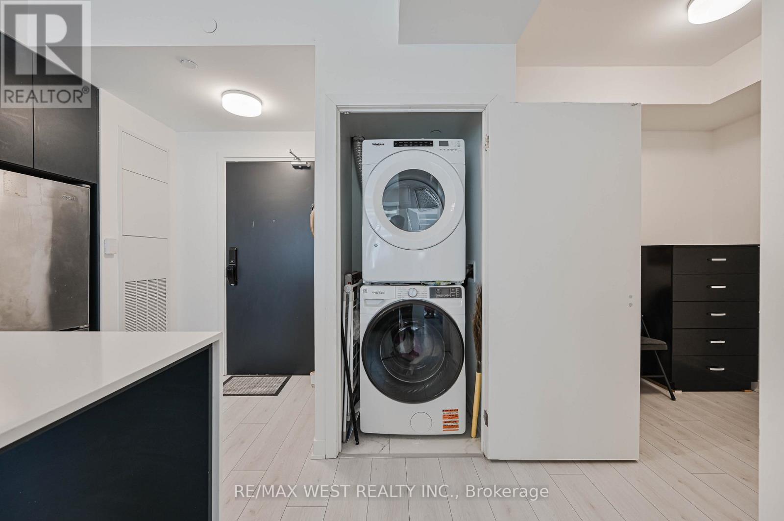 Welcome to Distrikt Trailside 2! This bright 1+Den features smooth ceilings, large W/I master closet with window, beautiful terrace, Den (can be used as 2nd bdrm). AI smart community system features digital door locks & in suite touch screen wall pad. Spectacular indoor and outdoor amenities with 24hr concierge, on site property management office and a convenient parcel storage system and mail room, a pet washing station and a double height fitness studio equipped with state of the art weights and universal cardio equipment, ample indoor and outdoor spaces to do yoga and pilates. 6th floor features and extensive residents amenity space with a chef kitchen, private dining room, a separate lounge with fireplace and a games room. The beauty, uniqueness and quality of this building is a must see! Building amenities feature 24 hour concierge, fitness center, party room with billiards and outdoor BBQ areas. Bell Fibre internet included. (id:64974)