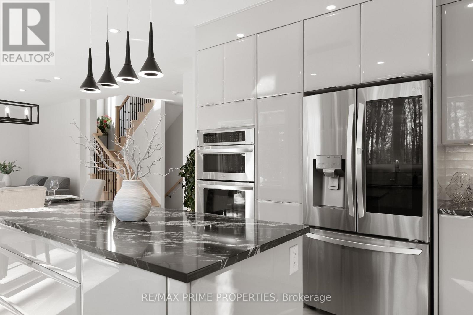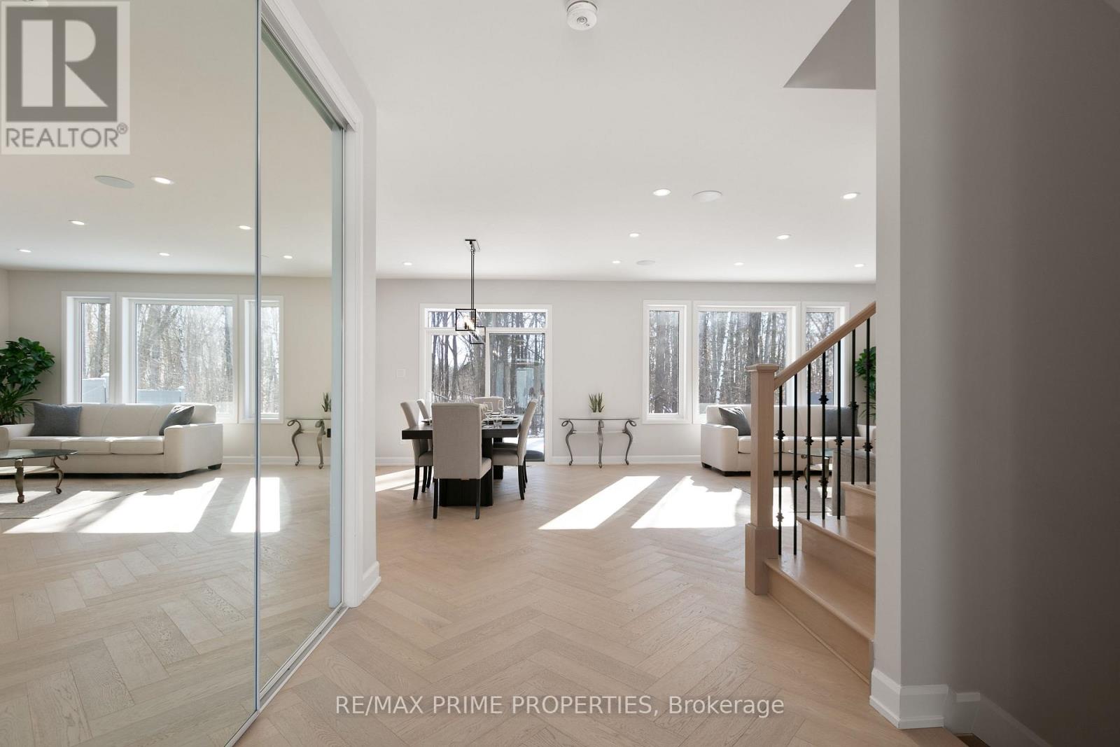 Welcome to 820 Mercier Crescent in the desirable Chapel Hill South community of Ottawa. Backing directly onto peaceful greenspace with no rear neighbors, this home offers rare privacy in a prime family-friendly location. The curb appeal stands out with a fully interlocked driveway featuring built-in accent lighting and professionally finished landscaping in both the front and backyard. The backyard is designed as a private retreat, complete with integrated lighting, custom water features, and a gas line for your BBQ - perfect for entertaining or relaxing evenings outdoors. Inside, Kentwood Cascade brushed white oak hardwood in a striking herringbone pattern flows throughout the main floor, up both staircases, and along the upper hallway. Wrought iron spindles with oak bannisters add warmth and elegance, while pot lights and built-in ceiling speakers enhance the ambiance. The chef's kitchen features melamine VT cabinetry, granite countertops, a rectangular under-mount sink, wall oven, and an impressive six-burner gas stove with chimney-style hood fan, ideal for cooking and hosting. Hardwood continues up the staircase and throughout the upper hallway on the second level, where you'll find four spacious bedrooms. The primary suite backs onto beautiful woods and includes a private ensuite. A well-appointed main bathroom serves the additional bedrooms, and the laundry room includes upgraded cabinetry for added functionality. The fully finished basement provides additional living space with a full bathroom and cozy fireplace, perfect for a media room, games area, or guest retreat. Additional highlights include built-in pantry shelving, custom mudroom storage, a gas dryer, electrical panel surge protector, and a fully insulated garage. A beautifully upgraded home combining privacy, quality finishes, and thoughtful design. (id:64974)
