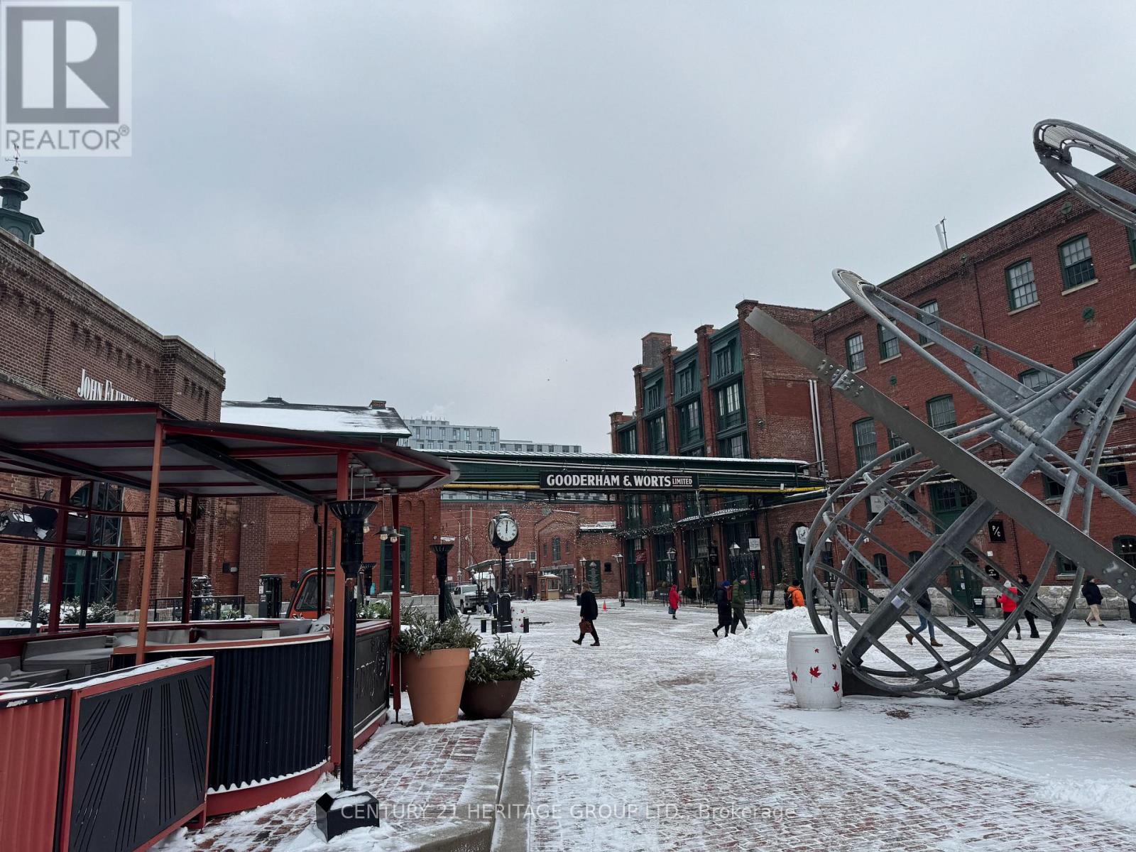 Welcome to The Goode Condos, a brand-new 1 Bedroom + Den suite in the heart of Toronto's iconic Distillery District, a nationally recognized heritage site dating back to the 19th century, known for its preserved red-brick architecture, cobblestone streets, and vibrant arts and cultural scene. This thoughtfully designed unit features 9-ft ceilings, a functional open-concept layout, modern built-in appliances, and floor-to-ceiling windows that fill the space with natural light. Enjoy a stunning view of the CN Tower and Toronto skyline, adding a true downtown feel to your everyday living. The versatile den is ideal for a home office or guest space. One storage locker is included. Residents enjoy premium amenities including 24-hour concierge, outdoor pool & sundeck, fitness studio, co-working lounge, party room, and pet spa. Steps to cafes, award-winning restaurants, art galleries, boutiques, TTC, waterfront trails, and minutes to St. Lawrence Market, Union Station, Gardiner Expressway, and DVP. Experience where historic charm meets modern urban living. (id:64974)