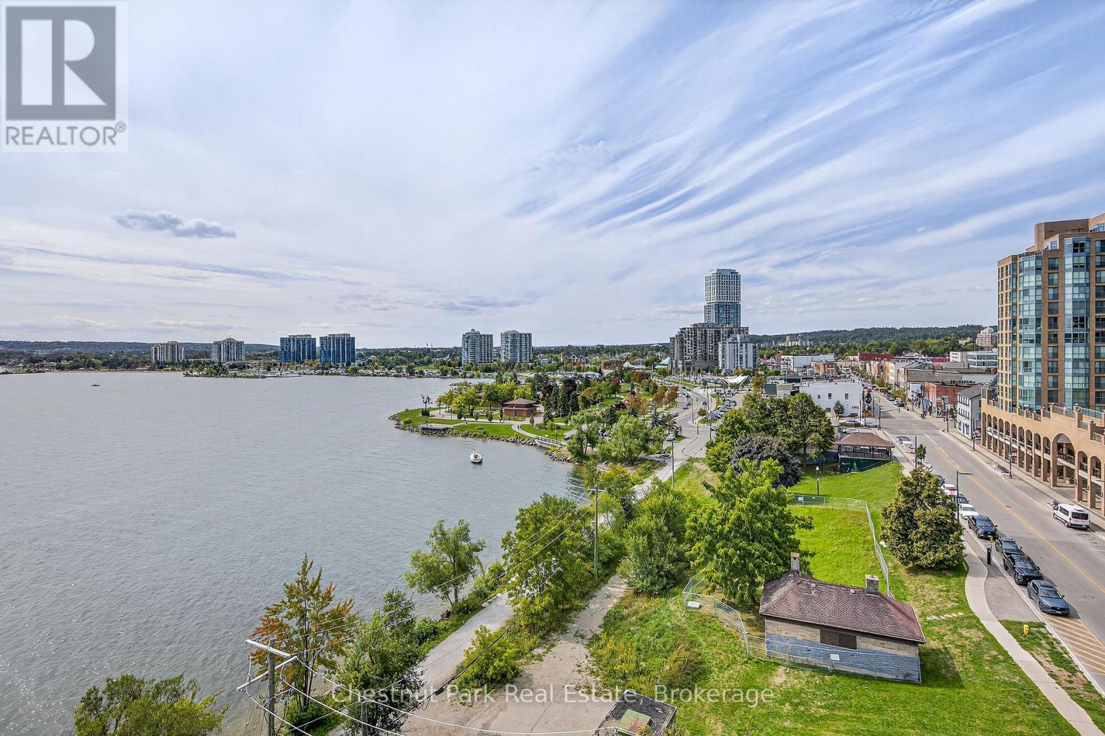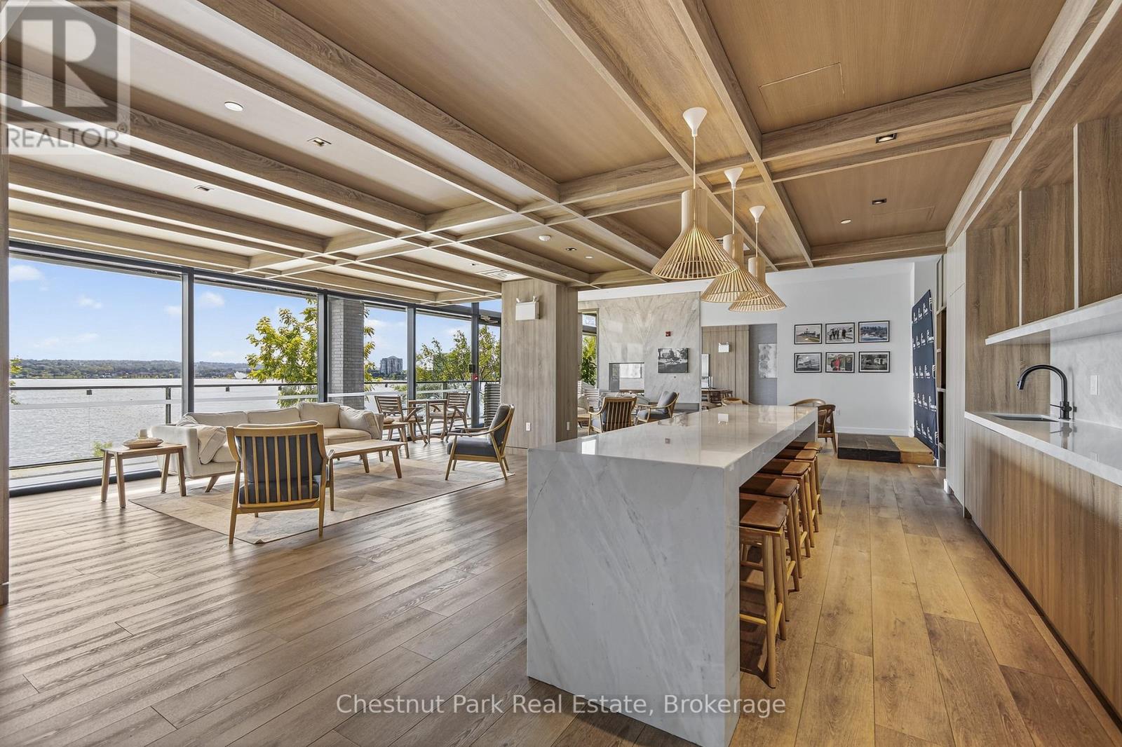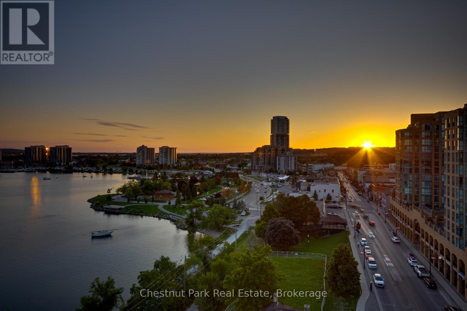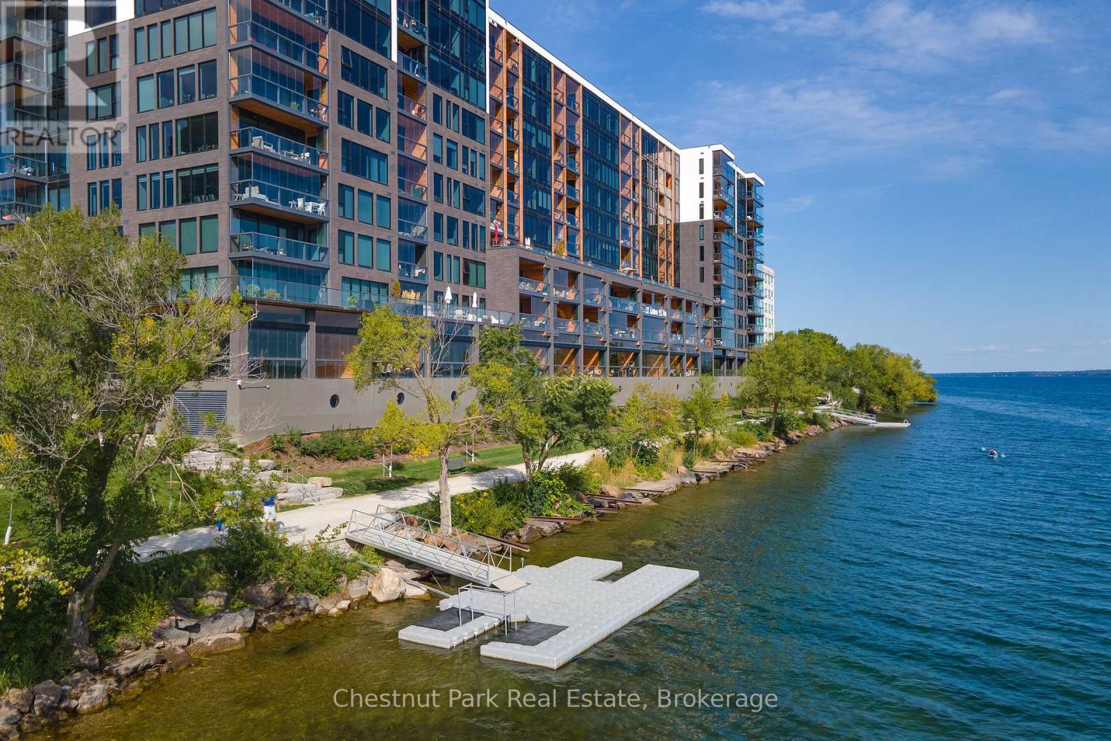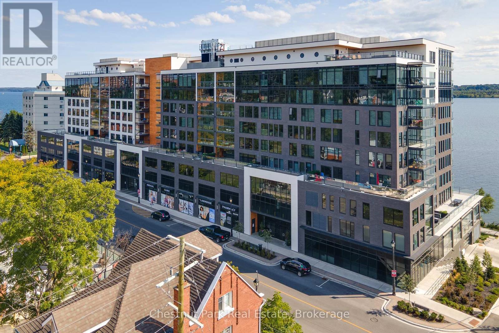 The Lakhouse Lifestyle beckons at Barrie's premium downtown lakefront residence. More than just a place to call home, Lakhouse is where beautiful contemporary design & luxurious resort inspired living bring a friendly community together to improve your quality of life. Featuring 2 bdrms, large den & 2.5 baths, at 1726 sq ft, this expansive corner suite is all about clean lines, a light & airy yet cozy vibe & stunning lake & city views being one of the top 3 floors, the only floors w/ floor to ceiling glass. Endlessly interesting, revel in the everchanging blues of Kempenfelt Bay & the twinkling lights of the city skyline. Savour lake breezes & the incredible nightly sunset show from your 113sqft, all season Lumon glass enclosed balcony. Bright living/dining/kitchen space, perfect for relaxing or to entertain family & friends in your sleek Scandi inspired kitchen w/ Caesarstone countertops, induction cooktop & pot drawer upgrades. Zenlike primary suite w/ 2 full walls of glass, dazzling water/city views, dual closets, spa like ensuite w/ glass shower, vanity/makeup counter. Roomy 2nd bdrm w/views, 2 closets & ensuite w/ soaker tub. Make the den your own as an office/home entertainment rm or convert to a 3rd bdrm. Plentiful storage throughout + same floor storage locker. Over $25K in upgrades including PAX closet inserts & R/C window blinds. Embrace the outstanding amenities: fabulous fitness/gym/yoga rm; gorgeous spa area w/ hot tub/steam rm/sauna overlooking the lake; swim docks to enjoy the clear waters of Lk Simcoe; patio; massive east & west rooftop decks w/ BBQ areas, loungers, gas f/p's, rooftop kitchen; guest suites; petwash station, organized socials. Enjoy a stunning party rm & chef's kitchen to connect w/ Lakhouse friends or host an upscale gathering. 1 parking spot included (2nd spot available for purchase @ $50K if needed). Paddle the bay, walk/bike the North Shore trail, stroll to amazing dining/park/beach. Life is good & the living is easy at Lakhouse (id:64974)
