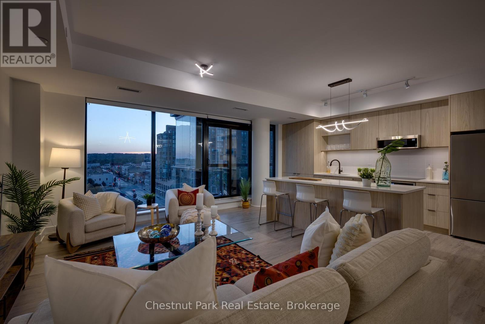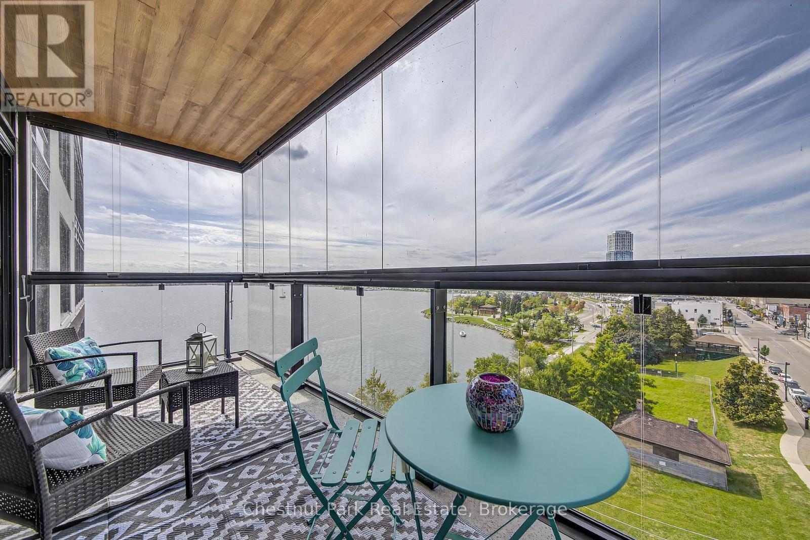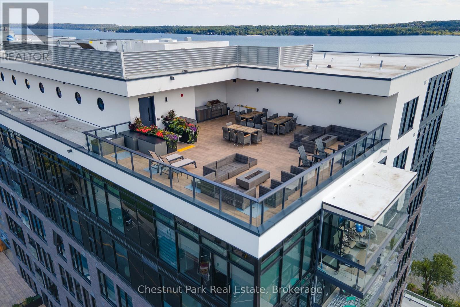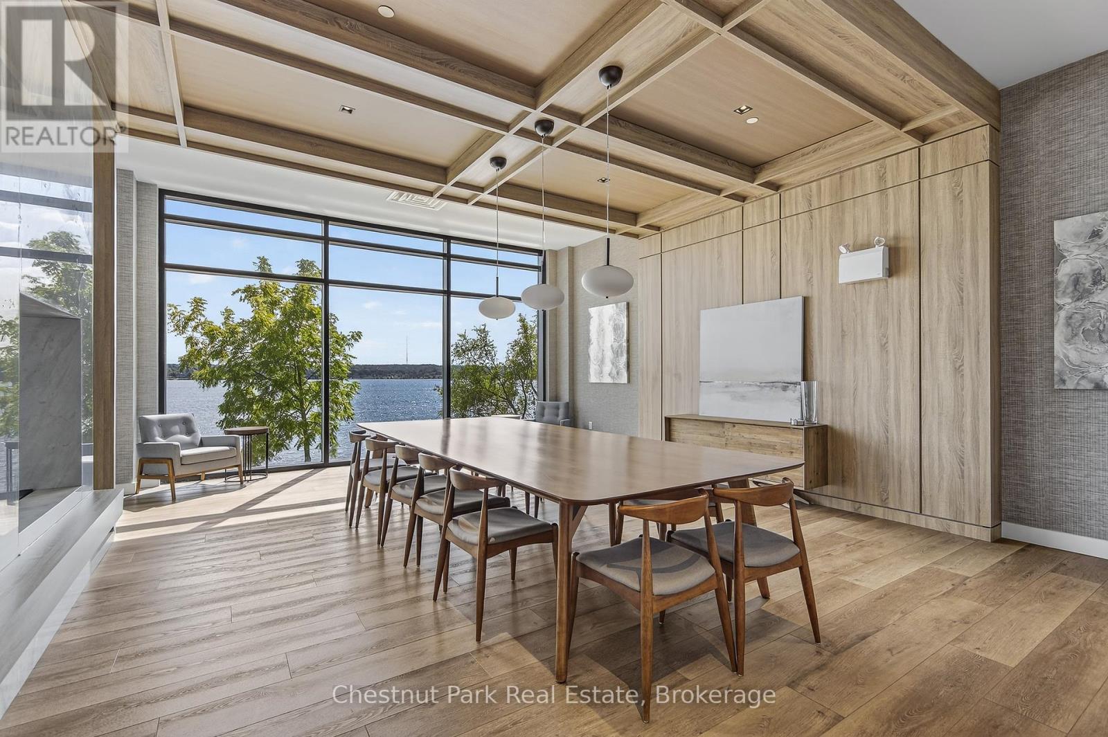 The Lakhouse Lifestyle beckons at Barrie's premium downtown lakefront residence. More than just a place to call home, Lakhouse is where beautiful contemporary design & luxurious resort inspired living bring a friendly community together to improve your quality of life. Featuring 2 bdrms, large den & 2.5 baths, at 1726 sq ft, this expansive corner suite is all about clean lines, a light & airy yet cozy vibe & stunning lake & city views being one of the top 3 floors, the only floors w/ floor to ceiling glass. Endlessly interesting, revel in the everchanging blues of Kempenfelt Bay & the twinkling lights of the city skyline. Savour lake breezes & the incredible nightly sunset show from your 113sqft, all season Lumon glass enclosed balcony. Bright living/dining/kitchen space, perfect for relaxing or to entertain family & friends in your sleek Scandi inspired kitchen w/ Caesarstone countertops, induction cooktop & pot drawer upgrades. Zenlike primary suite w/ 2 full walls of glass, dazzling water/city views, dual closets, spa like ensuite w/ glass shower, vanity/makeup counter. Roomy 2nd bdrm w/views, 2 closets & ensuite w/ soaker tub. Make the den your own as an office/home entertainment rm or convert to a 3rd bdrm. Plentiful storage throughout + same floor storage locker. Over $25K in upgrades including PAX closet inserts & R/C window blinds. Embrace the outstanding amenities: fabulous fitness/gym/yoga rm; gorgeous spa area w/ hot tub/steam rm/sauna overlooking the lake; swim docks to enjoy the clear waters of Lk Simcoe; patio; massive east & west rooftop decks w/ BBQ areas, loungers, gas f/p's, rooftop kitchen; guest suites; petwash station, organized socials. Enjoy a stunning party rm & chef's kitchen to connect w/ Lakhouse friends or host an upscale gathering. 1 parking spot included (2nd spot available for purchase @ $50K if needed). Paddle the bay, walk/bike the North Shore trail, stroll to amazing dining/park/beach. Life is good & the living is easy at Lakhouse (id:64974)