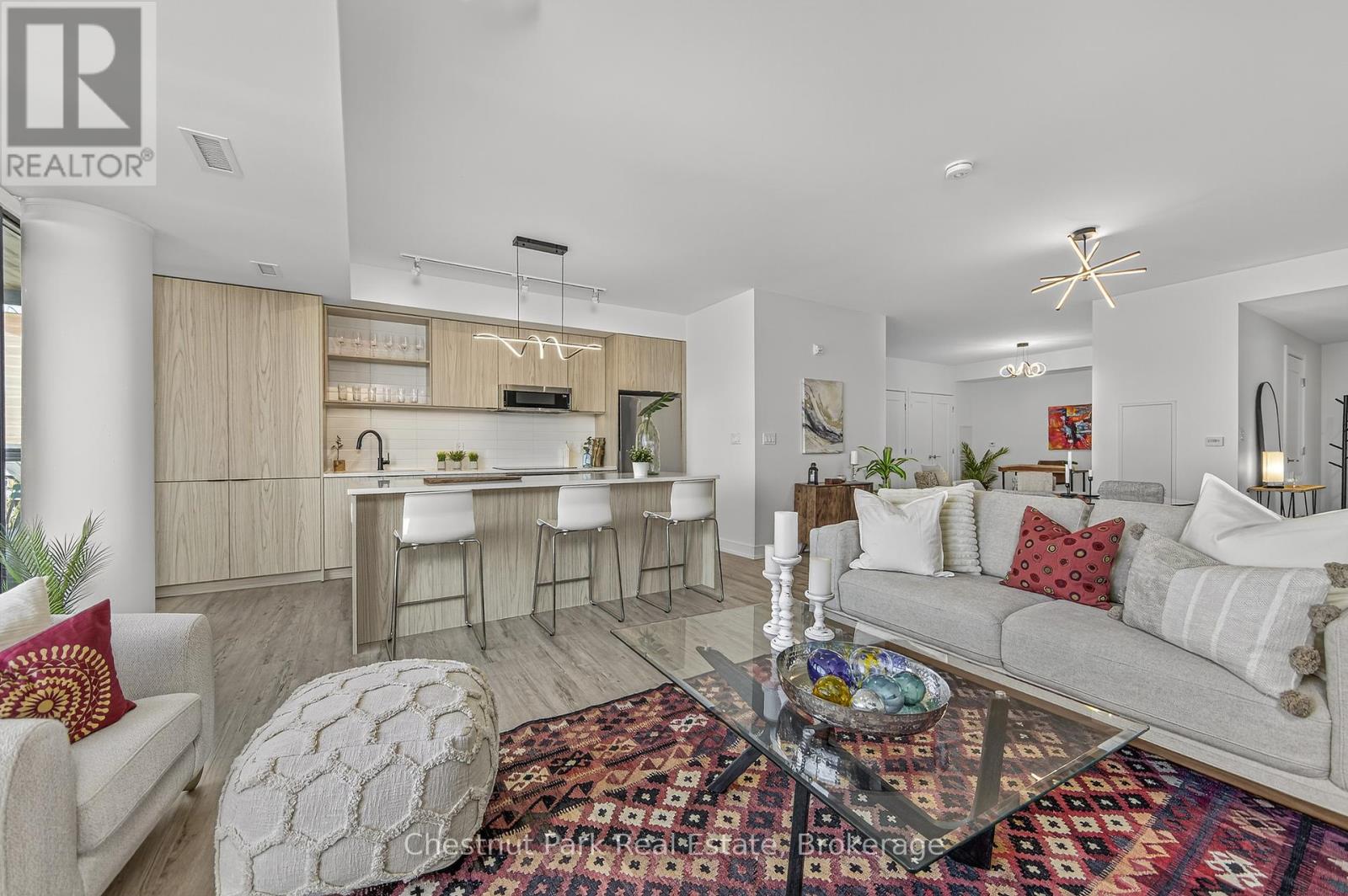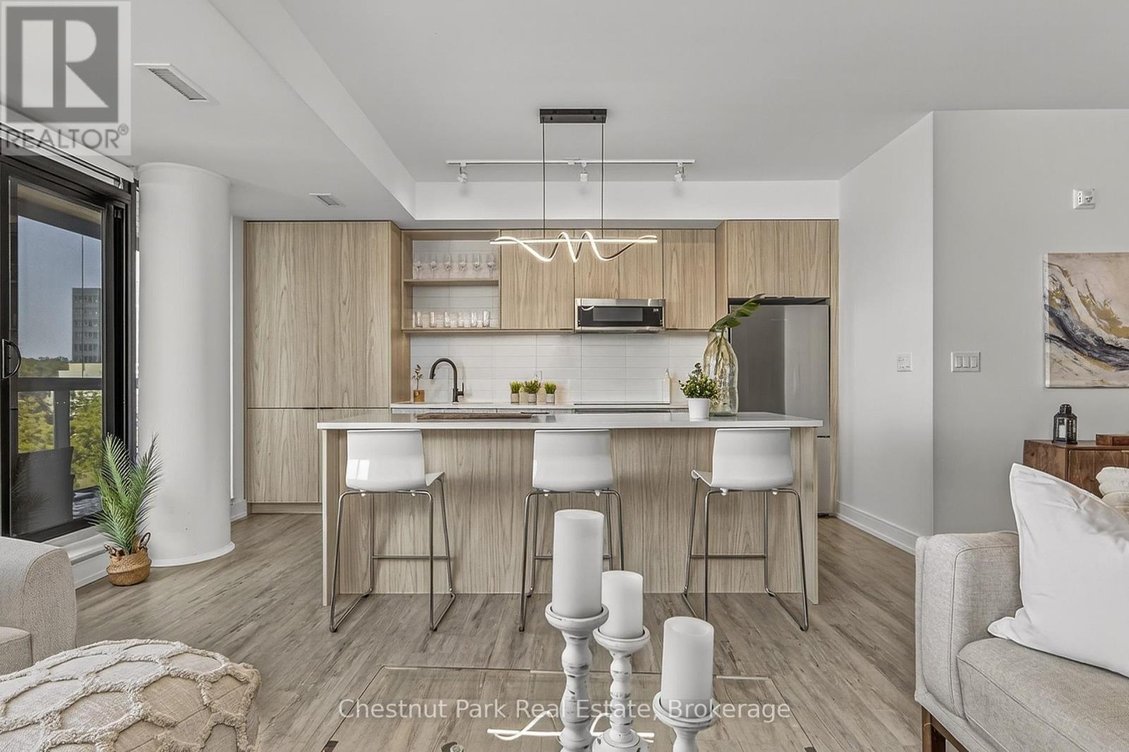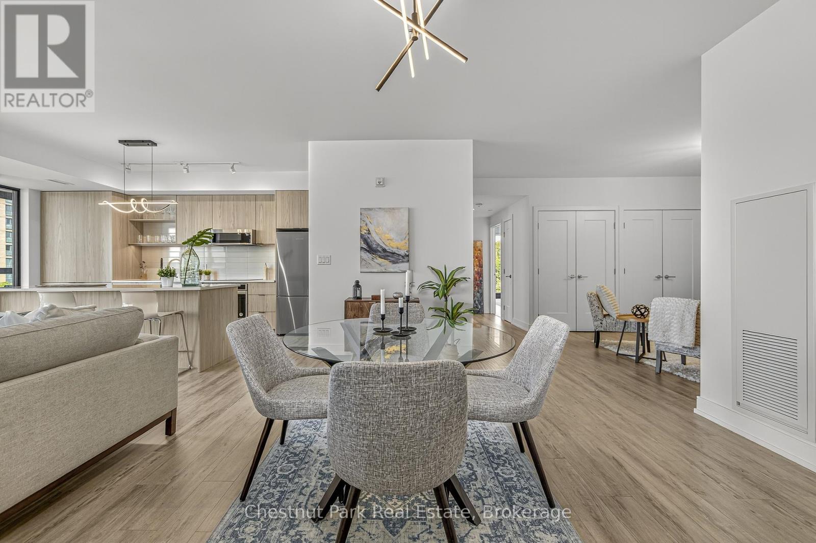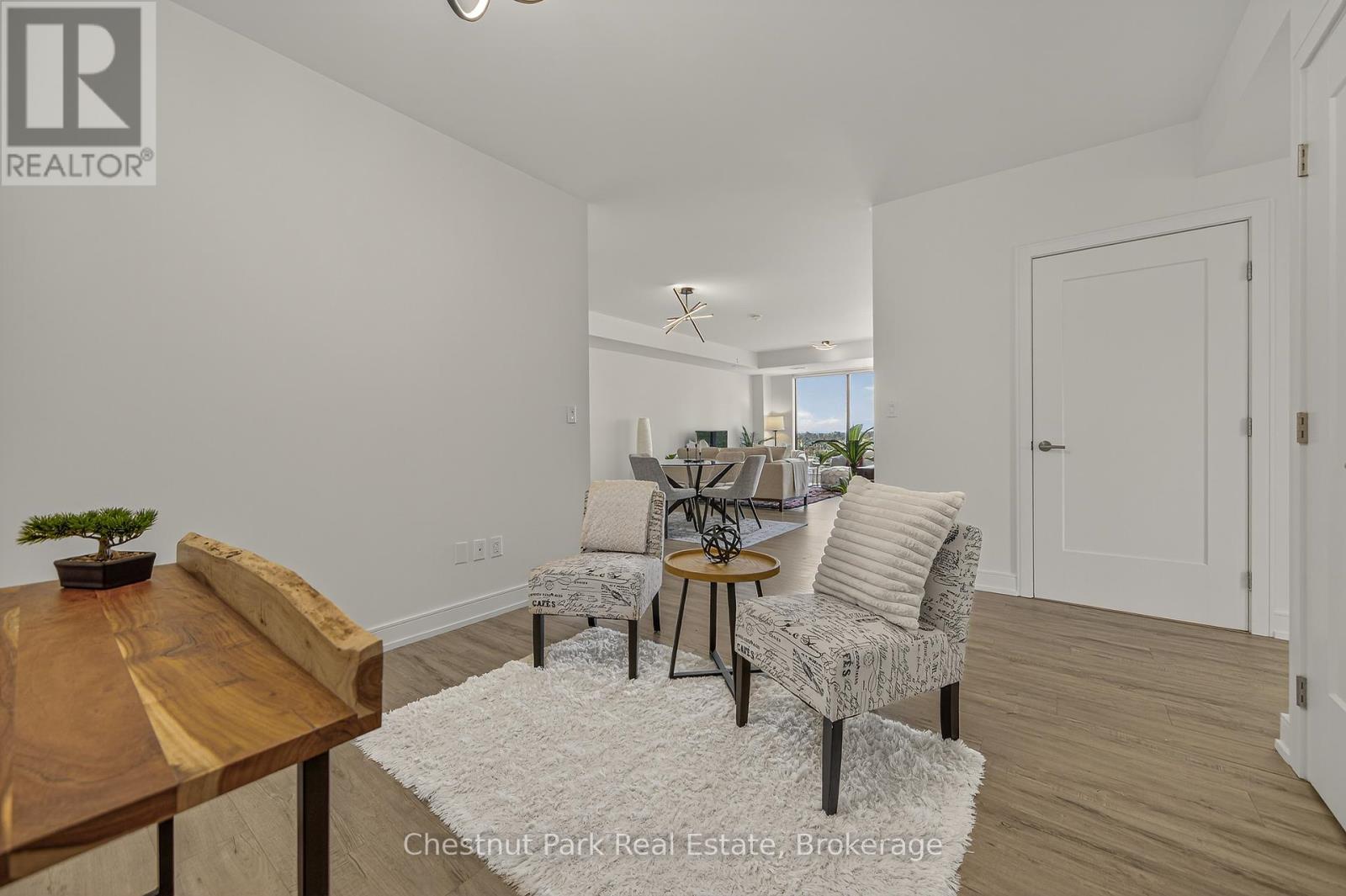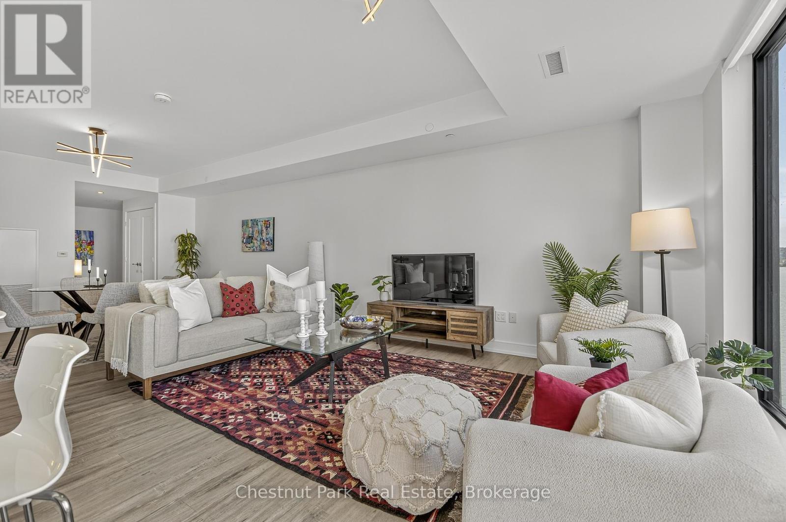 The Lakhouse Lifestyle beckons at Barrie's premium downtown lakefront residence. More than just a place to call home, Lakhouse is where beautiful contemporary design & luxurious resort inspired living bring a friendly community together to improve your quality of life. Featuring 2 bdrms, large den & 2.5 baths, at 1726 sq ft, this expansive corner suite is all about clean lines, a light & airy yet cozy vibe & stunning lake & city views being one of the top 3 floors, the only floors w/ floor to ceiling glass. Endlessly interesting, revel in the everchanging blues of Kempenfelt Bay & the twinkling lights of the city skyline. Savour lake breezes & the incredible nightly sunset show from your 113sqft, all season Lumon glass enclosed balcony. Bright living/dining/kitchen space, perfect for relaxing or to entertain family & friends in your sleek Scandi inspired kitchen w/ Caesarstone countertops, induction cooktop & pot drawer upgrades. Zenlike primary suite w/ 2 full walls of glass, dazzling water/city views, dual closets, spa like ensuite w/ glass shower, vanity/makeup counter. Roomy 2nd bdrm w/views, 2 closets & ensuite w/ soaker tub. Make the den your own as an office/home entertainment rm or convert to a 3rd bdrm. Plentiful storage throughout + same floor storage locker. Over $25K in upgrades including PAX closet inserts & R/C window blinds. Embrace the outstanding amenities: fabulous fitness/gym/yoga rm; gorgeous spa area w/ hot tub/steam rm/sauna overlooking the lake; swim docks to enjoy the clear waters of Lk Simcoe; patio; massive east & west rooftop decks w/ BBQ areas, loungers, gas f/p's, rooftop kitchen; guest suites; petwash station, organized socials. Enjoy a stunning party rm & chef's kitchen to connect w/ Lakhouse friends or host an upscale gathering. 1 parking spot included (2nd spot available for purchase @ $50K if needed). Paddle the bay, walk/bike the North Shore trail, stroll to amazing dining/park/beach. Life is good & the living is easy at Lakhouse (id:64974)