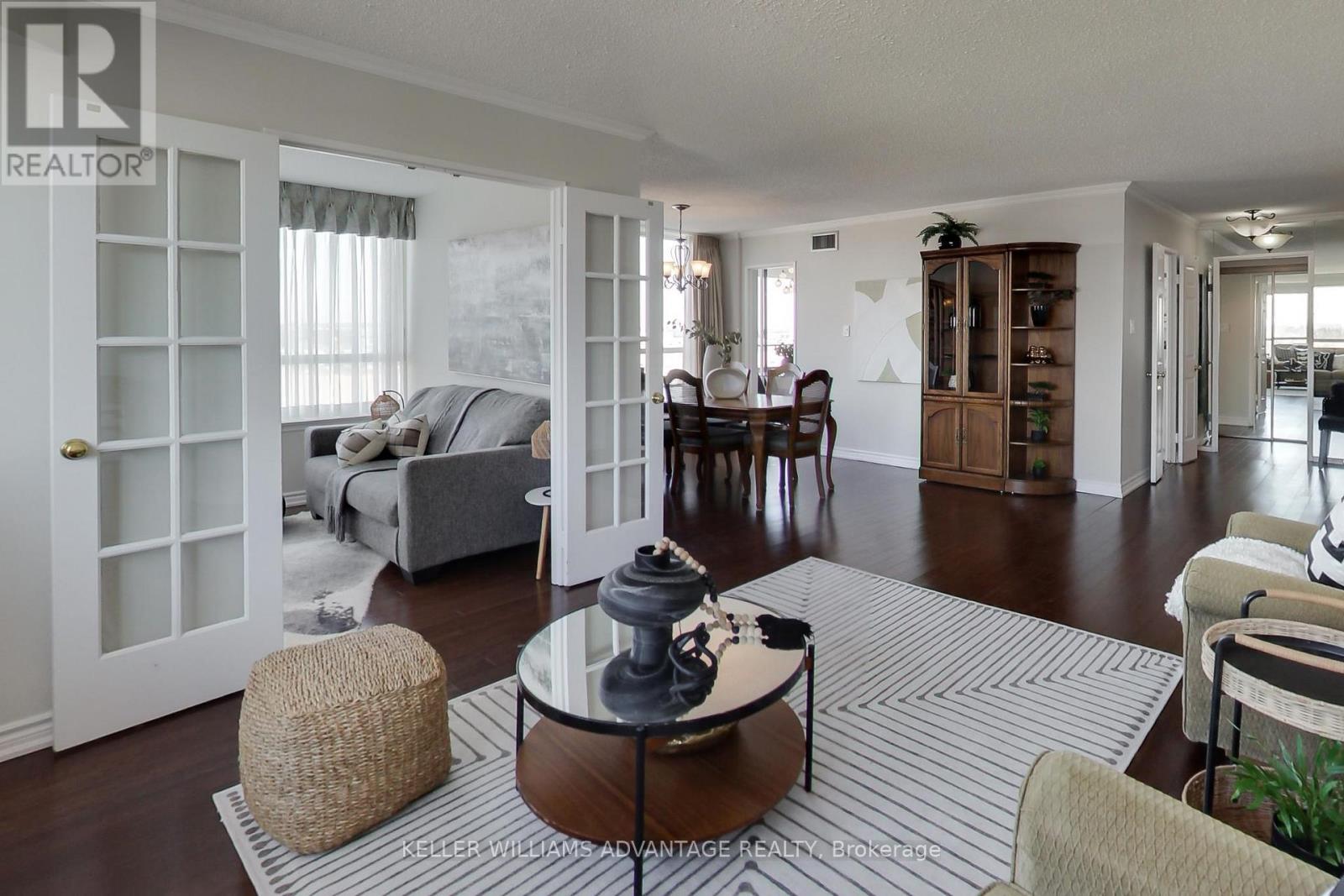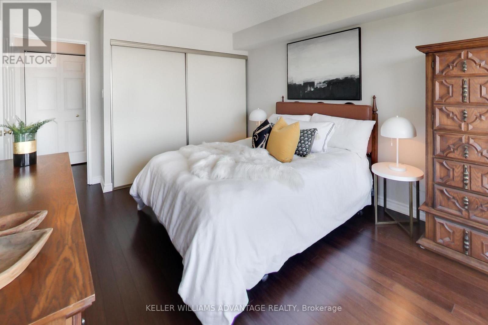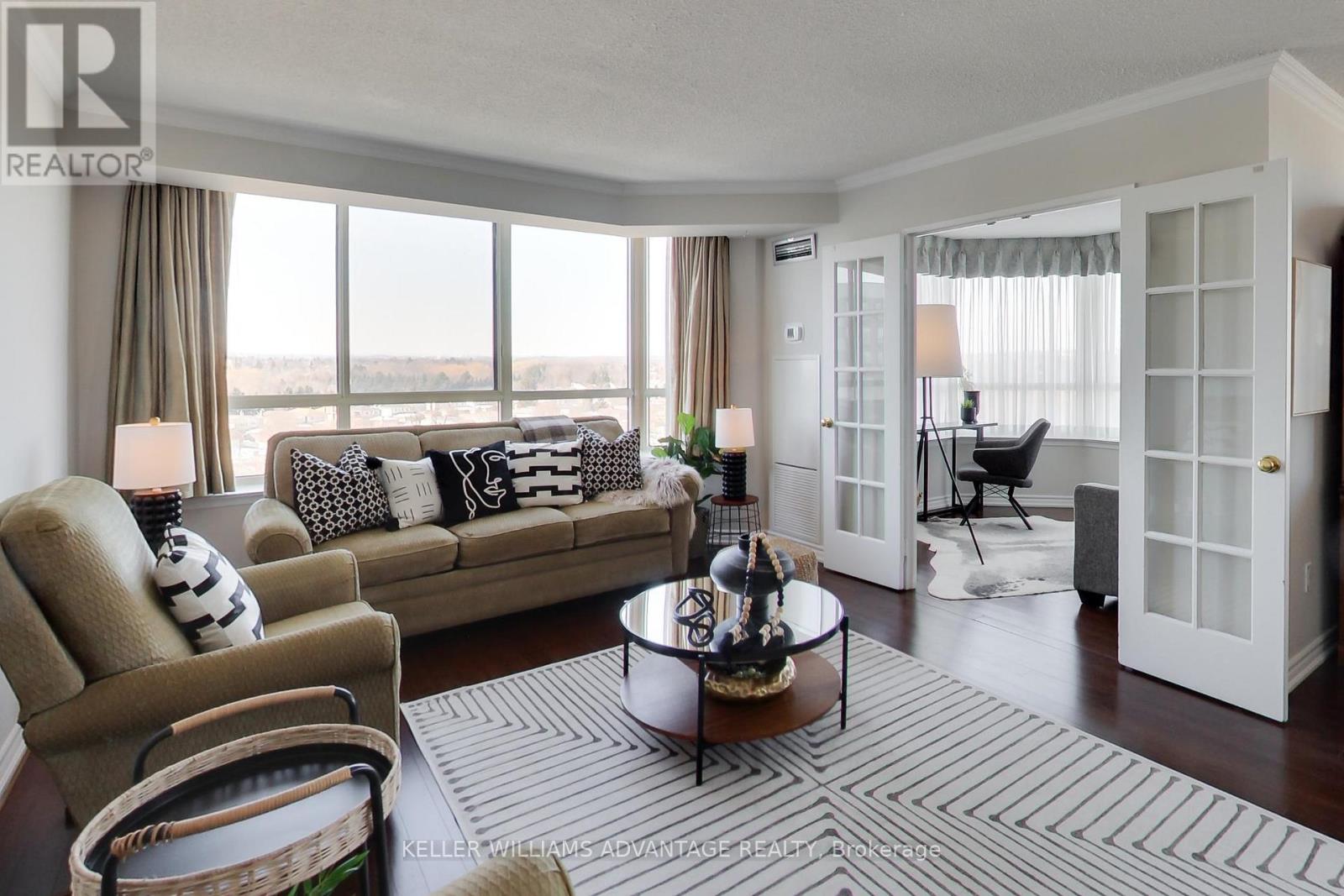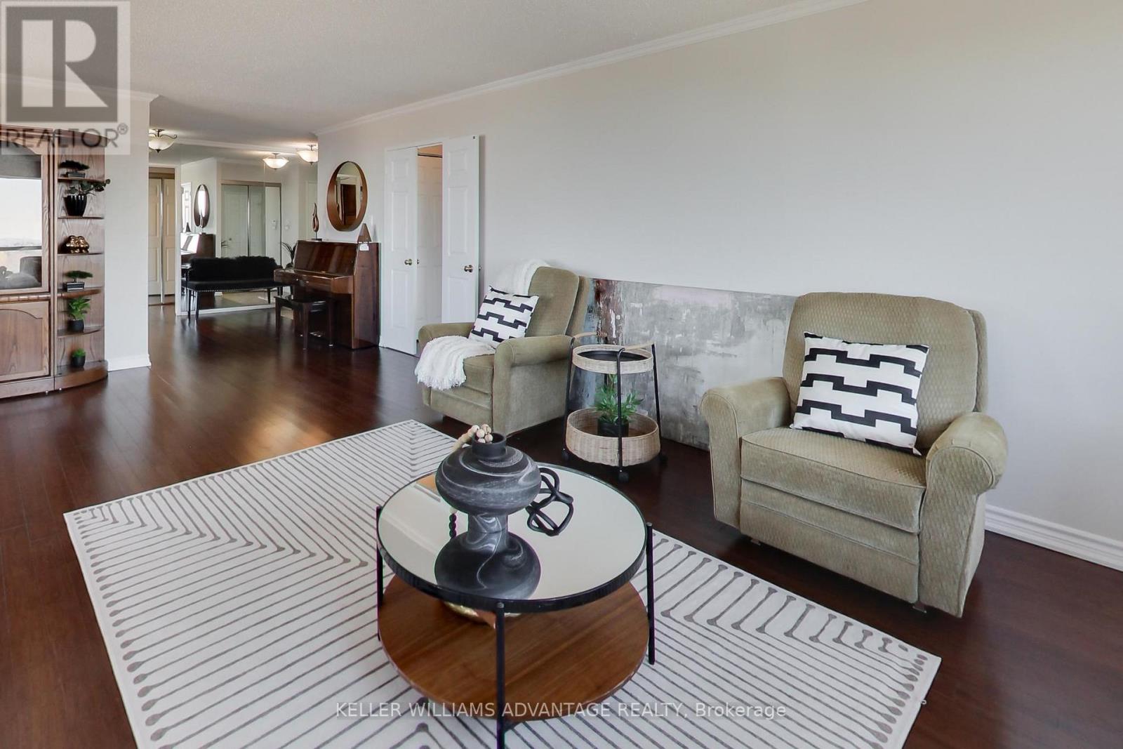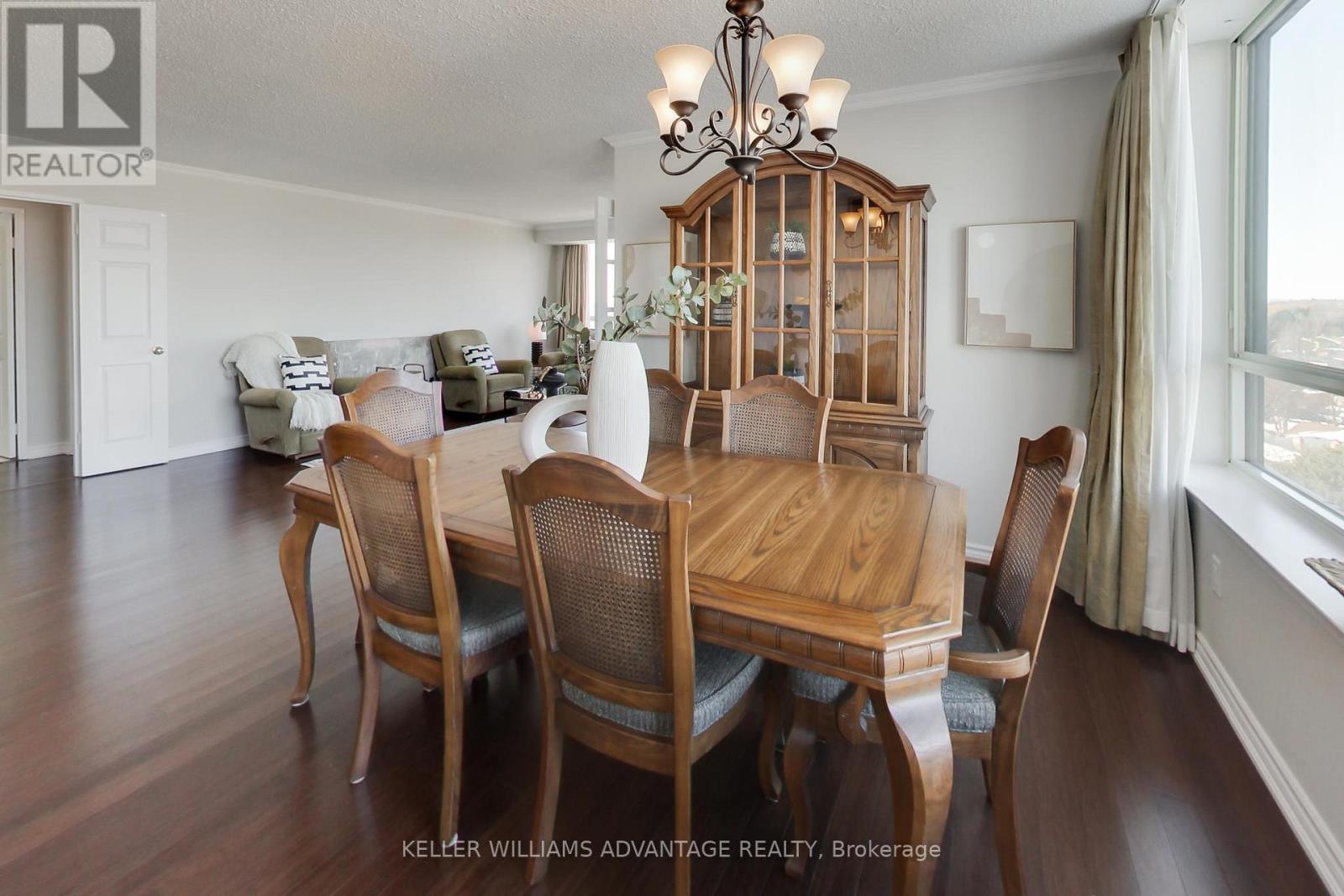Welcome To Tridel's Walden Pond2! Beautiful corner 1530 sq ft suite with clear views. Bright, open, spacious concept. 2 large bedrooms with ample space and privacy. Den was used as a third bedroom. Large kitchen with breakfast area and sliding doors to balcony. Carpet free! Engineered hardwood, has near floor to ceiling windows which floods the suite with year-round natural light. All-inclusive maintenance fees, including Rogers basic cable and Wifi. Has 2 underground parking spots, side-by-side and close to the elevator. The exceptionally managed building has many amenities. 24hr gatehouse security, Full gym, indoor swimming pool, change rooms, billiards room, guest suites, library, tennis courts, and more. Walking distance to Markville Mall, restaurants, parks, trails, ponds, Markville Secondary School, Centennial GO Station, groceries, and more. (id:64974)