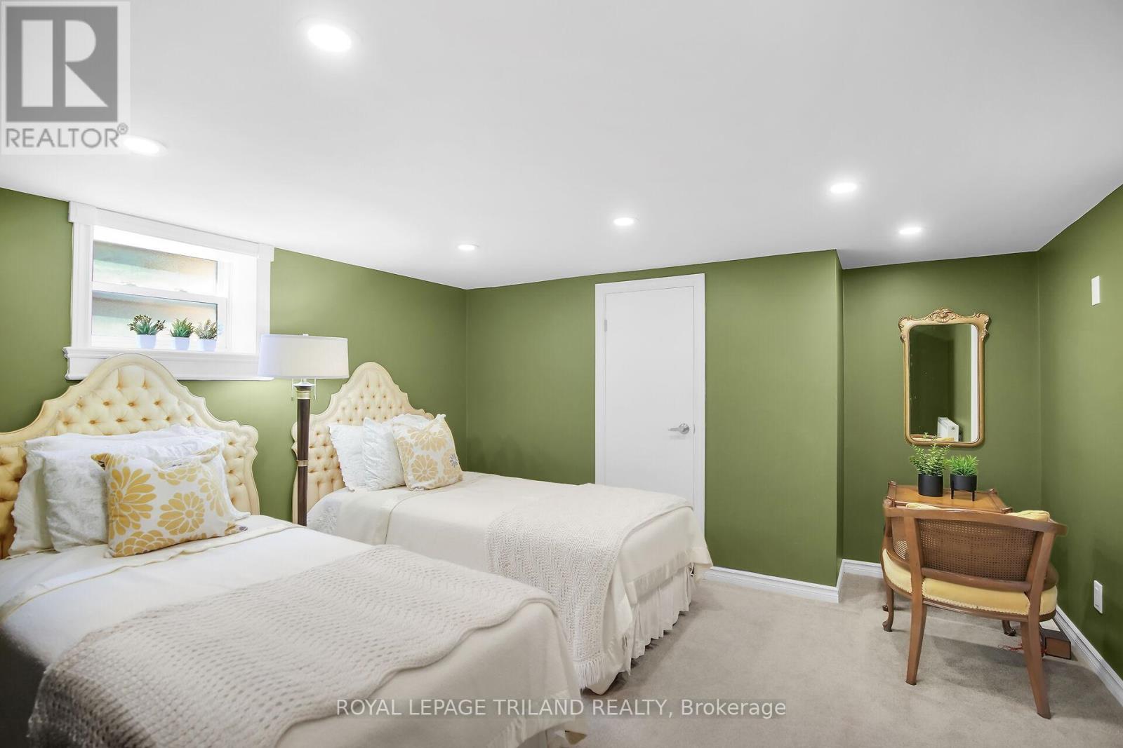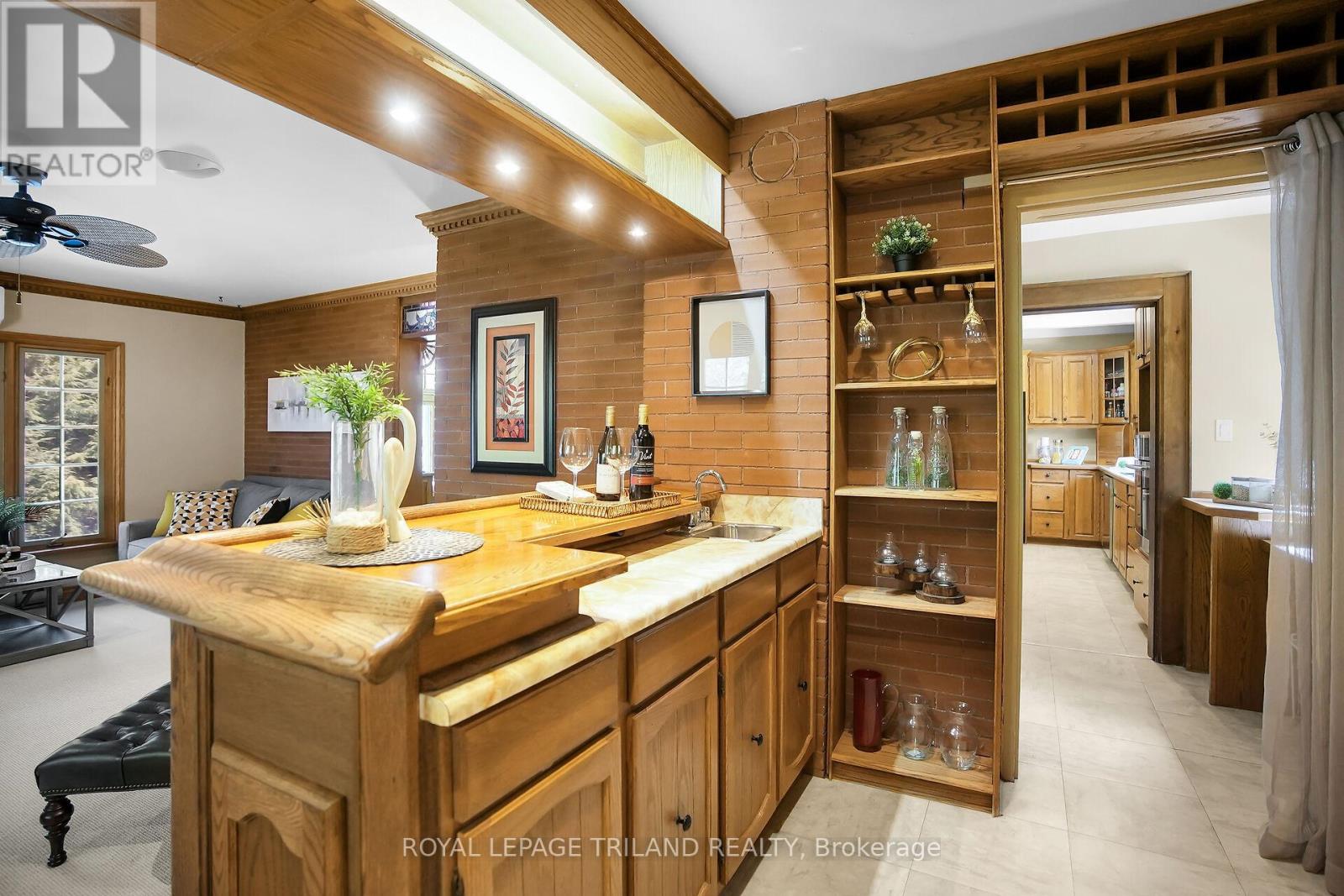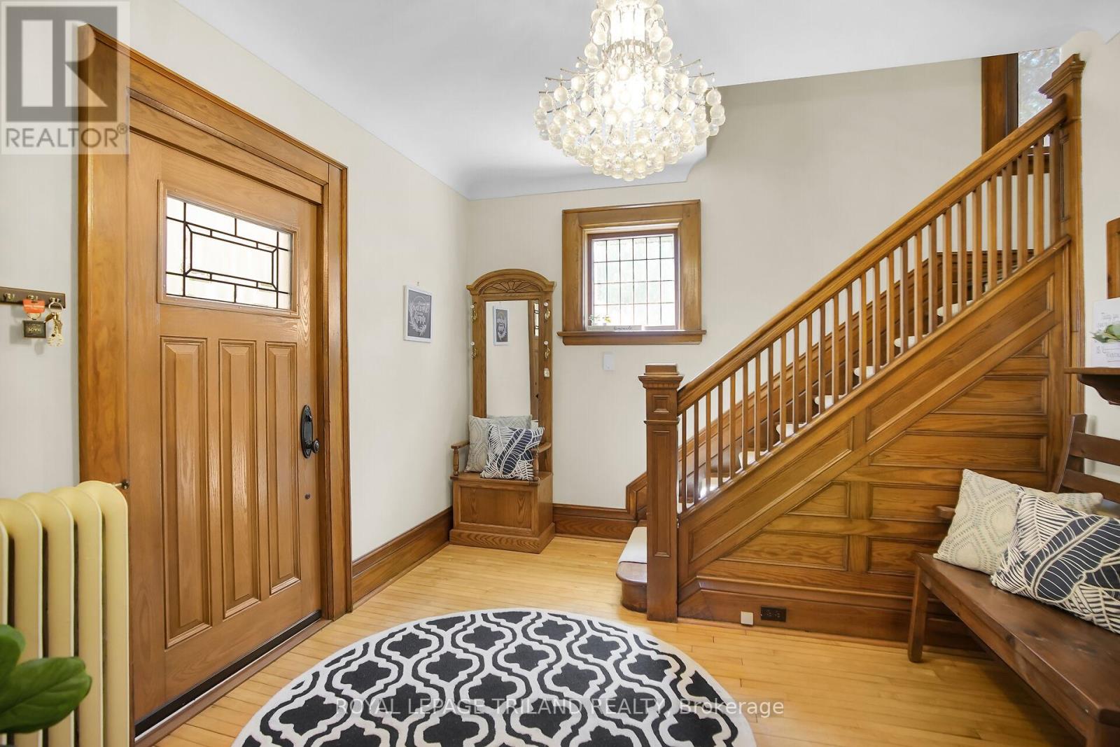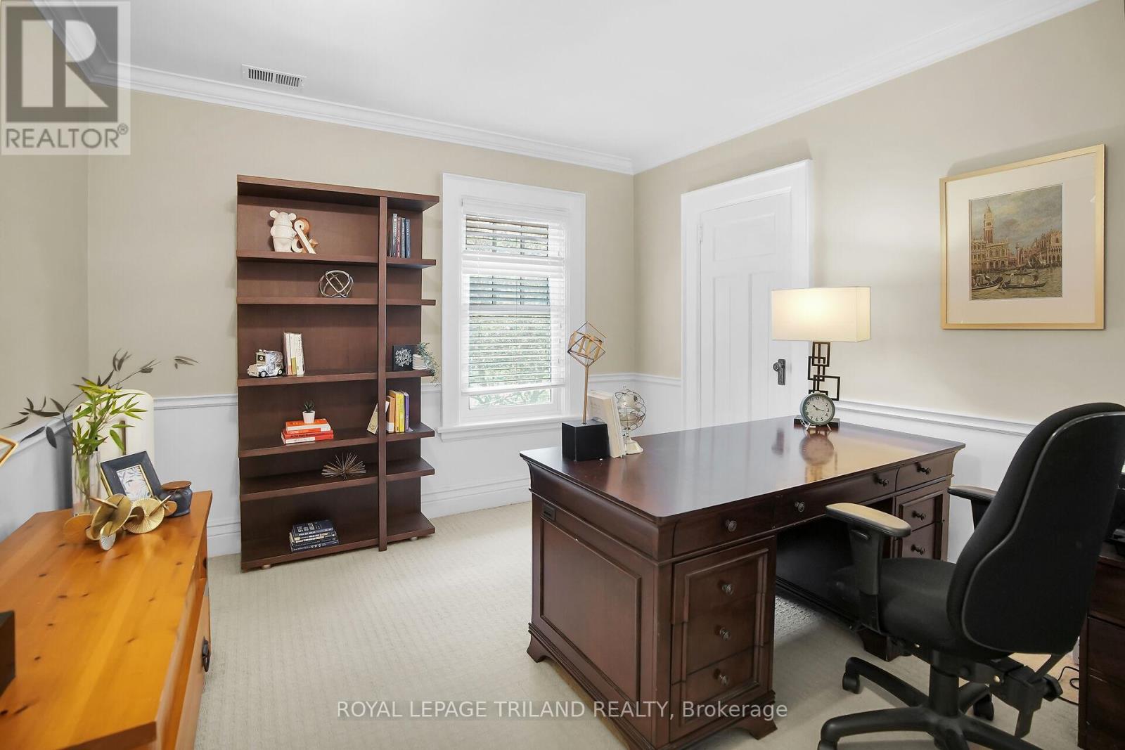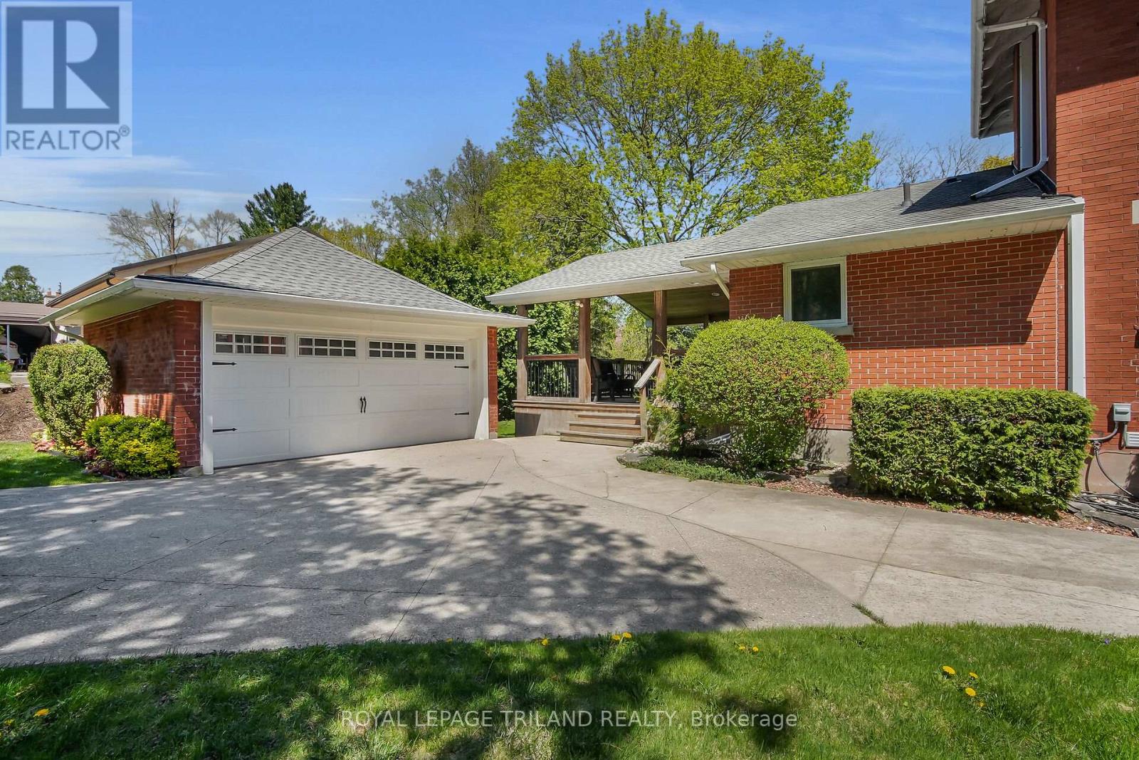 Beautiful Estate sized lot(122ft x 157ft) near Springbank Park, a charming 2.5 storey 4+1 beds, 3 bath home offers timeless charm and exceptional living space in a highly desirable location. Just steps from Thames Valley Golf Course and the pedestrian bridge to Springbank Park, and only a 10-minute drive to downtown London, this property combines serenity with convenience. Inside, you'll find spacious principal rooms with soaring ceilings, abundant natural light from large windows, and rich natural wood trim and doors throughout. The main floor features a cozy family room with a gas fireplace and custom Oak wet bar, perfect for entertaining as well as a convenient laundry room. The kitchen boasts classic Oak cabinetry, a center island with Jenn-Air stove, built-in oven. Upstairs, generous-sized bedrooms provide comfort and privacy, while the third-level loft offers flexible space for a home office, studio, or additional living area. Enjoy the outdoors on the newer covered deck or take a dip in the inviting backyard pool, ideal for relaxing summer days. Windows(2015),New A/C(2022), Pool pump (2025), Basement renovation -1 additional bedroom with full bath(2019), new kitchen faucet(2025), 2nd floor Hallway and stairs (2025) and new dishwasher(2025). This is a rare opportunity to own a well-maintained character home in a premier London location. (id:64974)