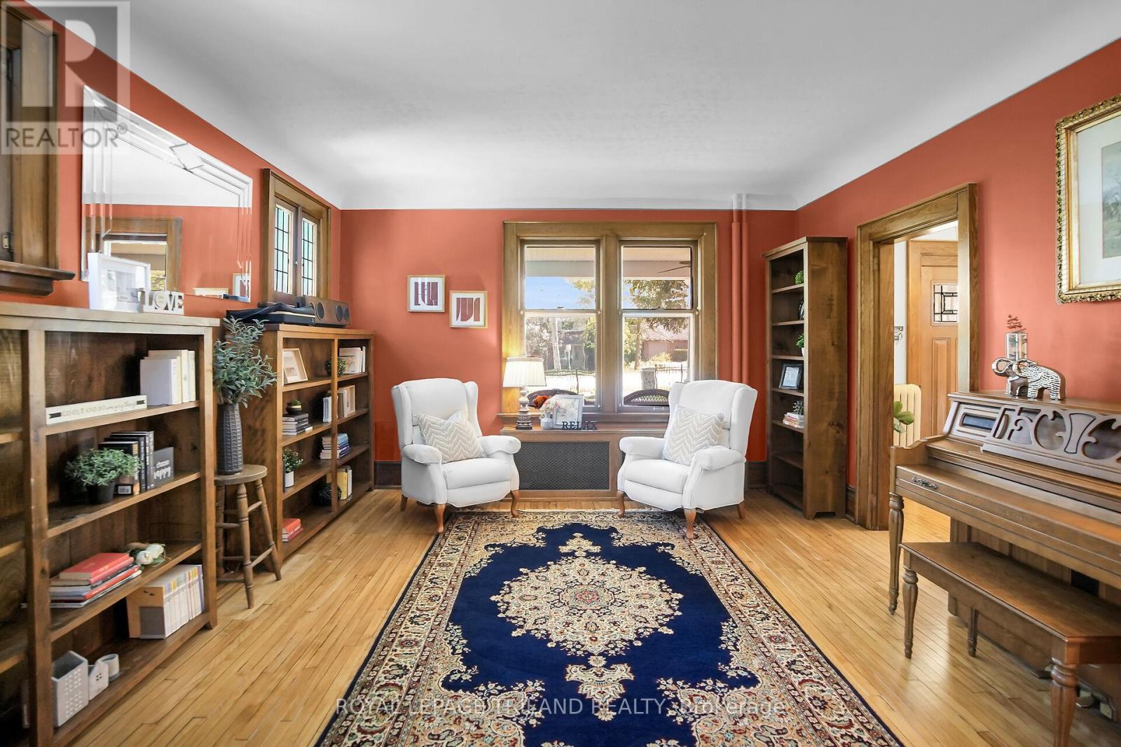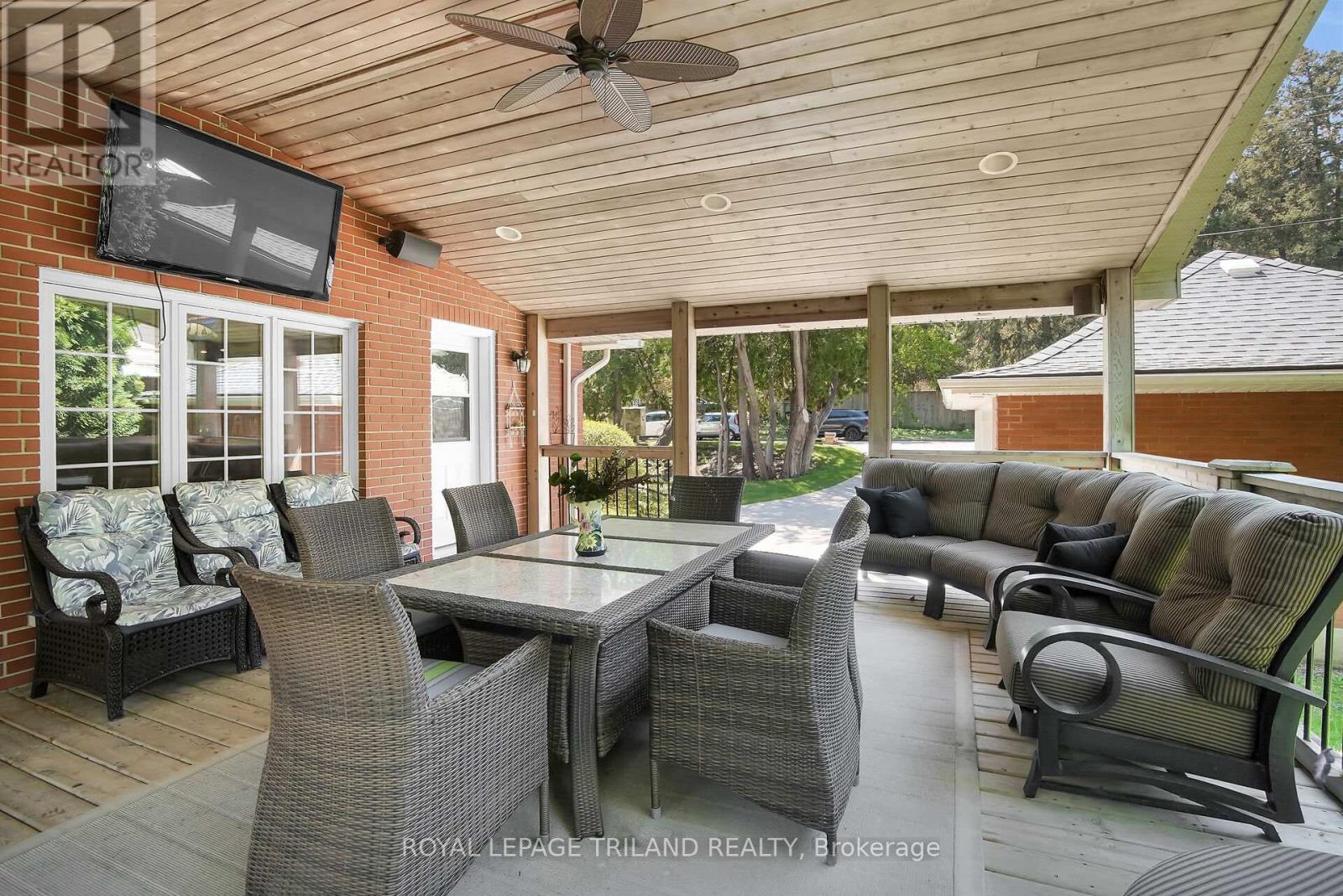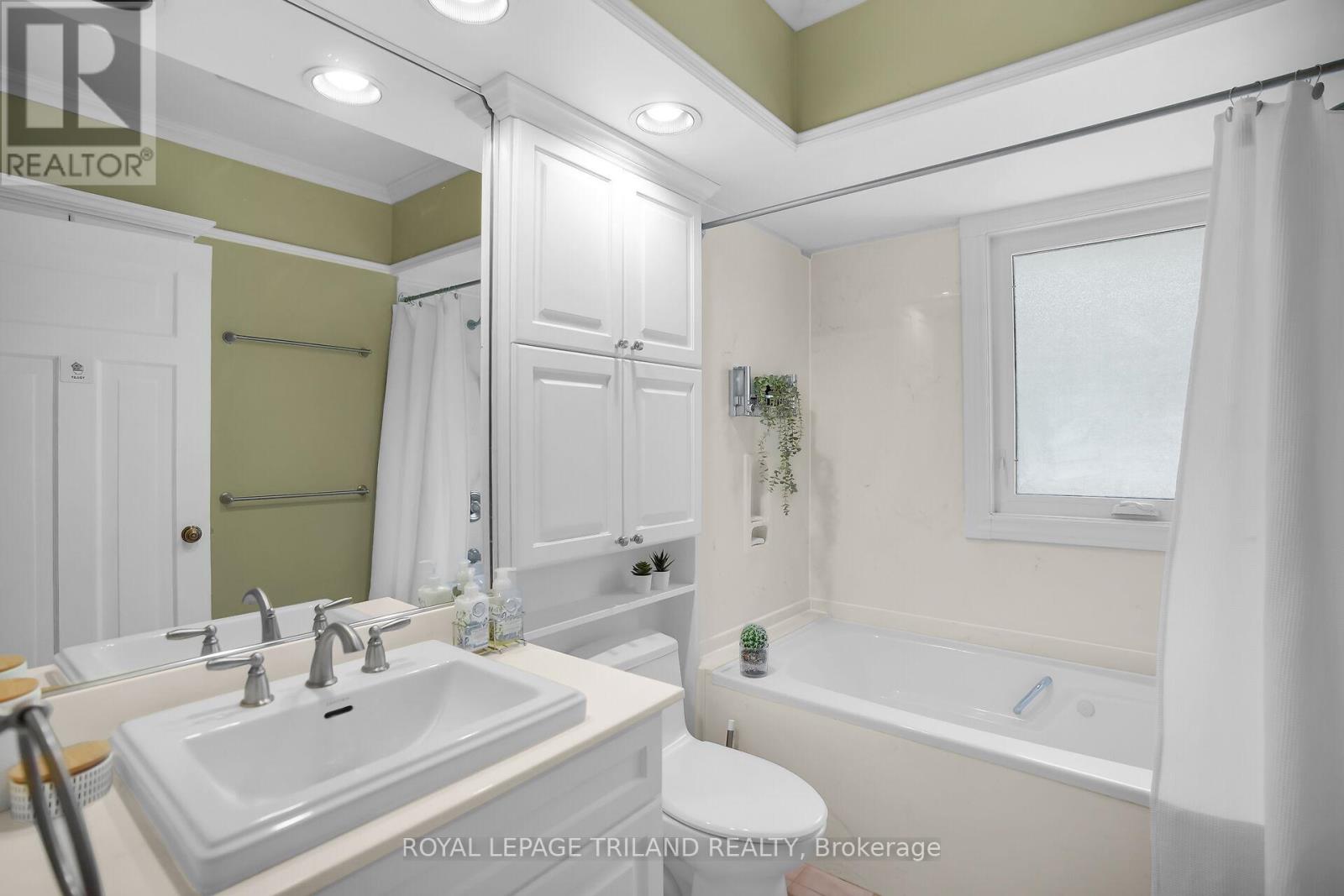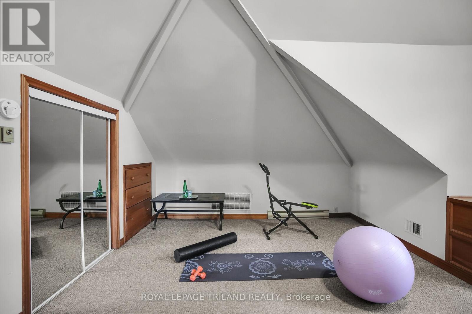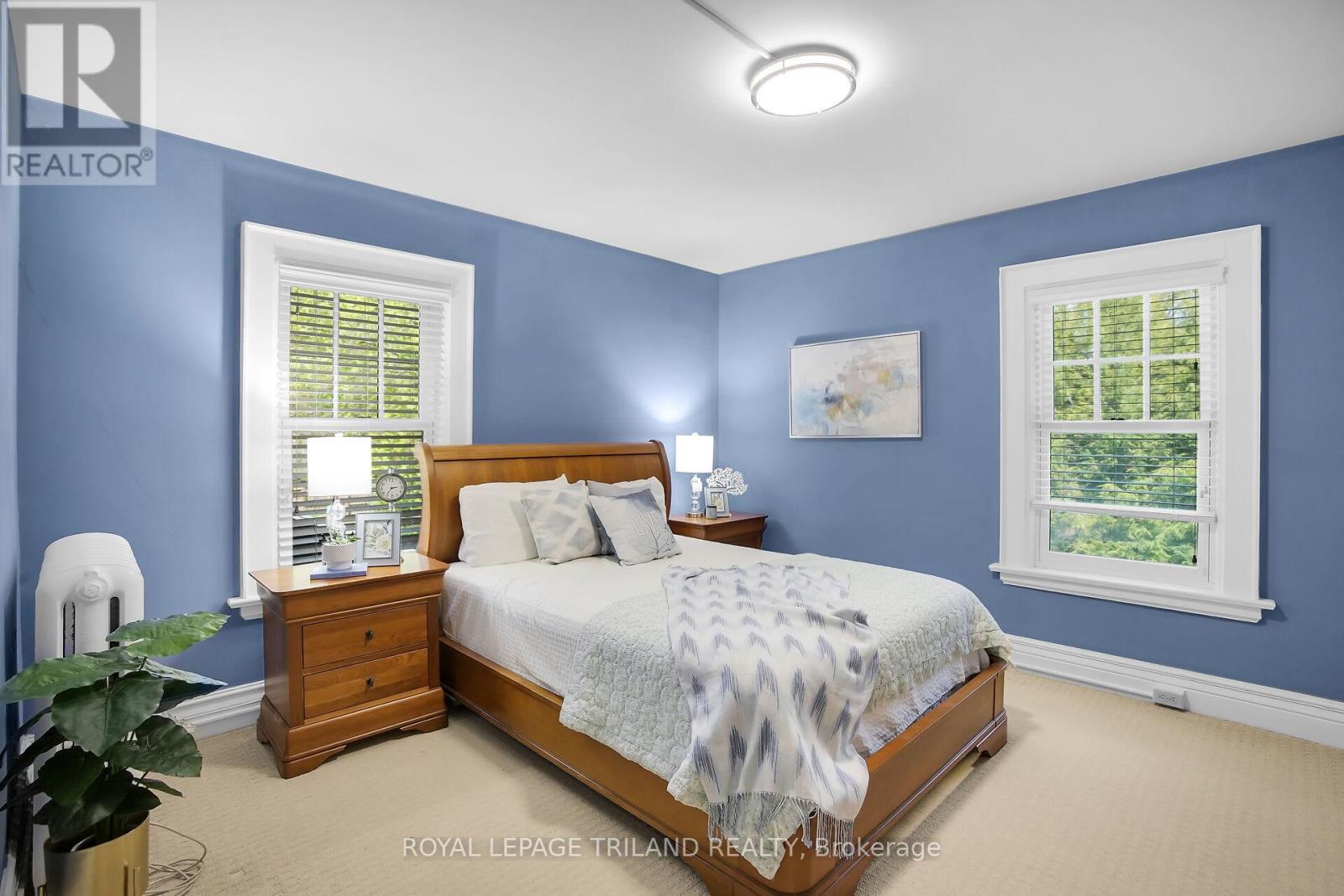 Beautiful Estate sized lot(122ft x 157ft) near Springbank Park, a charming 2.5 storey 4+1 beds, 3 bath home offers timeless charm and exceptional living space in a highly desirable location. Just steps from Thames Valley Golf Course and the pedestrian bridge to Springbank Park, and only a 10-minute drive to downtown London, this property combines serenity with convenience. Inside, you'll find spacious principal rooms with soaring ceilings, abundant natural light from large windows, and rich natural wood trim and doors throughout. The main floor features a cozy family room with a gas fireplace and custom Oak wet bar, perfect for entertaining as well as a convenient laundry room. The kitchen boasts classic Oak cabinetry, a center island with Jenn-Air stove, built-in oven. Upstairs, generous-sized bedrooms provide comfort and privacy, while the third-level loft offers flexible space for a home office, studio, or additional living area. Enjoy the outdoors on the newer covered deck or take a dip in the inviting backyard pool, ideal for relaxing summer days. Windows(2015),New A/C(2022), Pool pump (2025), Basement renovation -1 additional bedroom with full bath(2019), new kitchen faucet(2025), 2nd floor Hallway and stairs (2025) and new dishwasher(2025). This is a rare opportunity to own a well-maintained character home in a premier London location. (id:64974)