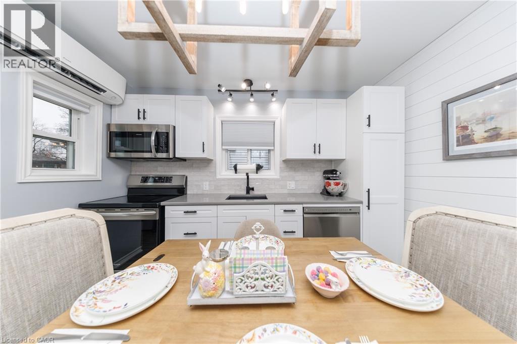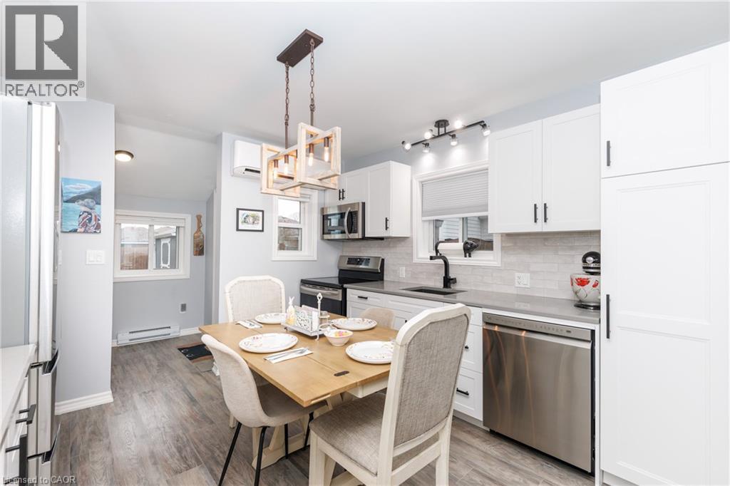 Welcome to charming small-town living in the heart of Dunnville! This beautifully completely renovated 2-bedroom, one-and-a-half-storey home blends modern updates with cozy character, offering a move-in-ready opportunity perfect for first-time buyers, downsizers, or anyone looking to enjoy life in this welcoming community. Step inside to discover a bright and inviting interior where thoughtful renovations shine throughout. The main floor features a stylish, updated kitchen with modern cabinetry, quality finishes, and plenty of workspace, making meal preparation both easy and enjoyable. The open and comfortable living area provides the perfect spot to relax or entertain, while large windows allow natural light to pour in and create a warm, welcoming atmosphere. Two well-appointed bedrooms offer comfortable living space, ideal for a small family, guests, or a home office. The updated bathroom features contemporary fixtures and clean, modern design, completing the home’s fresh and polished feel. A standout feature of this home is the bonus loft space on the upper level. This versatile area can be used as a cozy reading nook, home office, creative studio, or additional sleeping space for visitors. The loft adds flexibility and character, making the home feel both unique and functional. Outside, enjoy a manageable property that’s easy to maintain while still providing space to relax, garden, or entertain. Located close to local shops, schools, local hospital, parks, and the scenic waterfront of the Grand River, this home allows you to experience the best of small-town living while remaining conveniently connected to nearby amenities. If you’ve been searching for a fully updated home with charm, flexibility, and an ideal location, this lovely property in Dunnville is ready to welcome you home. Don’t miss your opportunity to make it yours! (id:64974)