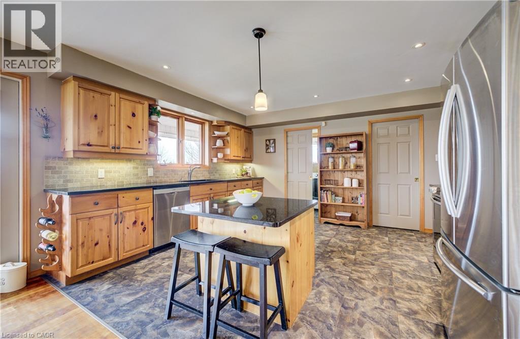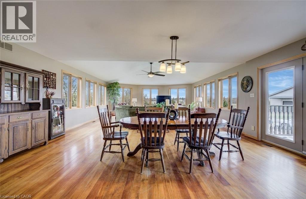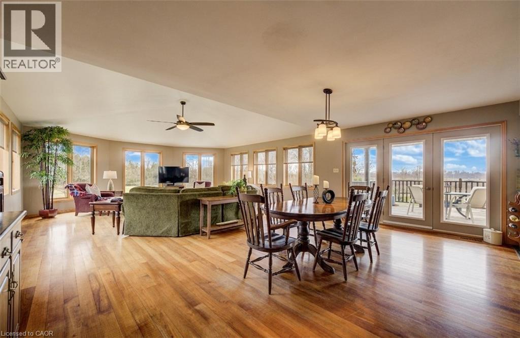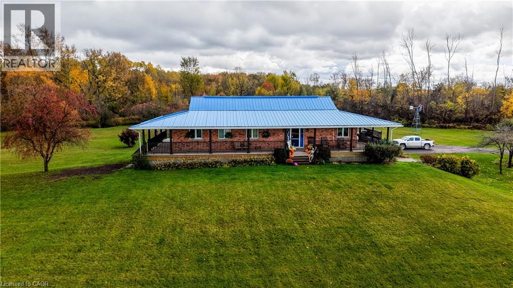 Welcome to your private country retreat—where space, comfort, and convenience come together on an incredible 100-acre property. This bungalow offers the perfect blend of rural tranquility and modern living, just 3 minutes to the Drumbo Oxford Rd. 29 interchange to Highway 401 and only 10 minutes to the Princeton interchange to Highway 403.Step inside to a bright, open-concept main floor featuring three bedrooms and a stunning vaulted ceiling in the family room. Thoughtfully designed for family living, the main floor includes a primary suite with a 4-piece ensuite featuring double sinks and a tiled glass walk-in shower, while the additional two bedrooms are serviced by a main 4-piece bathroom, complete with a tub and separate walk-in shower. Large windows flood the space with natural light while offering picturesque views of the surrounding landscape. The fully finished walk-out basement extends your living space and provides seamless access to the outdoors. Enjoy your morning coffee or evening sunsets from the expansive wrap-around porch that stretches across the front and side of the home—perfect for soaking in the peaceful setting. Designed with the outdoor enthusiast in mind, this property is a true paradise. Explore your own private trails, relax by the pond, and take full advantage of the land year-round. With maple trees on the property, its currently being used to make your own maple syrup and fully embrace the country lifestyle. For hobbyists or those needing additional workspace, the impressive 40 x 80 detached heated shop is a rare find. Fully insulated and equipped with a 2-piece bathroom, hot water, its own septic system, and a separate hydro meter, it offers exceptional versatility for storage, or recreational use. With a durable metal roof and a location that delivers both privacy and quick access to major routes, this property truly offers the best of both worlds—country living with unmatched convenience. (id:64974)