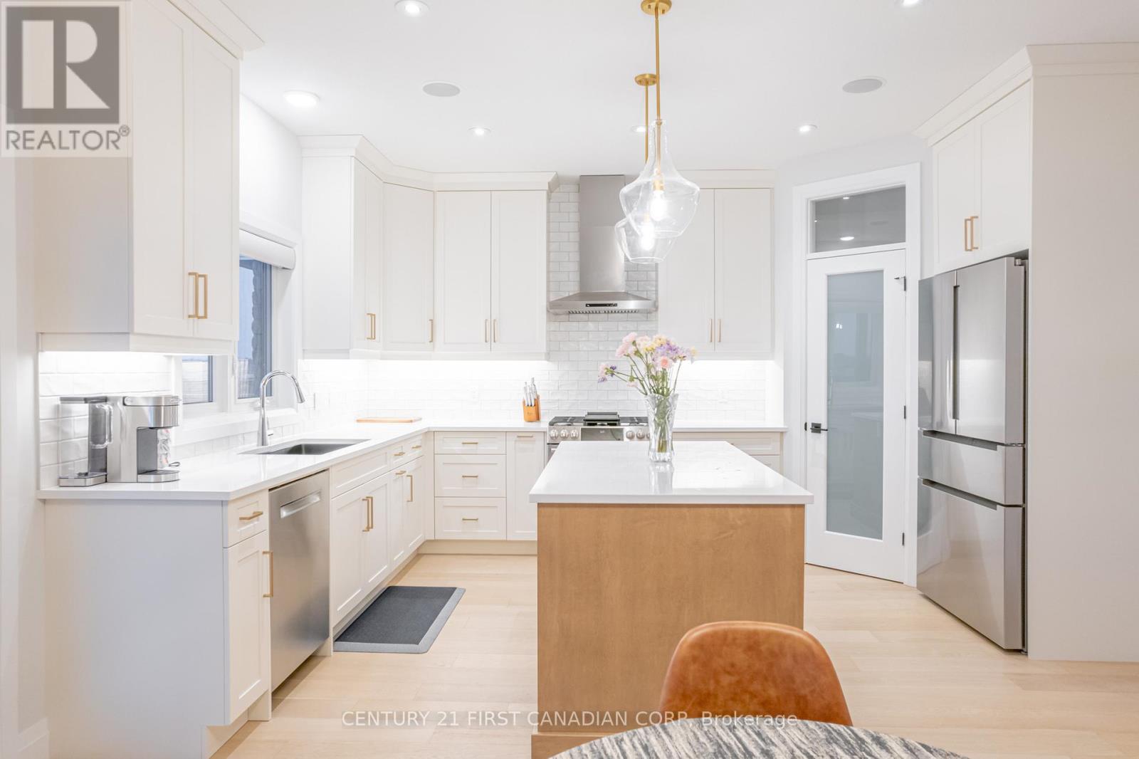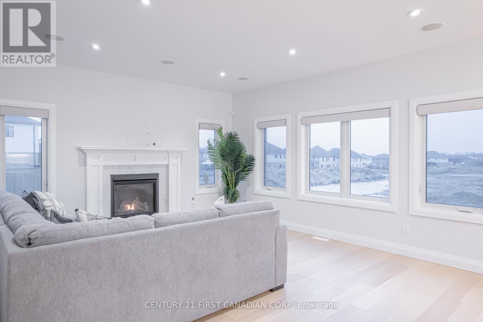 Welcome to 828 Kleinburg Drive, a stunning custom-built home offering luxury finishes, innovative technology, and exceptional versatility in one of London's most sought-after neighbourhoods. This impressive property features over 2,700 sq. ft. above grade plus a fully finished basement second dwelling with a separate entrance, ideal for multi-generational living or strong income potential. The striking stone-and-stucco exterior features black grilles, a widened concrete driveway, and a premium corner lot. Inside, enjoy 9 ceilings, hardwood floors, pot lights, and oversized trim throughout. The open-concept main floor offers a spacious living room with a floor-to-ceiling tiled gas fireplace, a great room with a second gas fireplace, and a chef-inspired kitchen featuring ceiling-height cabinetry, quartz countertops, a large island, a gas range, stainless steel appliances, a pantry, and a bright dinette area. An office and a separate formal dining room complete the space, perfect for entertaining. This true smart home includes Lutron Caseta lighting, Lutron Serena automated blinds, built-in speakers on the main floor and in the second-floor bathrooms with smart audio controls, a Google Nest thermostat, smart smoke detectors, and Ring security system. A Tesla EV charger is installed in the garage, and modern fenced backyard provides added privacy. The second floor features four generous bedrooms, highlighted by a luxurious primary suite with walk-in closet and spa-inspired ensuite with in-floor heating. The second upstairs bathroom also offers in-floor heating. The finished basement includes two bedrooms and 2.5 bathrooms, including a primary bedroom with walk-in closet and ensuite, a second bedroom with its own full bathroom, a powder room, bright living area with a large window, modern kitchen with quartz countertops, waterfall island, matching backsplash, stainless steel appliances, and separate laundry. Separate electrical panels for the main and basement units. (id:64974)