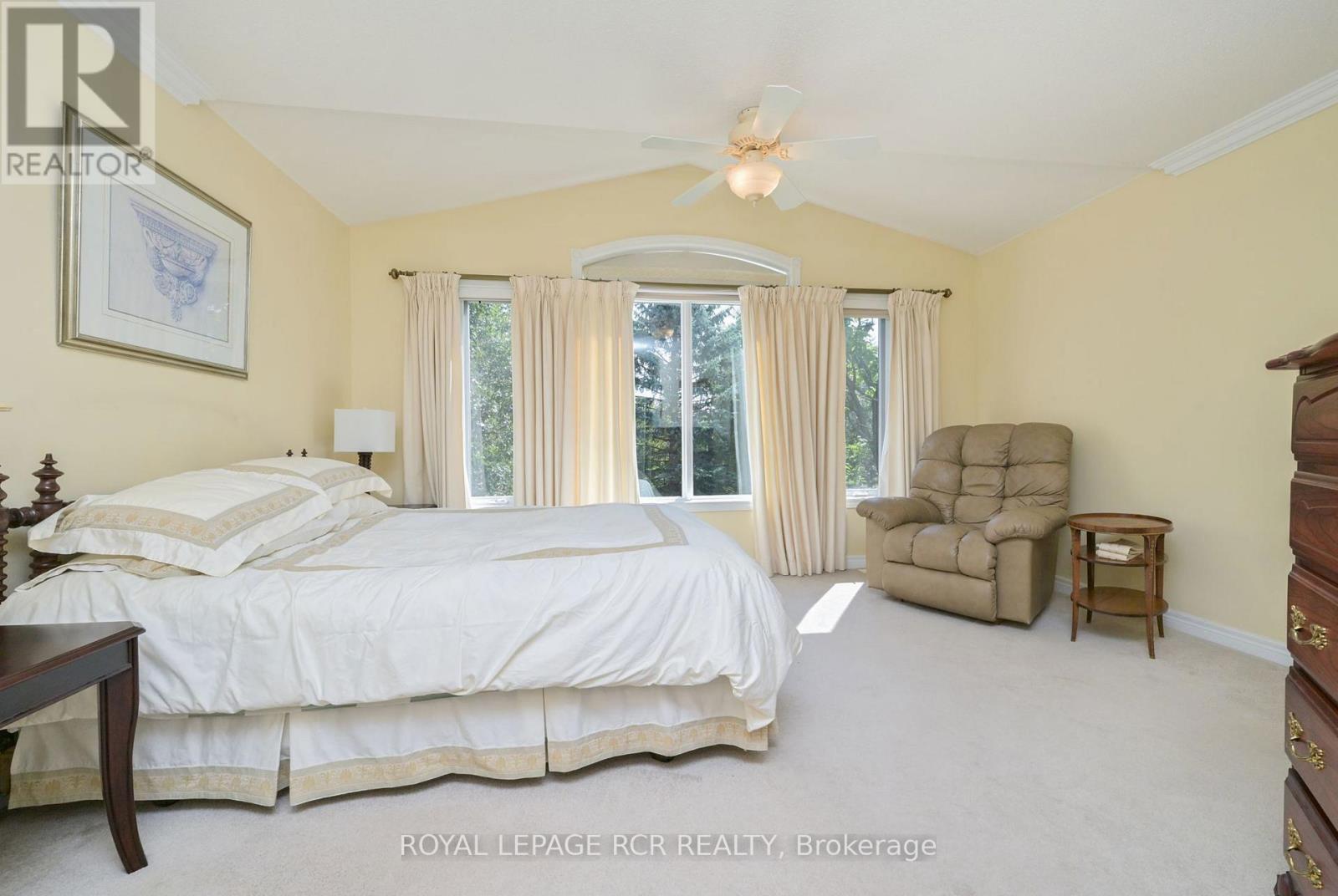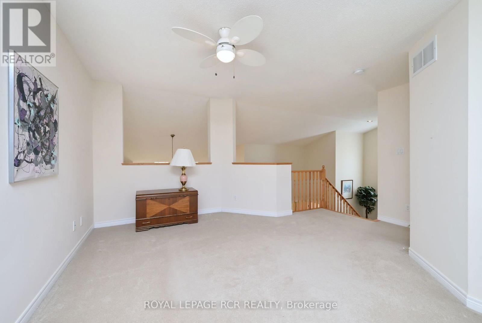 Looking for a Briar Hill bungaloft backing onto the ravine - welcome to 83 Bella Vista Trail! This bright, beautiful home has been well taken care of, and you will feel at home quickly. As you come in the front door, there is a large, eat in kitchen - with lots of cupboards and counter space - that overlooks the front yard. The bright open concept dining /living room areas are finished with hardwood floors, and skylights in the ceiling. The living room has a fireplace and walkout to the south facing deck - overlooking the ravine. The main floor primary is spacious and offers a 4 piece ensuite and large walk in closet. Upstairs, the loft gives extra space for another bedroom (3 piece ensuite), a sunny home office or a place to work on that hobby you have been wanting to start. The professionally finished lower level features a spacious family room and is a wonderful space to relax quietly in, watch TV or entertain family and friends. There is a walk out to the patio area as well. Guests will certainly be comfortable in the large guest room! This level also offers a 3 piece bathroom, another office/hobby area and lots of storage space! This home has the roof replaced in 2024 and all new eavestroughs in 2025. And then there is the community - enjoy access to 36 holes of golf, 2 scenic nature trails, and a 16,000 sq. ft. Community Center filled with tons of activities and events. Welcome to Briar Hill - where it's not just a home it's a lifestyle. (id:64974)