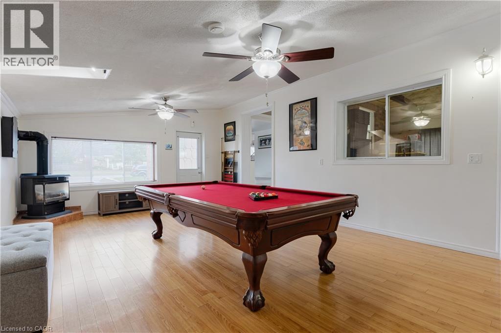 A STORY OF HOME: 83 DUNSDON STREET. 83 Dunsdon Street, a charming 1.5-storey nestled in the highly desirable North end of Brantford, where over 2,400sqft of versatile living space awaits your next chapter. From the moment you arrive, the property’s unique features stand out, including 2 private driveways & a drive-through detached garage that offers the perfect workshop or storage solution for a hobbyist. Inside, the main floor unfolds with a sense of connection and ease, featuring a spacious kitchen with ample counter space that flows naturally into a large dining area, ideal for hosting holiday meals or quiet morning coffees. You are spoiled for choice when it comes to relaxation, with both a formal living room and a cozy family room centered around a natural gas fireplace, while a bright sunroom provides a peaceful vantage point to admire the backyard. The layout is thoughtfully designed for flexibility, offering 2 main-floor bedrooms (one currently serving as a convenient laundry suite) and a full 3pc bath, ensuring comfort for multi-generational living. Venture to the upper level to discover a true primary retreat, a private & serene escape tucked away from the hustle and bustle of the rest of the home features a 3pc ensuite. The story continues in the finished lower level, which expands your living options with a 3rd full bathroom, a generous recreation room perfect for a home theater or gym, & the home’s original laundry area. Stepping outside, the fully fenced backyard transforms into your own private oasis, complete with 2 secure gates & a refreshing above-ground pool paired with an expansive deck, perfect for cooling off on those golden summer afternoons. Perfectly situated near schools, parks, major shopping & transportation.*roof 2017, furnace 2019, asphalt driveway on the right side w/exposed aggregate curbs, as well as updated fascia, soffits w/lights, & eaves 2025. 4 new windows on the left side, while the remaining windows were professionally capped. (id:64974)