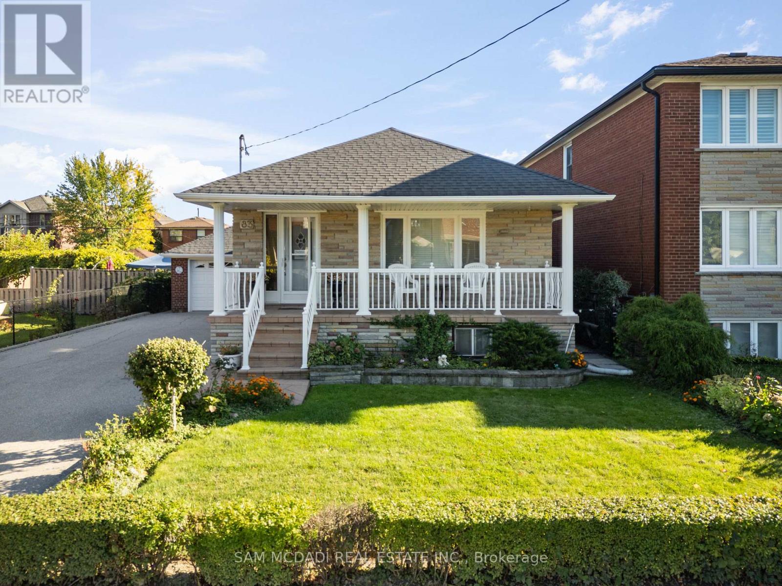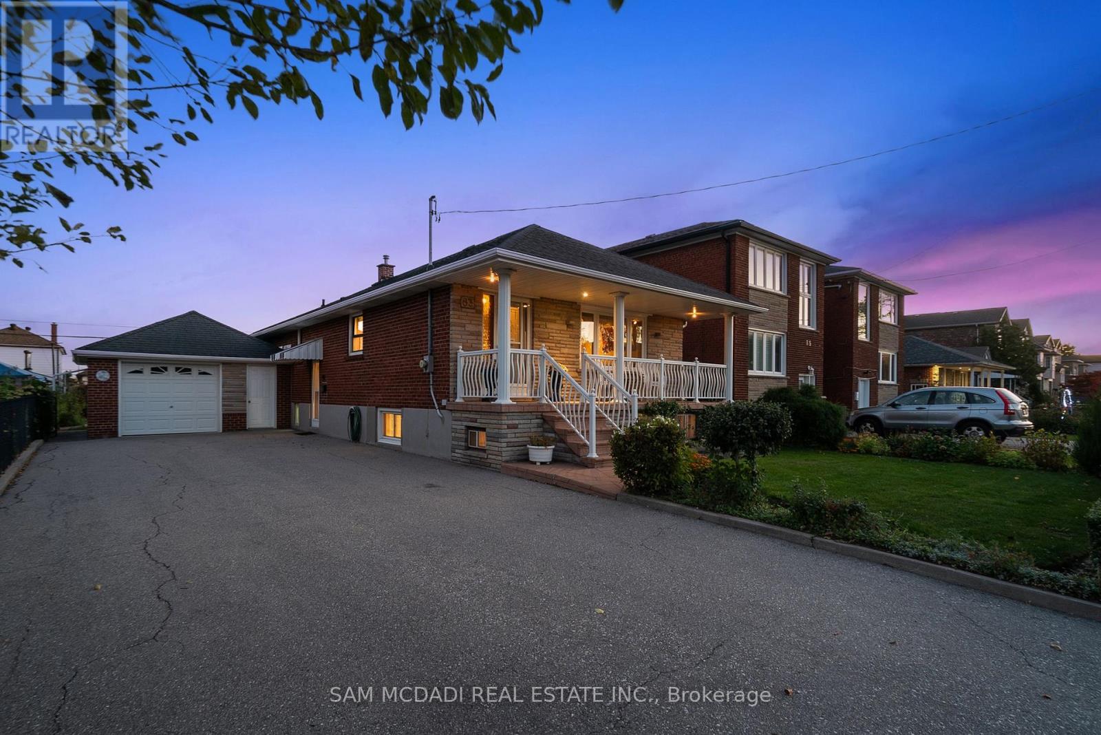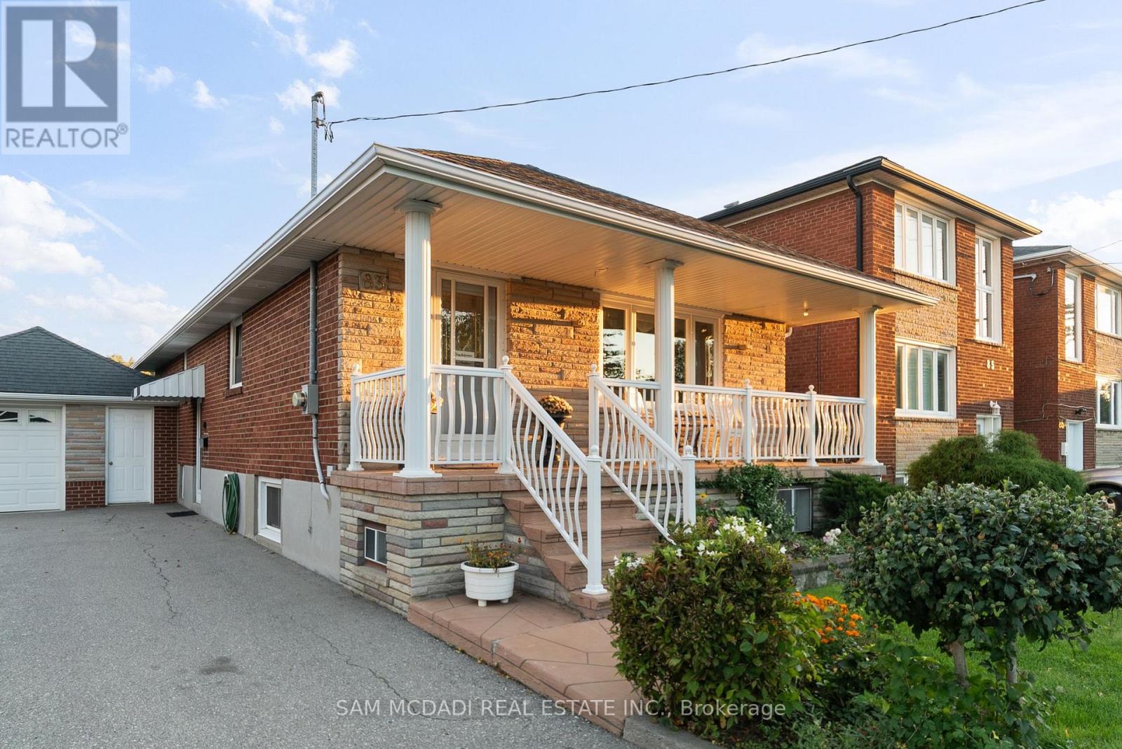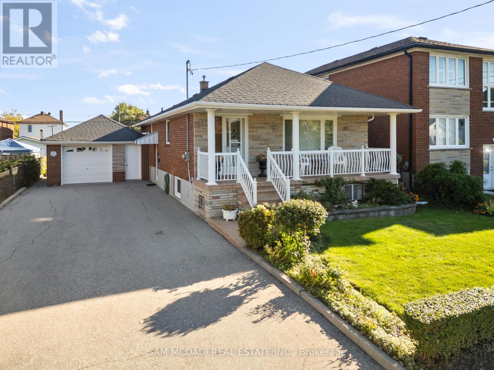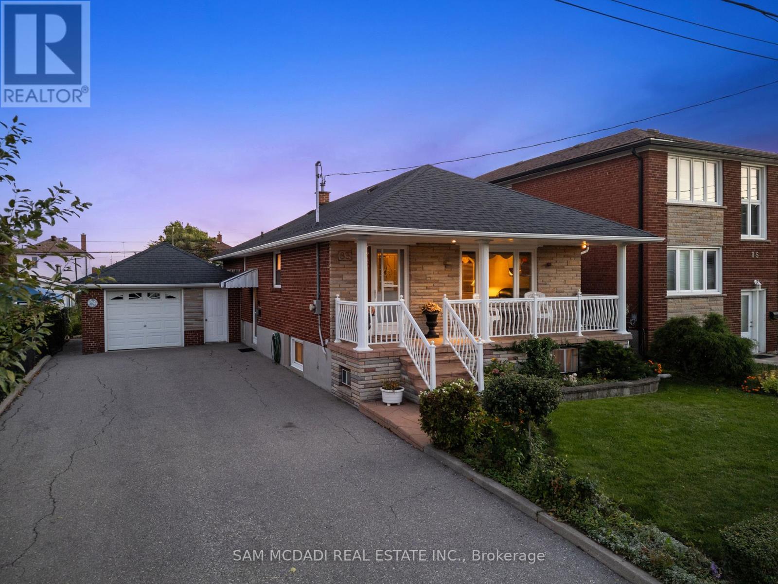 Welcome to 83 Evans Avenue, Toronto - an elegant raised bungalow on a rare 49' x 125' lot that blends classic curb appeal with refined old-world charm; the main floor offers three well-proportioned bedrooms including a bright primary bedroom, a welcoming living and dining area with large windows and a functional kitchen suited to everyday family life. Descend to a fully finished basement that reads like a thoughtfully curated European retreat, where graceful arches, textured stonework and a dramatic stone feature wall frame with a built-in bar, and a gas fireplace anchors a warm, intimate gathering space perfect for entertaining or quiet evenings. Finishes and detailing throughout the lower level evoke an old-world aesthetic married to modern comfort, offering flexible living space for a media room, home office or guest suite while providing abundant storage and laundry. A dedicated cold storage room adds practical utility for seasonal goods and pantry needs. Outside, the deep, private lot with mature trees includes a garden shed, a charming gazebo, driveway parking and an attached garage, creating generous outdoor and parking options with room to expand. A welcoming front porch enhances the home's curb appeal and provides a perfect spot to enjoy the neighborhood setting. Nestled close to schools, parks, transit and shopping, this property delivers comfortable single-level living with exceptional lower-level accommodations and timeless character - book your private showing today. (id:64974)