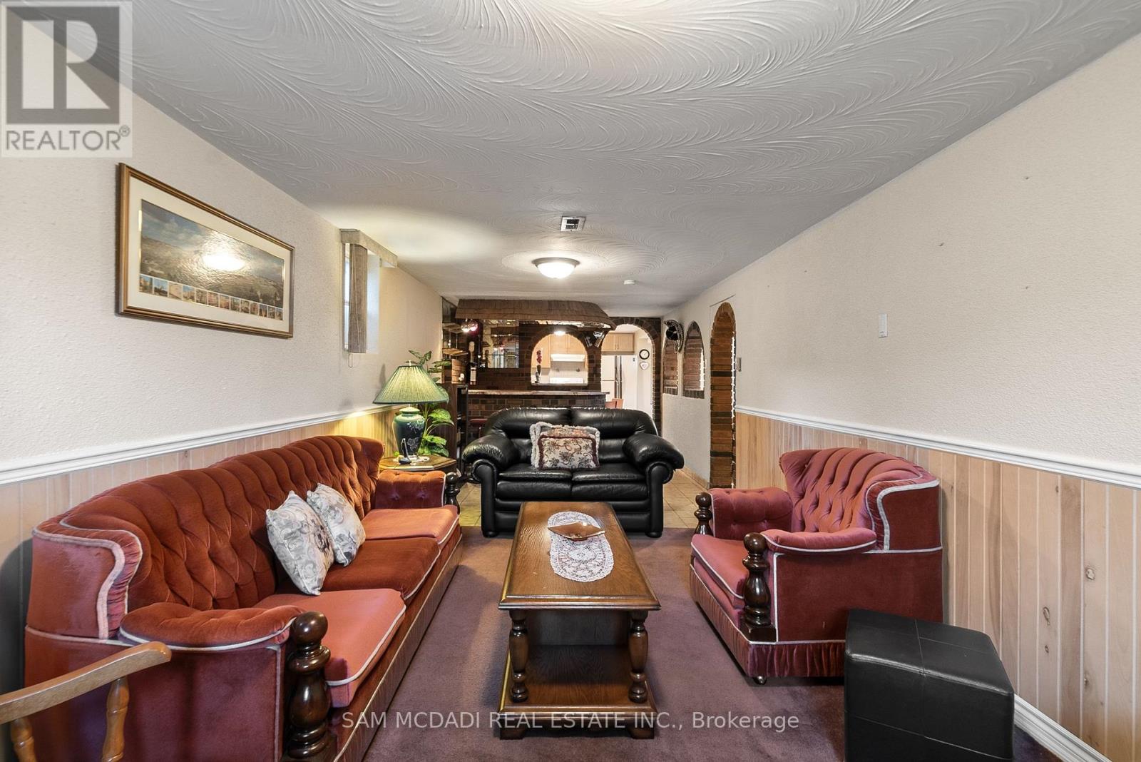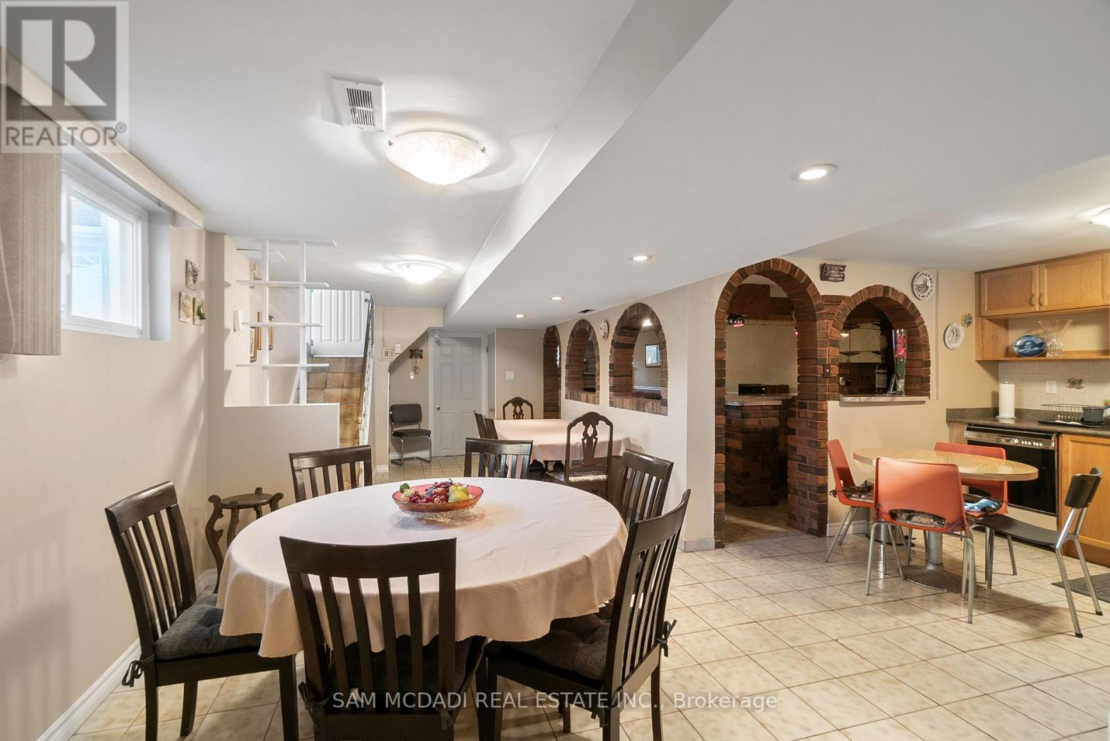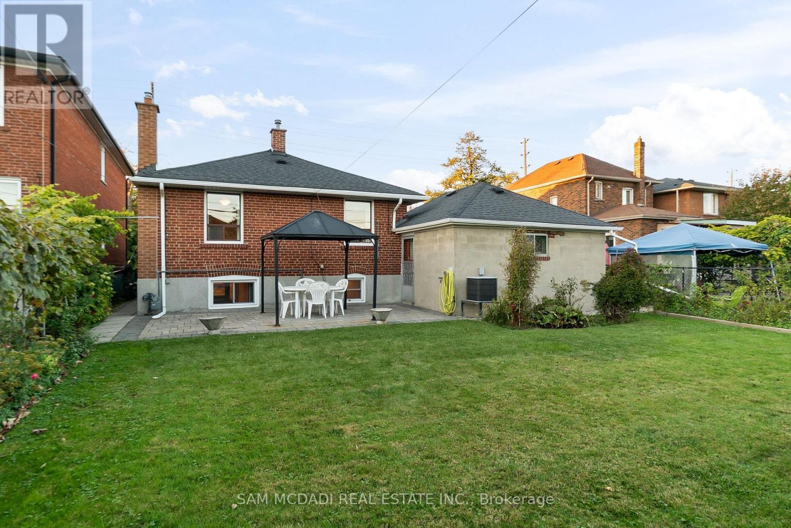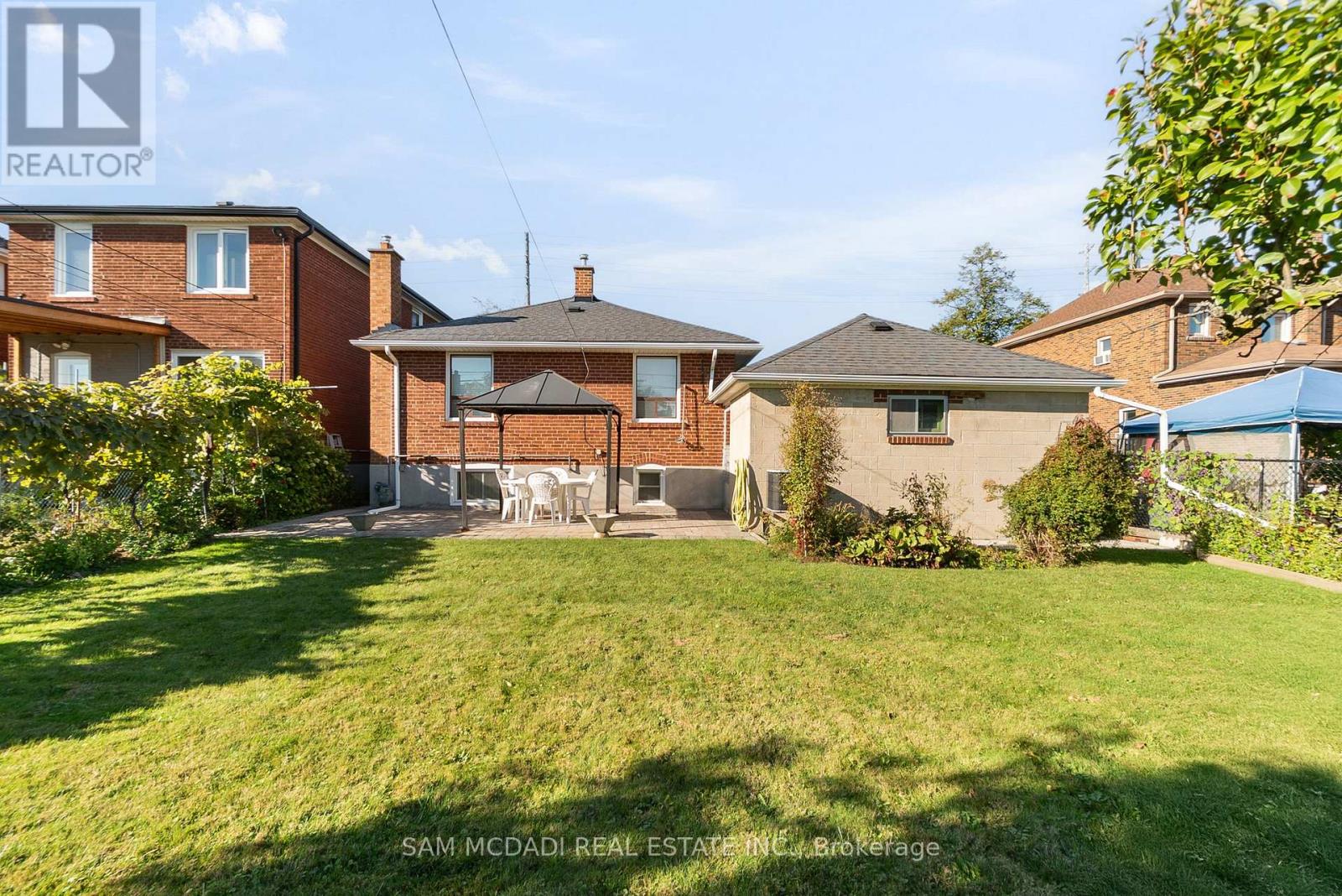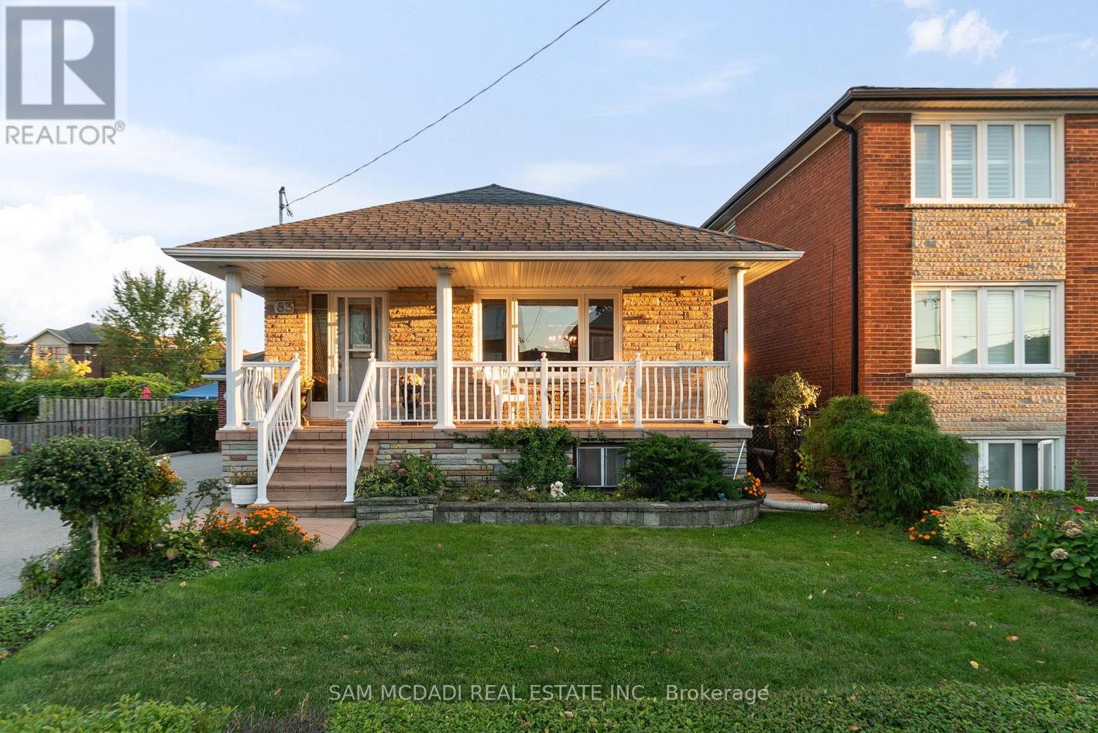 Welcome to 83 Evans Avenue, Toronto - an elegant raised bungalow on a rare 49' x 125' lot that blends classic curb appeal with refined old-world charm; the main floor offers three well-proportioned bedrooms including a bright primary bedroom, a welcoming living and dining area with large windows and a functional kitchen suited to everyday family life. Descend to a fully finished basement that reads like a thoughtfully curated European retreat, where graceful arches, textured stonework and a dramatic stone feature wall frame with a built-in bar, and a gas fireplace anchors a warm, intimate gathering space perfect for entertaining or quiet evenings. Finishes and detailing throughout the lower level evoke an old-world aesthetic married to modern comfort, offering flexible living space for a media room, home office or guest suite while providing abundant storage and laundry. A dedicated cold storage room adds practical utility for seasonal goods and pantry needs. Outside, the deep, private lot with mature trees includes a garden shed, a charming gazebo, driveway parking and an attached garage, creating generous outdoor and parking options with room to expand. A welcoming front porch enhances the home's curb appeal and provides a perfect spot to enjoy the neighborhood setting. Nestled close to schools, parks, transit and shopping, this property delivers comfortable single-level living with exceptional lower-level accommodations and timeless character - book your private showing today. (id:64974)