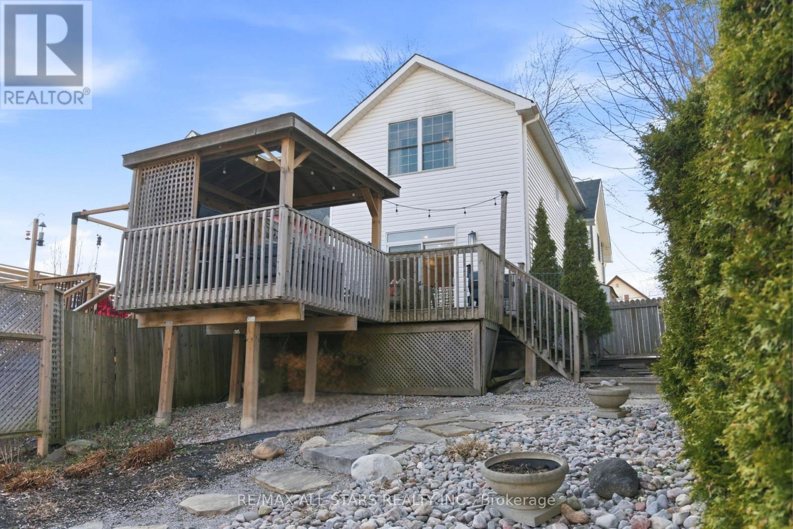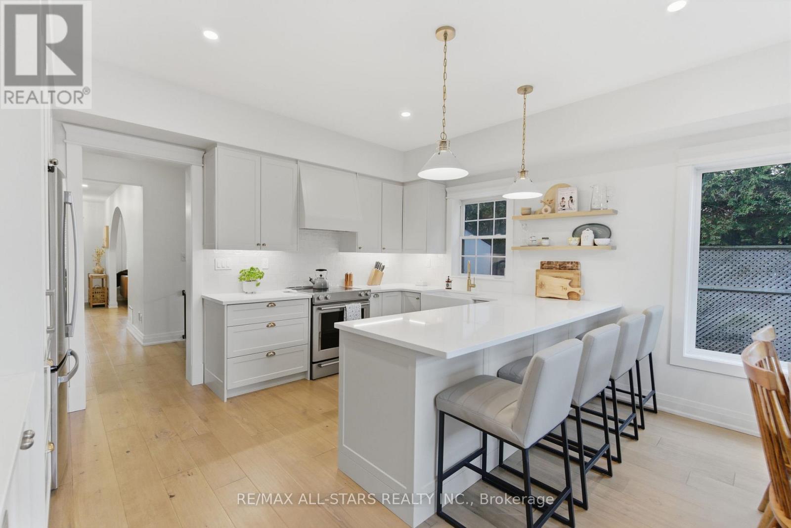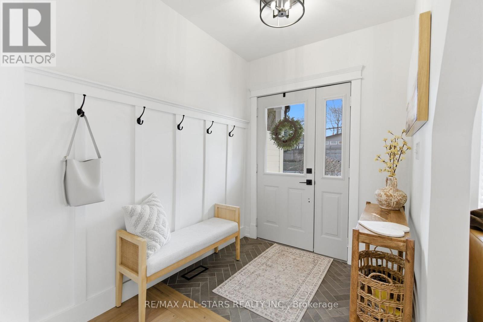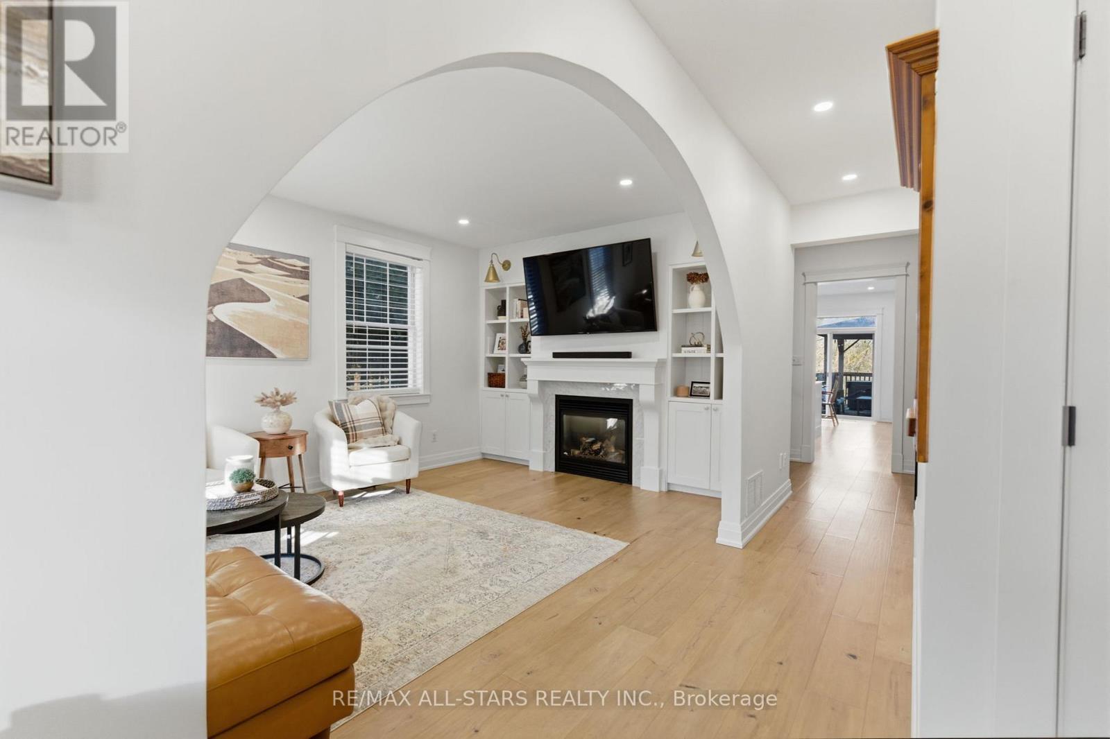 Welcome to a beautifully curated home where thoughtful design, timeless finishes, and modern comfort come together seamlessly. From the moment you arrive, the home makes a lasting impression with refined exterior updates, warm architectural details, and inviting outdoor spaces designed for everyday living. Inside, the main level showcases stunning wide-plank engineered oak flooring, designer lighting, and elegant millwork throughout. The living room serves as a true focal point, featuring custom-built shelving and a sophisticated fireplace feature wall, complemented by a graceful architectural archway that enhances the home's flow and character. The fully customized chef's kitchen is both functional and striking, offering lacquer-finish cabinetry, quartz countertops, white oak shelving, imported Spanish tile backsplash, and brass hardware accents all thoughtfully paired with upgraded appliances. Upstairs, the primary suite offers a serene retreat highlighted by custom wainscoting and a beautifully reimagined spa-inspired ensuite. Designed with relaxation in mind, the space features a walk-in rainfall shower with glass enclosure, imported ceramic tile, hexagon porcelain flooring, and a natural oak vanity with refined finishes. Additional updates throughout the home include new trim and doors, a refreshed staircase, and carefully selected design elements that create a cohesive and elevated aesthetic. The finished lower level expands the living space with modern lighting and flexible areas ideal for recreation or a work office. Outdoors, enjoy a deep and spacious backyard offering plenty of room for families to gather, entertain, and enjoy time together, complemented by recent enhancements including a newly built shed on an interlock pad. With extensive upgrades completed in recent years and every detail thoughtfully considered, this exceptional home offers turnkey living with refined style and comfort. The perfect luxury starter home in the heart of Uxbridge! (id:64974)