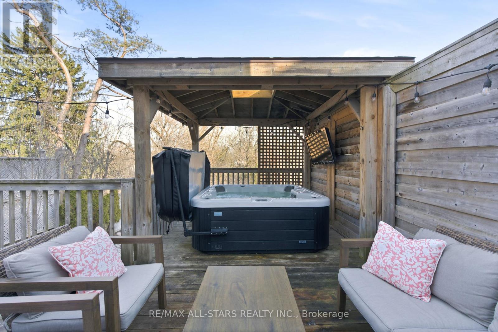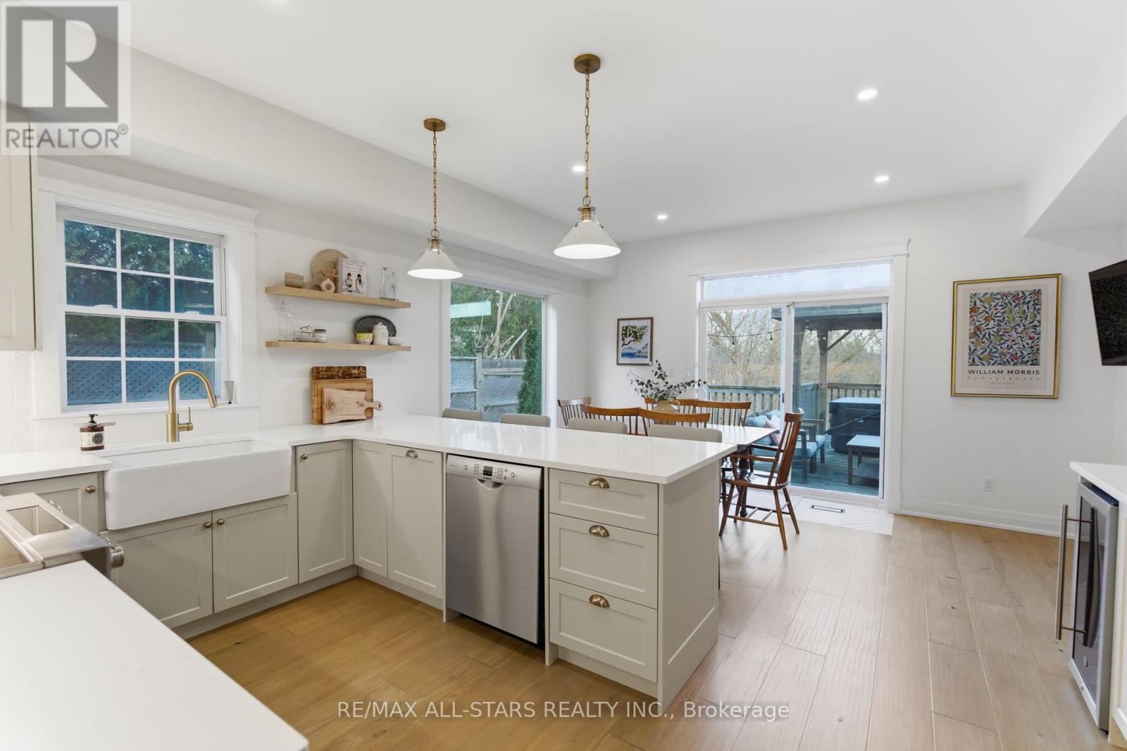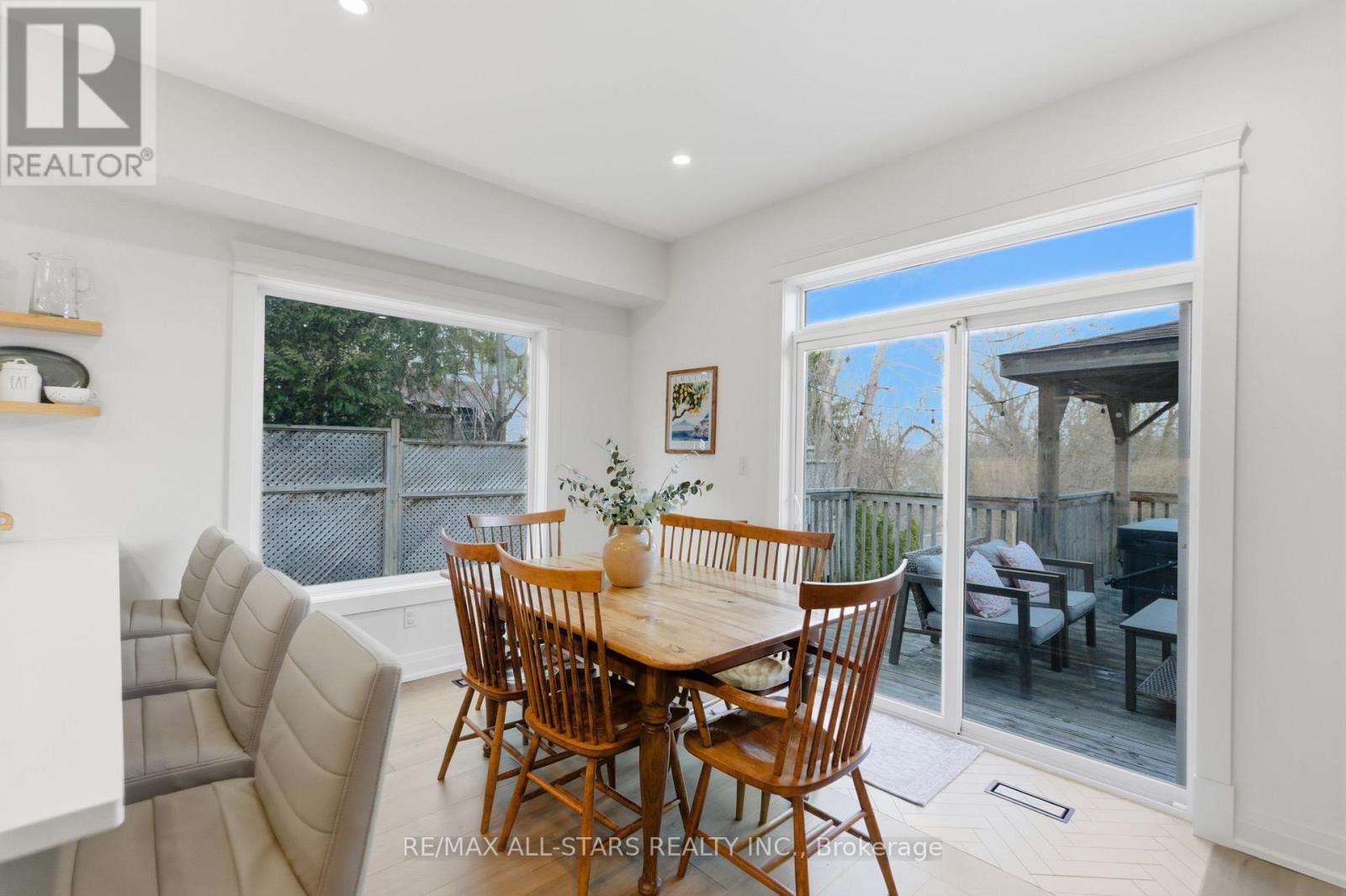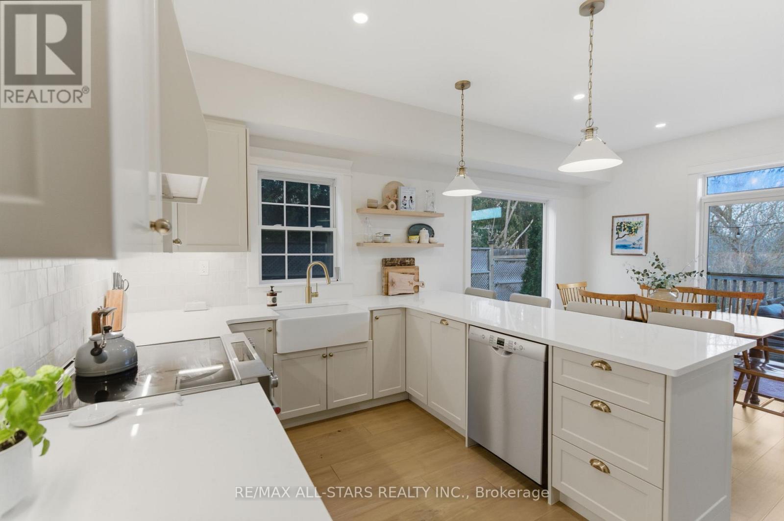 Welcome to a beautifully curated home where thoughtful design, timeless finishes, and modern comfort come together seamlessly. From the moment you arrive, the home makes a lasting impression with refined exterior updates, warm architectural details, and inviting outdoor spaces designed for everyday living. Inside, the main level showcases stunning wide-plank engineered oak flooring, designer lighting, and elegant millwork throughout. The living room serves as a true focal point, featuring custom-built shelving and a sophisticated fireplace feature wall, complemented by a graceful architectural archway that enhances the home's flow and character. The fully customized chef's kitchen is both functional and striking, offering lacquer-finish cabinetry, quartz countertops, white oak shelving, imported Spanish tile backsplash, and brass hardware accents all thoughtfully paired with upgraded appliances. Upstairs, the primary suite offers a serene retreat highlighted by custom wainscoting and a beautifully reimagined spa-inspired ensuite. Designed with relaxation in mind, the space features a walk-in rainfall shower with glass enclosure, imported ceramic tile, hexagon porcelain flooring, and a natural oak vanity with refined finishes. Additional updates throughout the home include new trim and doors, a refreshed staircase, and carefully selected design elements that create a cohesive and elevated aesthetic. The finished lower level expands the living space with modern lighting and flexible areas ideal for recreation or a work office. Outdoors, enjoy a deep and spacious backyard offering plenty of room for families to gather, entertain, and enjoy time together, complemented by recent enhancements including a newly built shed on an interlock pad. With extensive upgrades completed in recent years and every detail thoughtfully considered, this exceptional home offers turnkey living with refined style and comfort. The perfect luxury starter home in the heart of Uxbridge! (id:64974)