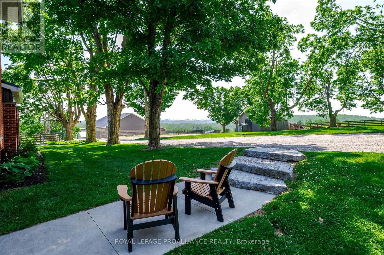 **Welcome to the Original Bland Farm** - Perched on a hilltop, this 95+ acre farm boasts privacy, serenity, and extraordinary miles-long views in Cavan Hills. Completely refurbished, having seen over $500,000 in investments over the past decade, including a complete remodel of the 2,150 sq ft century brick home and the addition of four outbuildings, including an oversized detached 2.5-car garage with office and loft. Features include a mature maple bush, trails, and 'sugar shack,' plus trout-filled Jackson Creek. Fifty acres of fertile Otonabee Loam yielded $80,000 in 2024 from wheat alone. House, barns, and gardens are supported by a high-capacity well providing ample water. The farm features four modern outbuildings, each with dedicated Generlink electrical panels. The insulated detached garage (51'x29') and a 56'x46' low-maintenance barn are ready for your vision. A 30'x16' modern hen house and wood storage. The outdoor wood-fired boiler system completes the offering. This unique Peterborough County agricultural property is perfect for those looking to create their vision-be it vineyards, greenhouses, or simply embrace a recreational retreat lifestyle. Additional land available for lease. A million miles away... is just down this quiet country year-round road. Peterborough Regional Hospital, 20 minutes. Hwy 407, 20 Minutes. GTA, 60 minutes. Serene Wutai Shan Buddhist Garden minutes away and mail/school bus at the end of your lane! (id:64974)